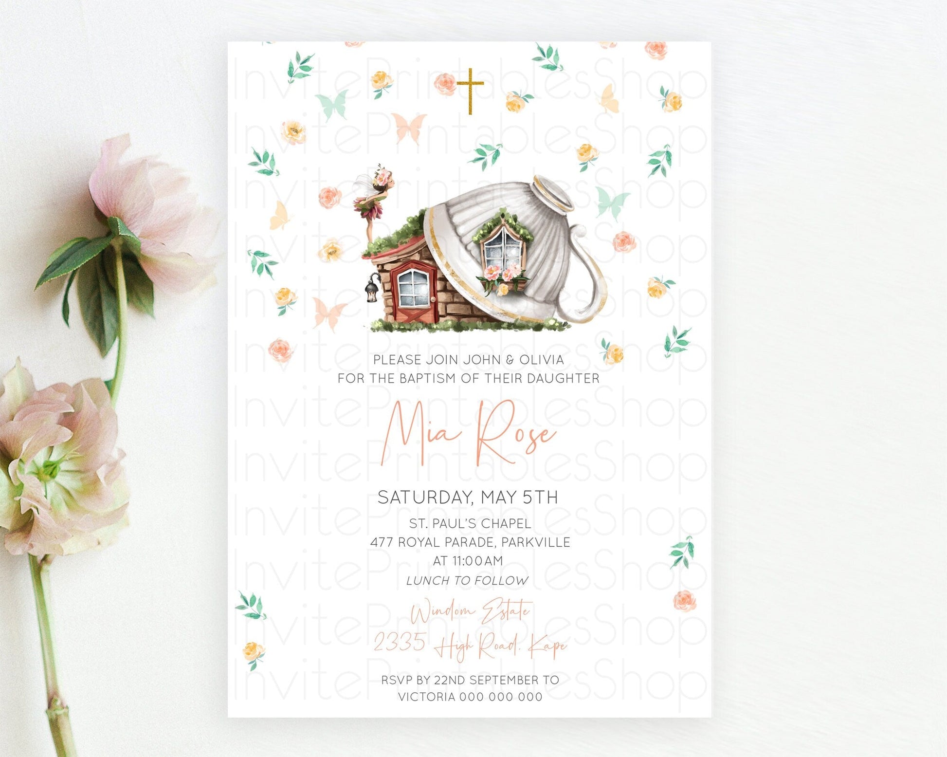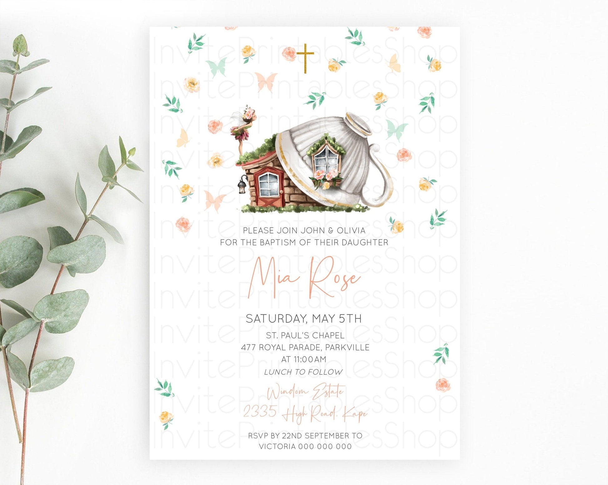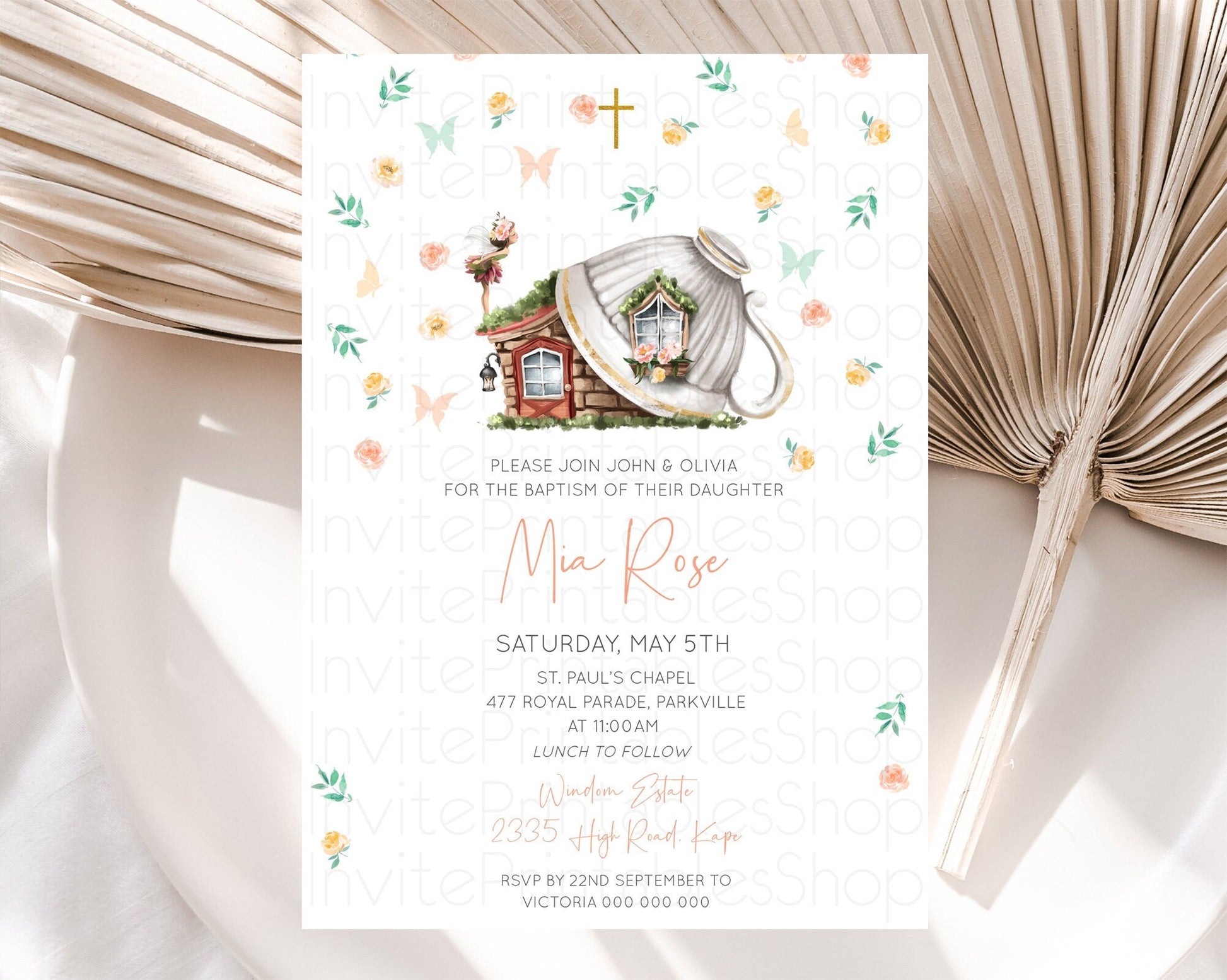 Fairy Baptism Invitation Fairy Baptism 1st Birthday Invitation Enchanted Secret Garden Christening Invite Pastel Floral Butterfly D10383