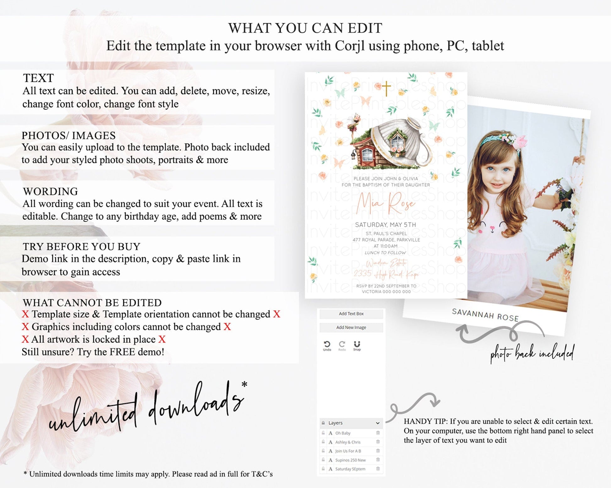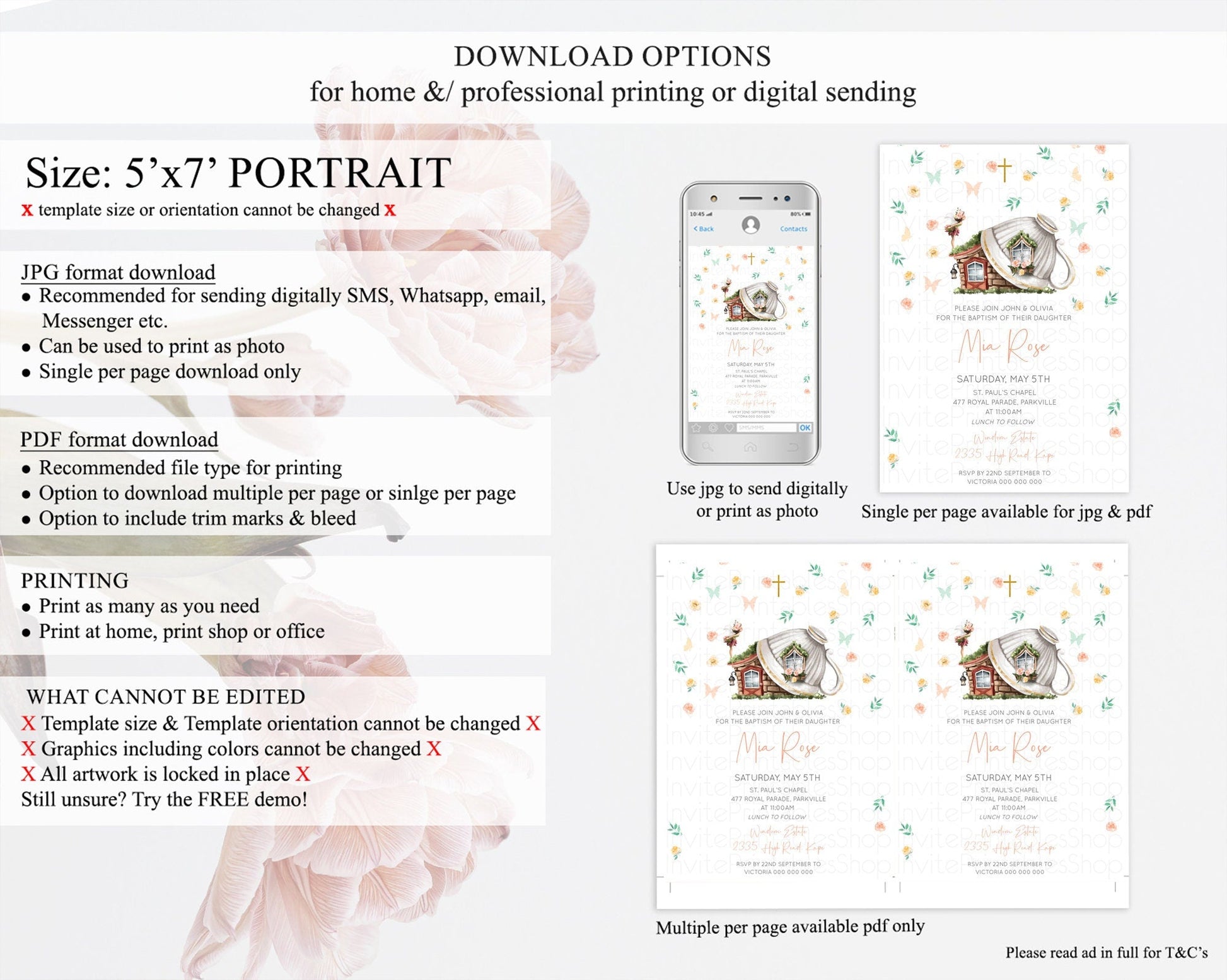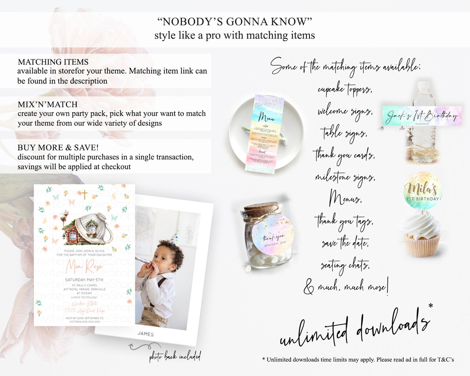 Fairy Baptism Invitation Fairy Baptism 1st Birthday Invitation Enchanted Secret Garden Christening Invite Pastel Floral Butterfly D10383