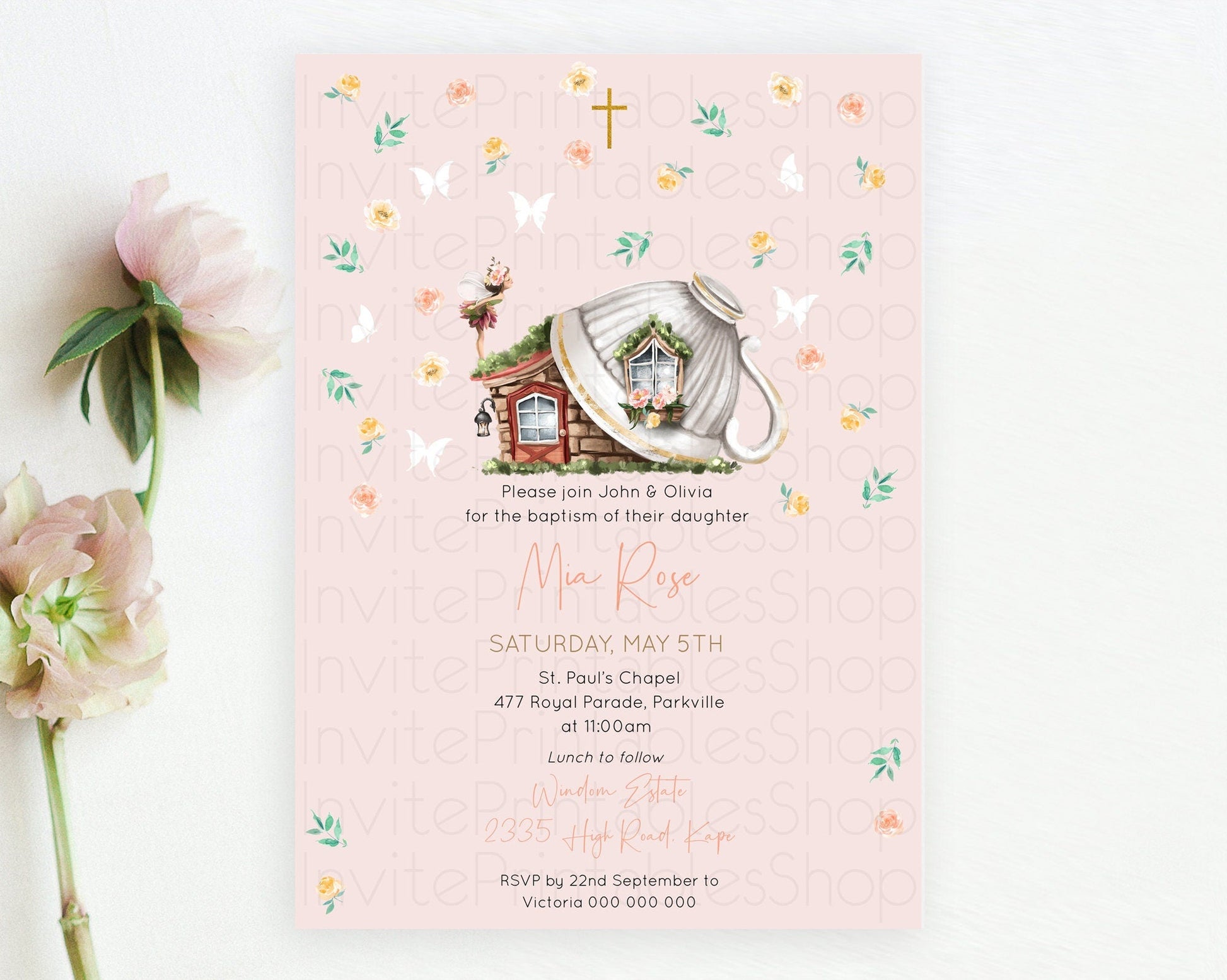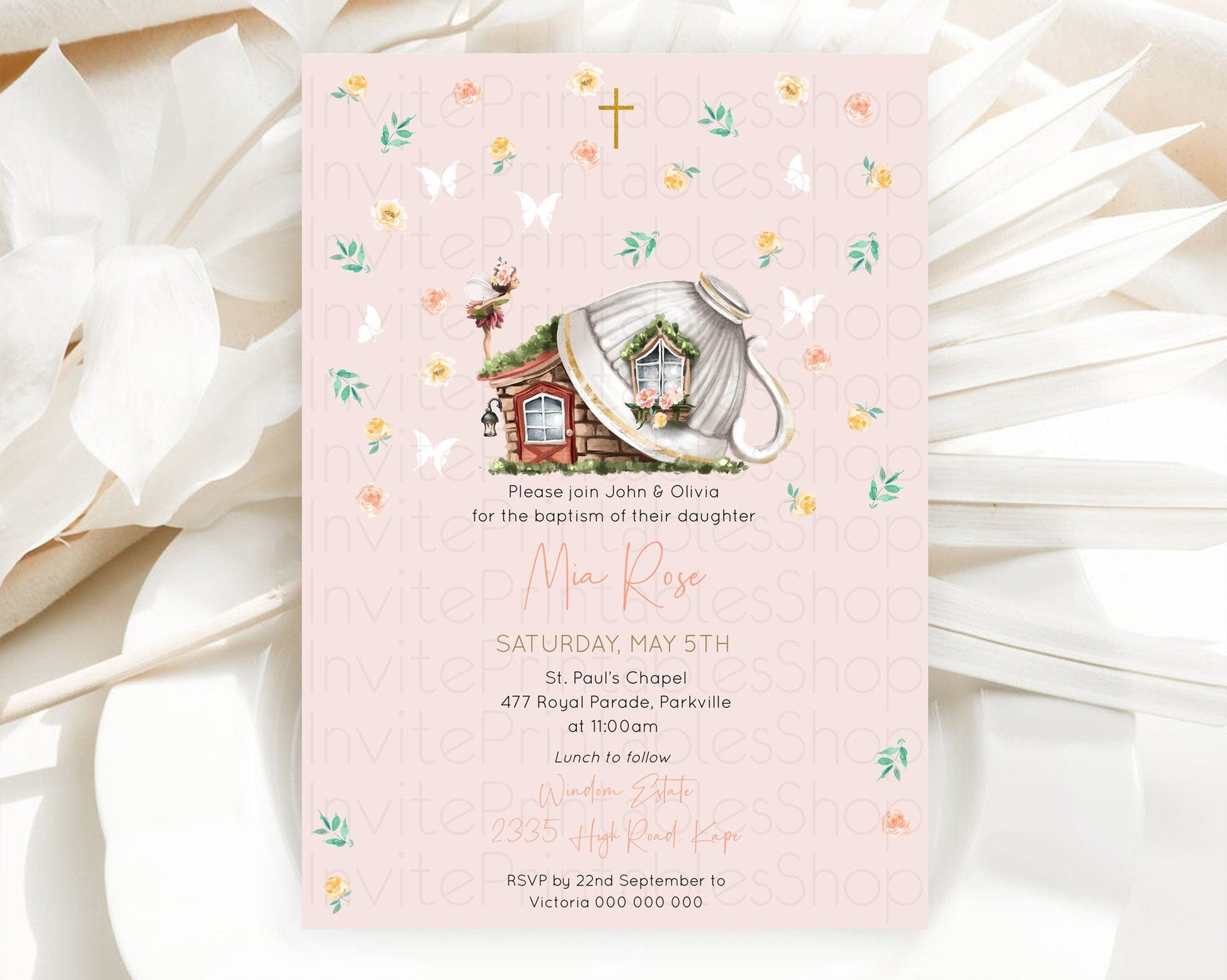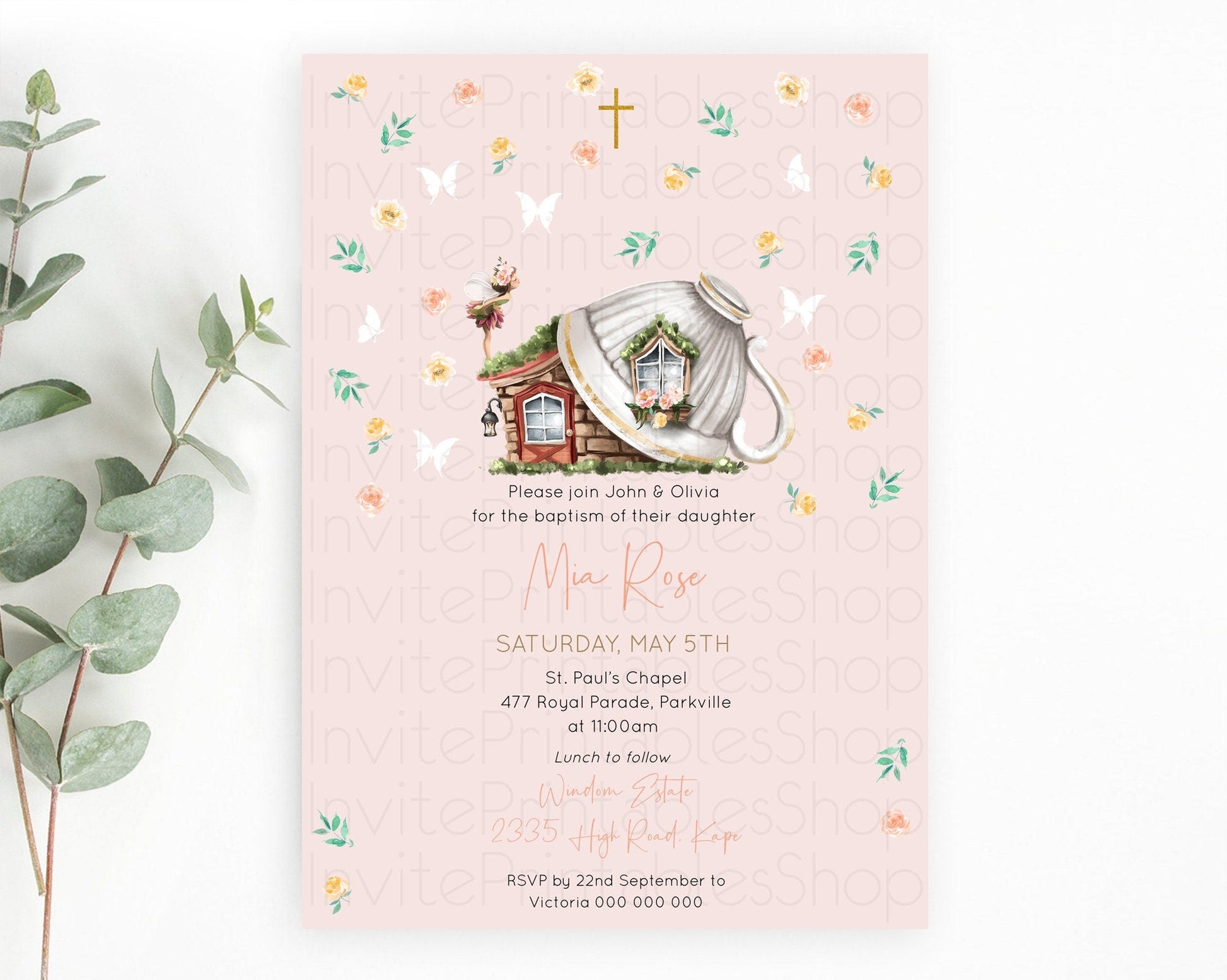Fairy Baptism Invitation Fairy Baptism 1st Birthday Invitation Enchanted Secret Garden Christening Invite Pastel Floral Butterfly D10384