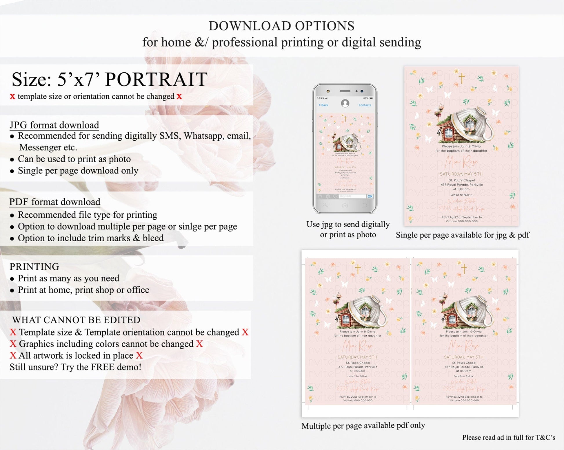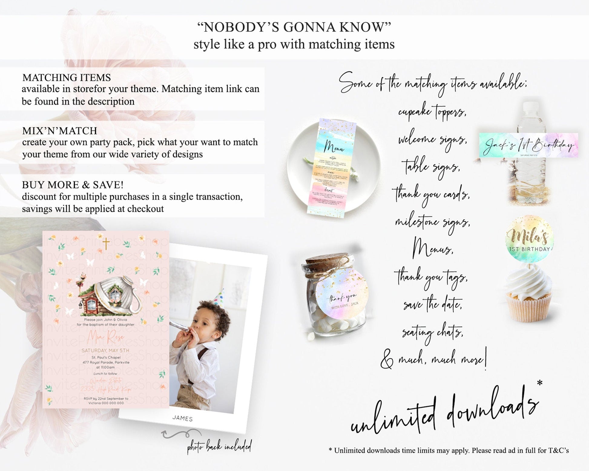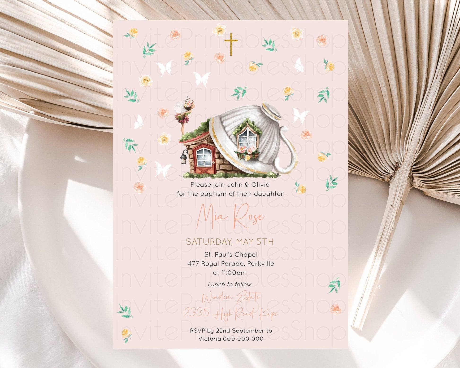 Fairy Baptism Invitation Fairy Baptism 1st Birthday Invitation Enchanted Secret Garden Christening Invite Pastel Floral Butterfly D10384