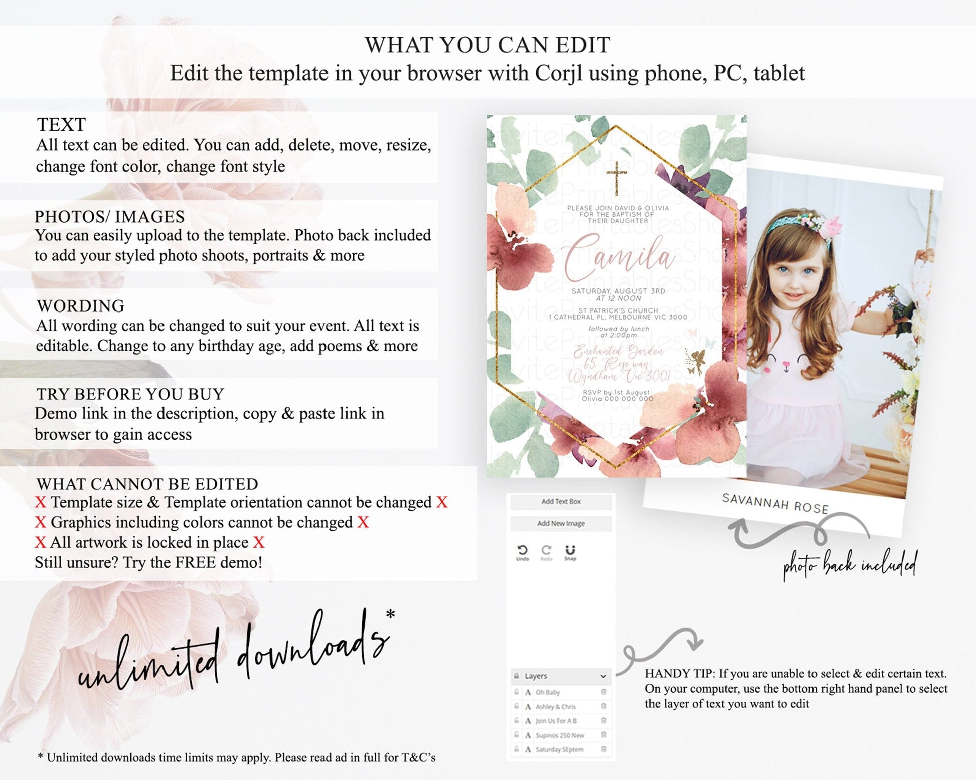 • Template size & orientation cannot be changed. Please use the demo link to confirm this product suits your needs.