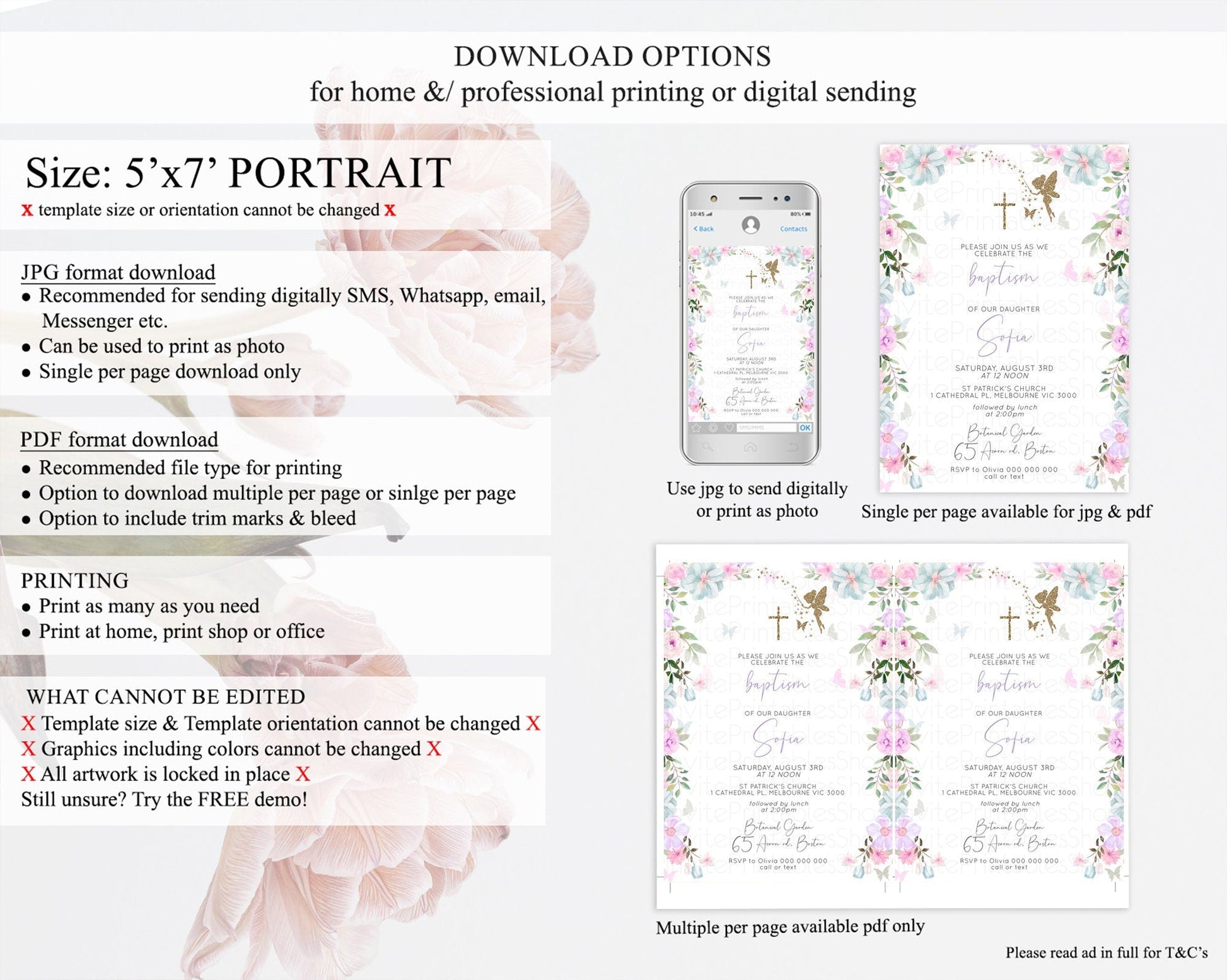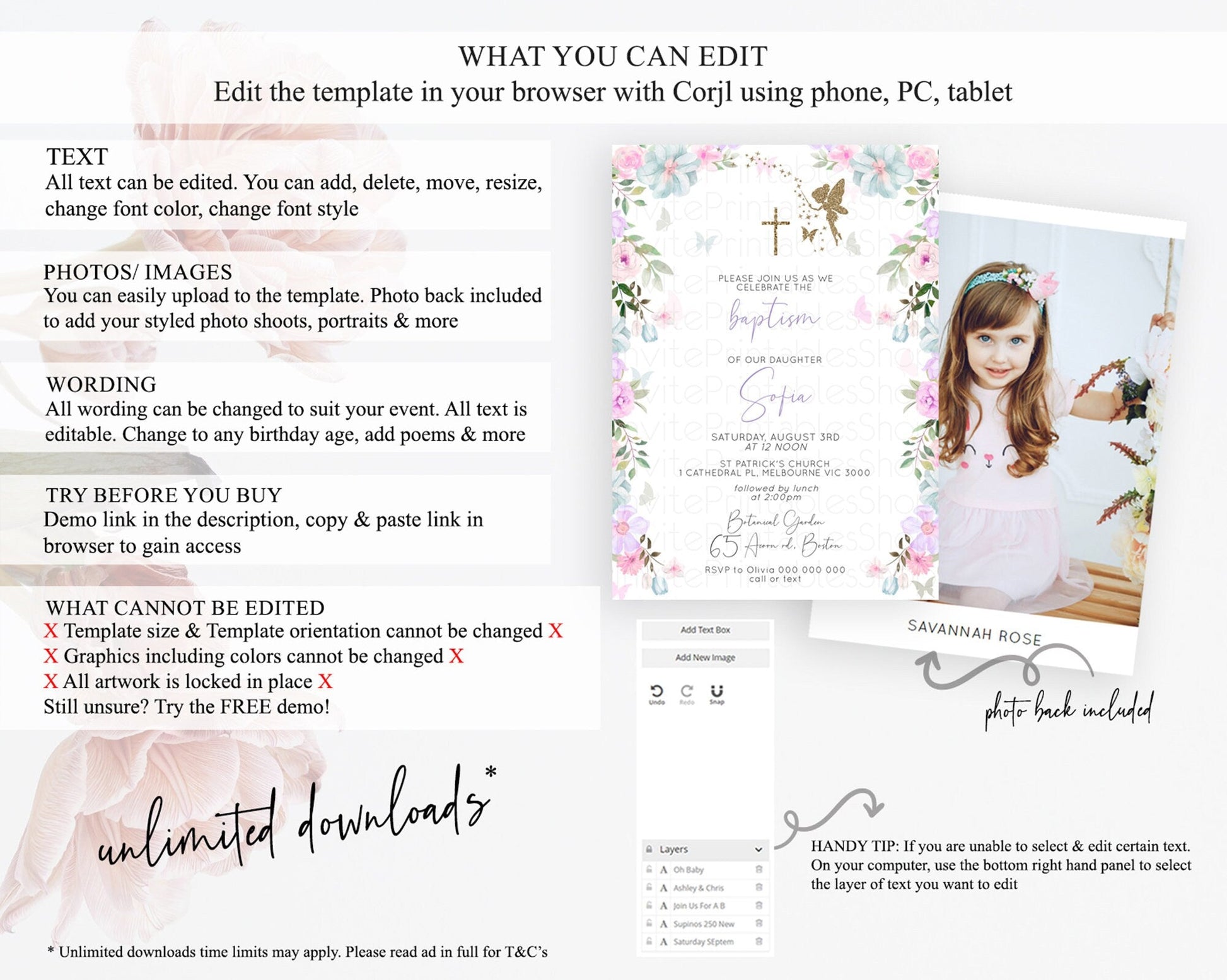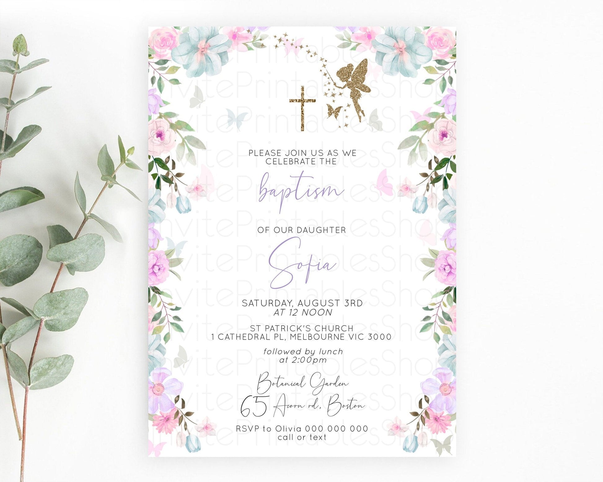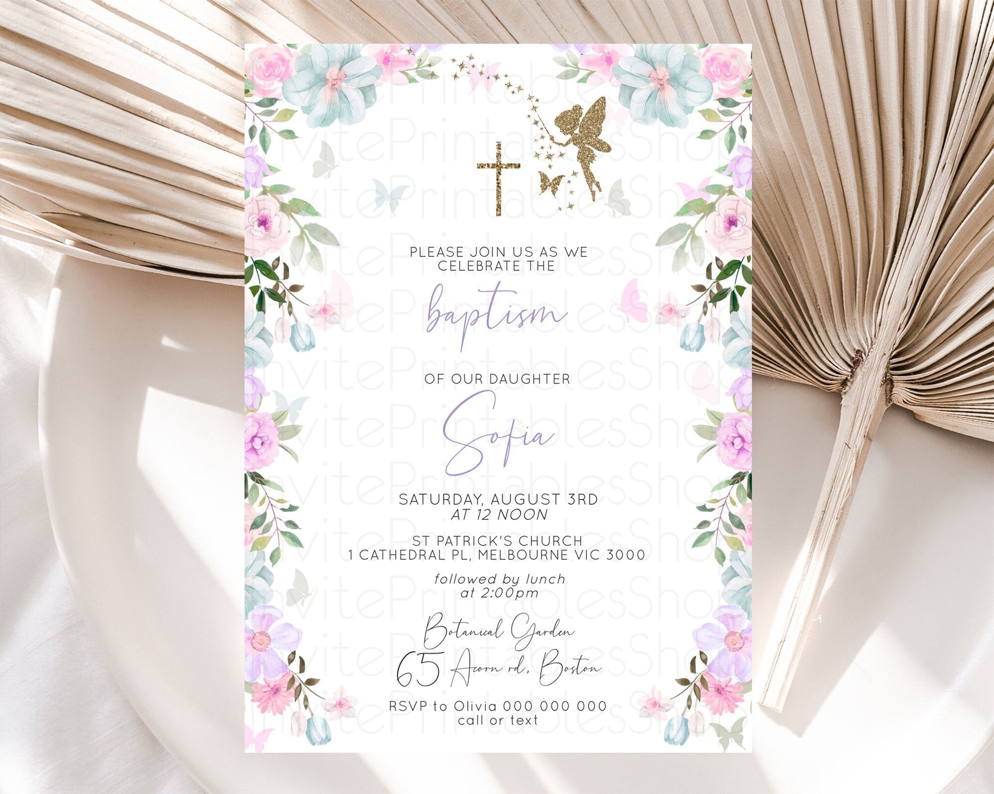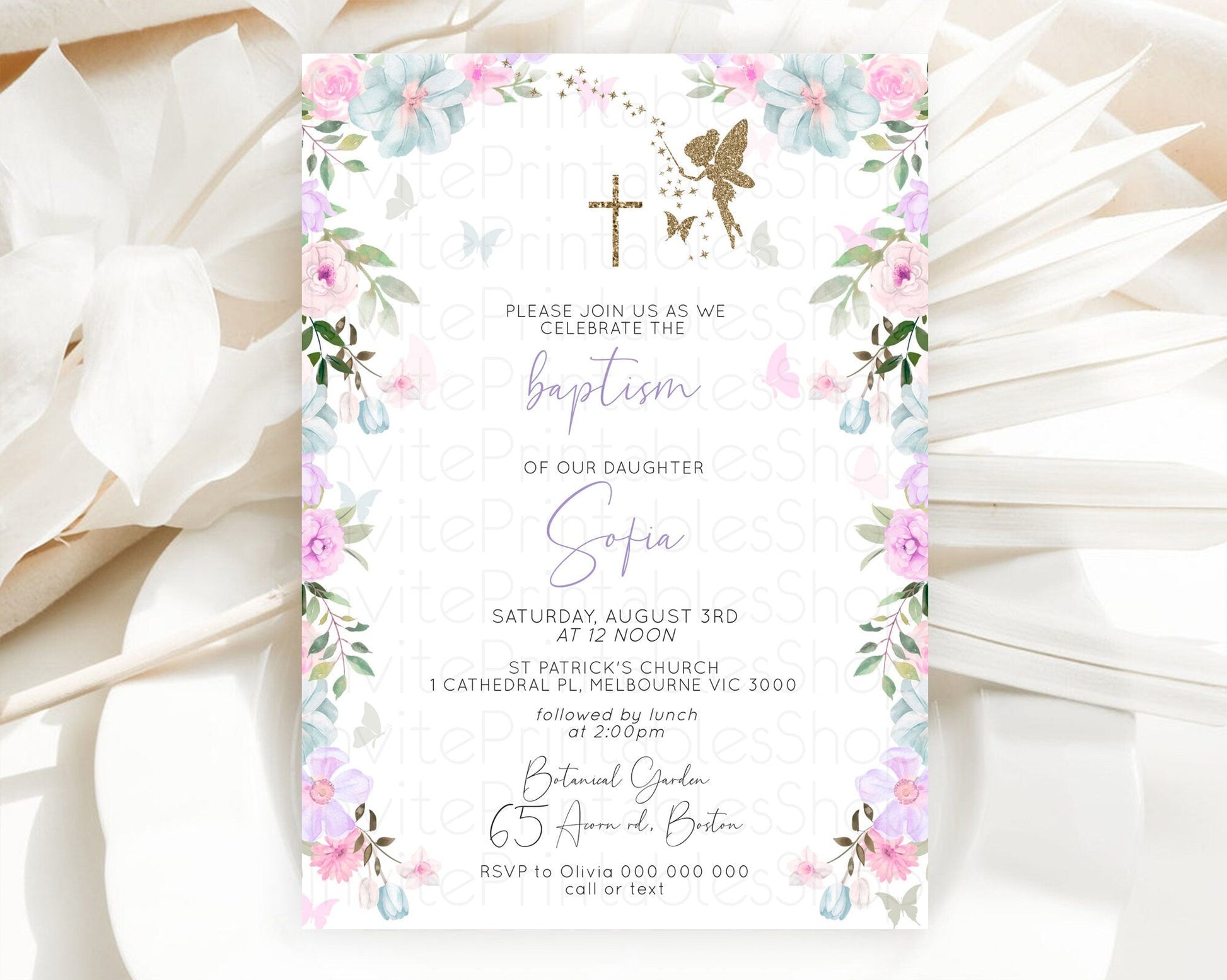 Fairy Baptism Invitation Fairy Baptism 1st Birthday Invitation Enchanted Secret Garden Christening Invite Pastel Floral Butterfly D10475
