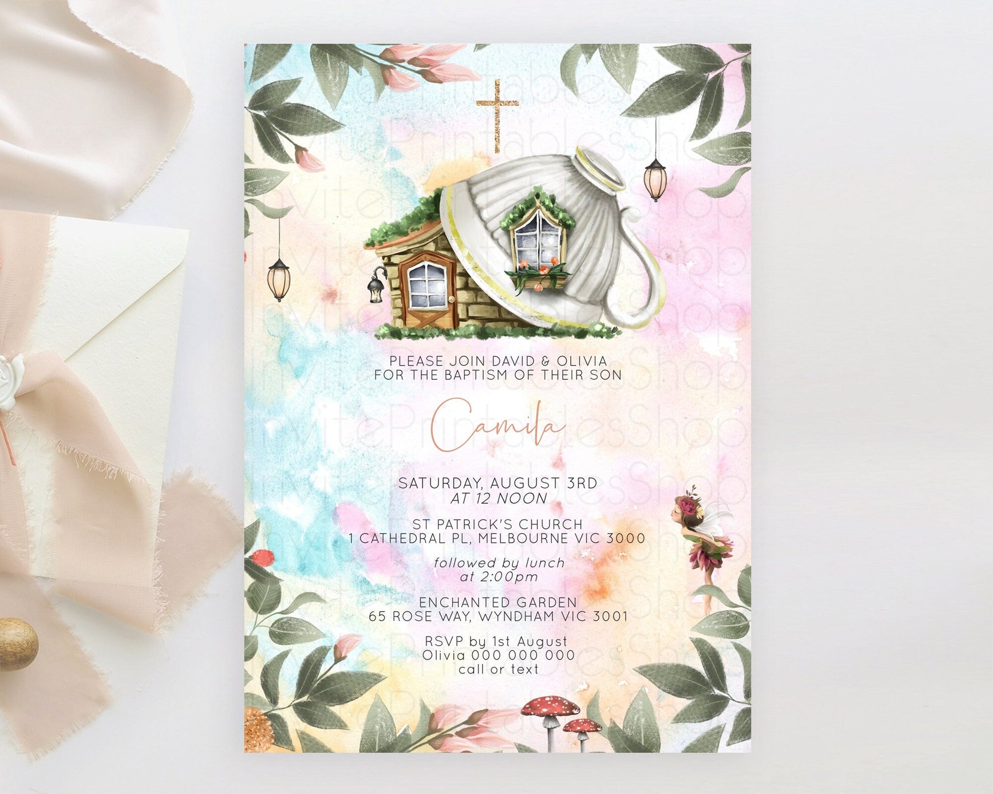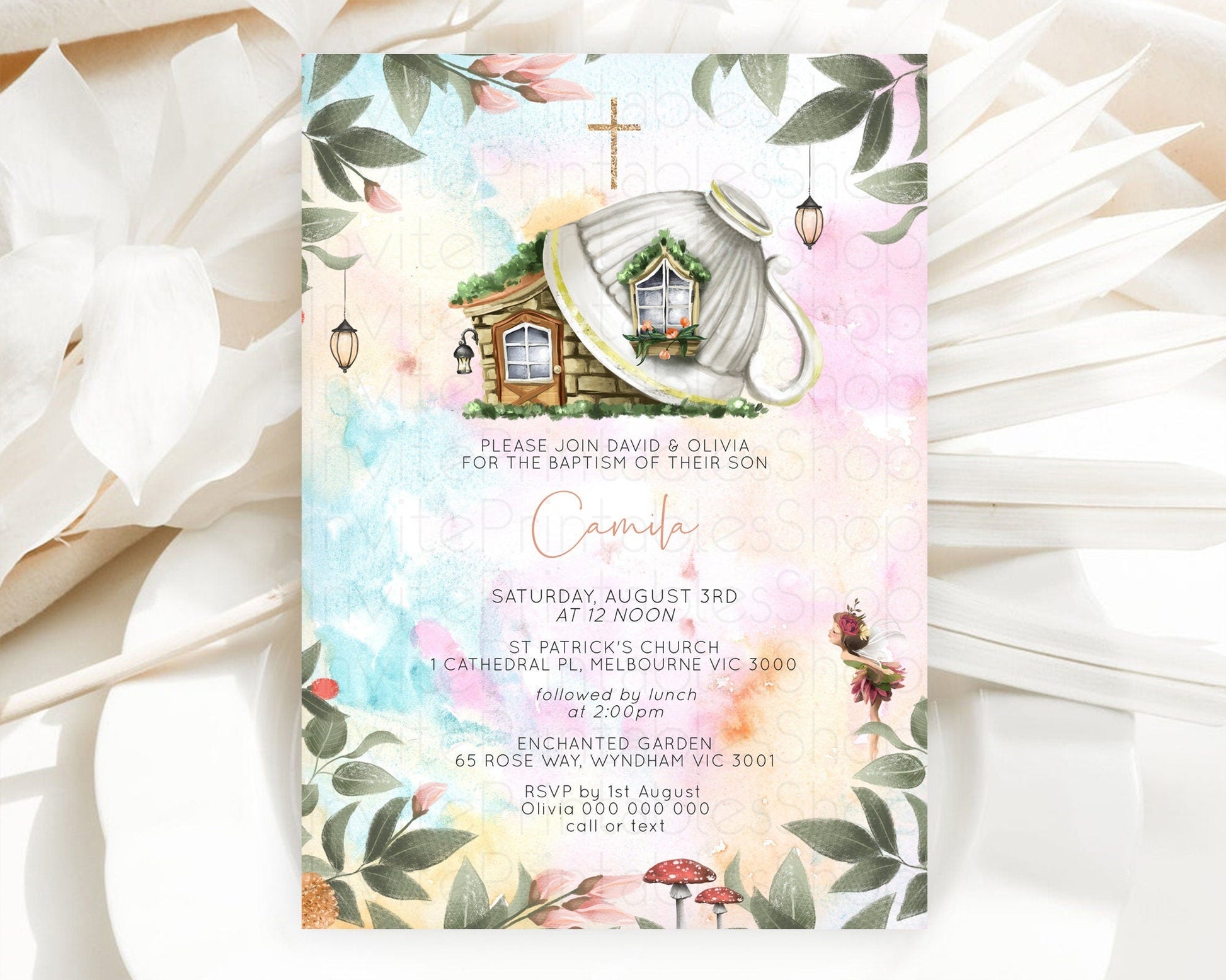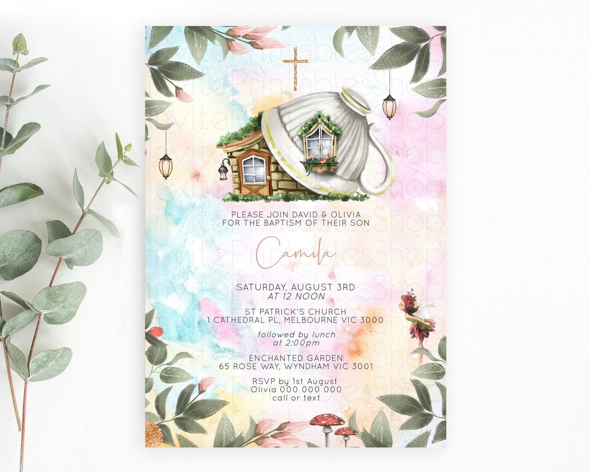 Fairy Baptism Invitation Fairy Baptism 1st Birthday Invitation Enchanted Secret Garden Christening Invite Pastel Floral Butterfly D10555