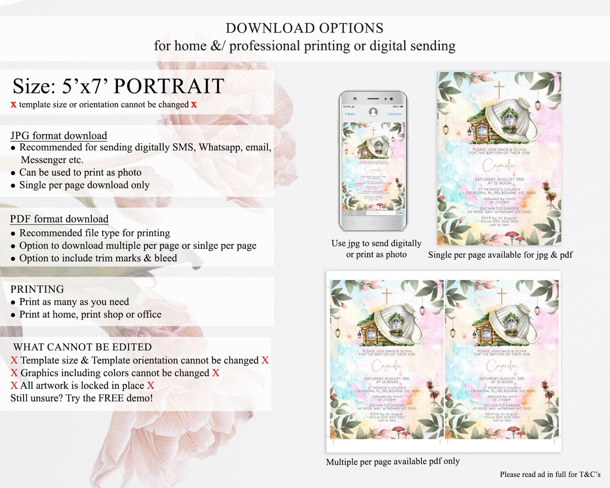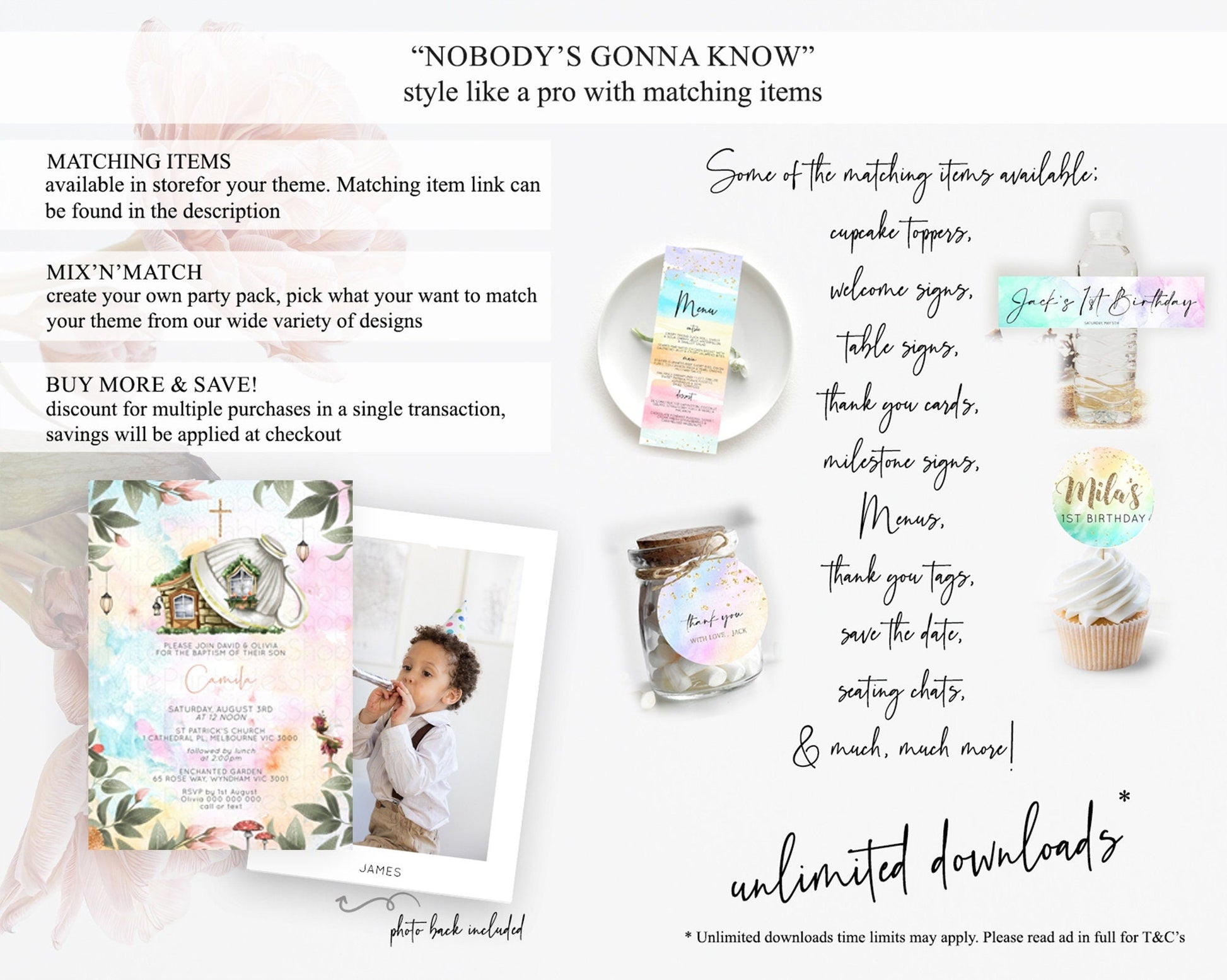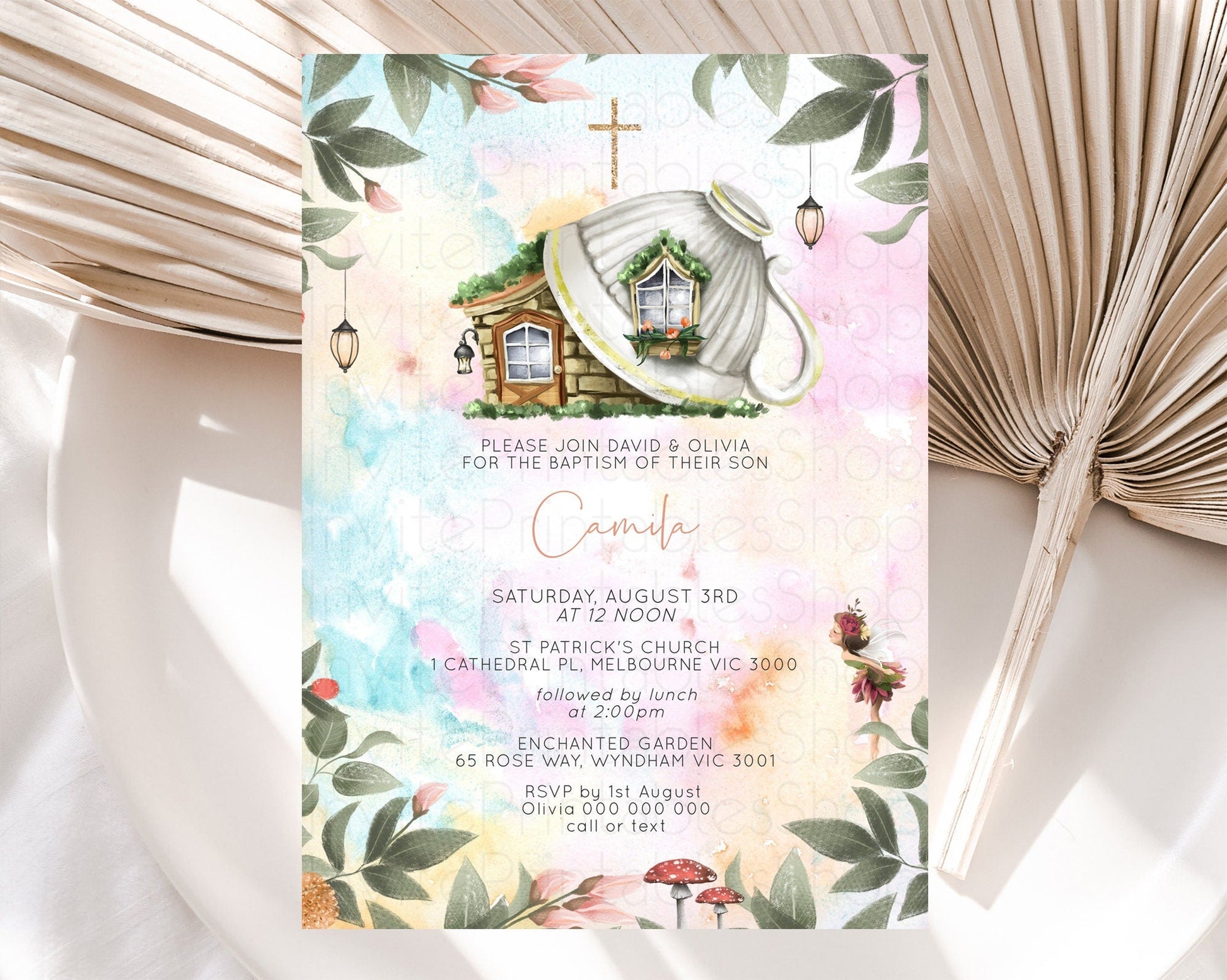 Fairy Baptism Invitation Fairy Baptism 1st Birthday Invitation Enchanted Secret Garden Christening Invite Pastel Floral Butterfly D10555