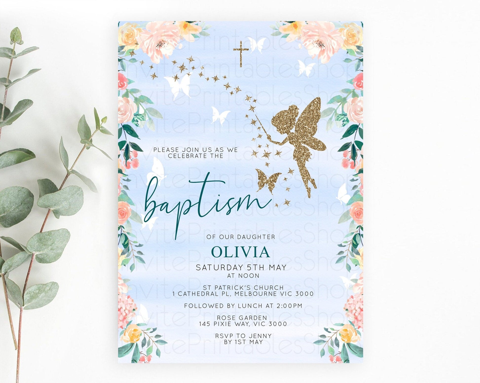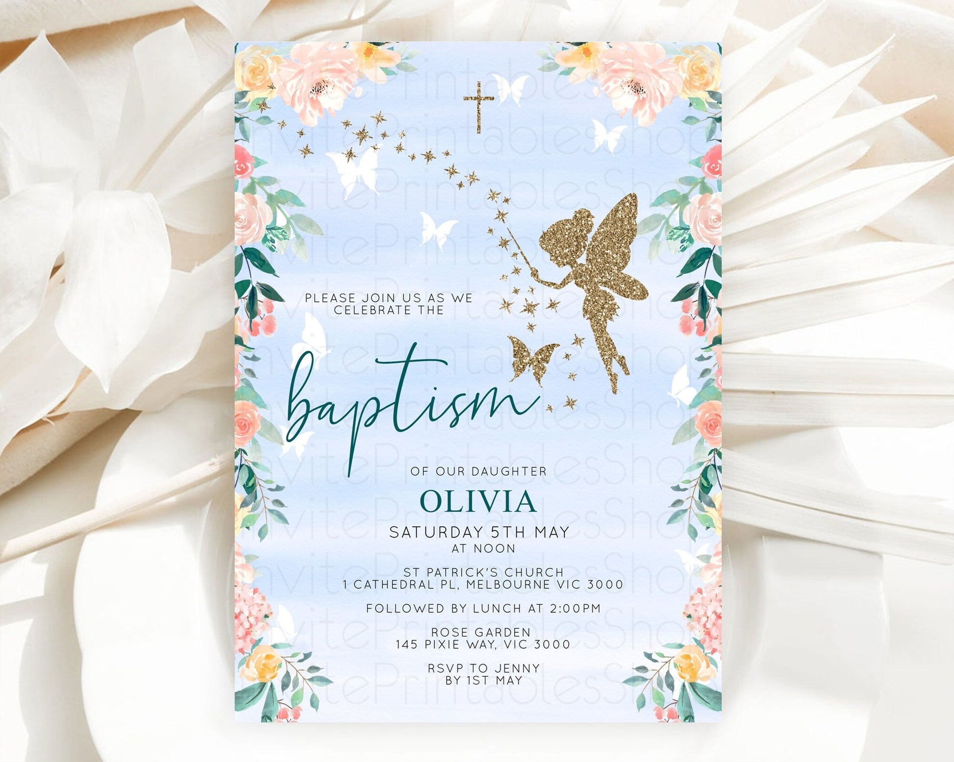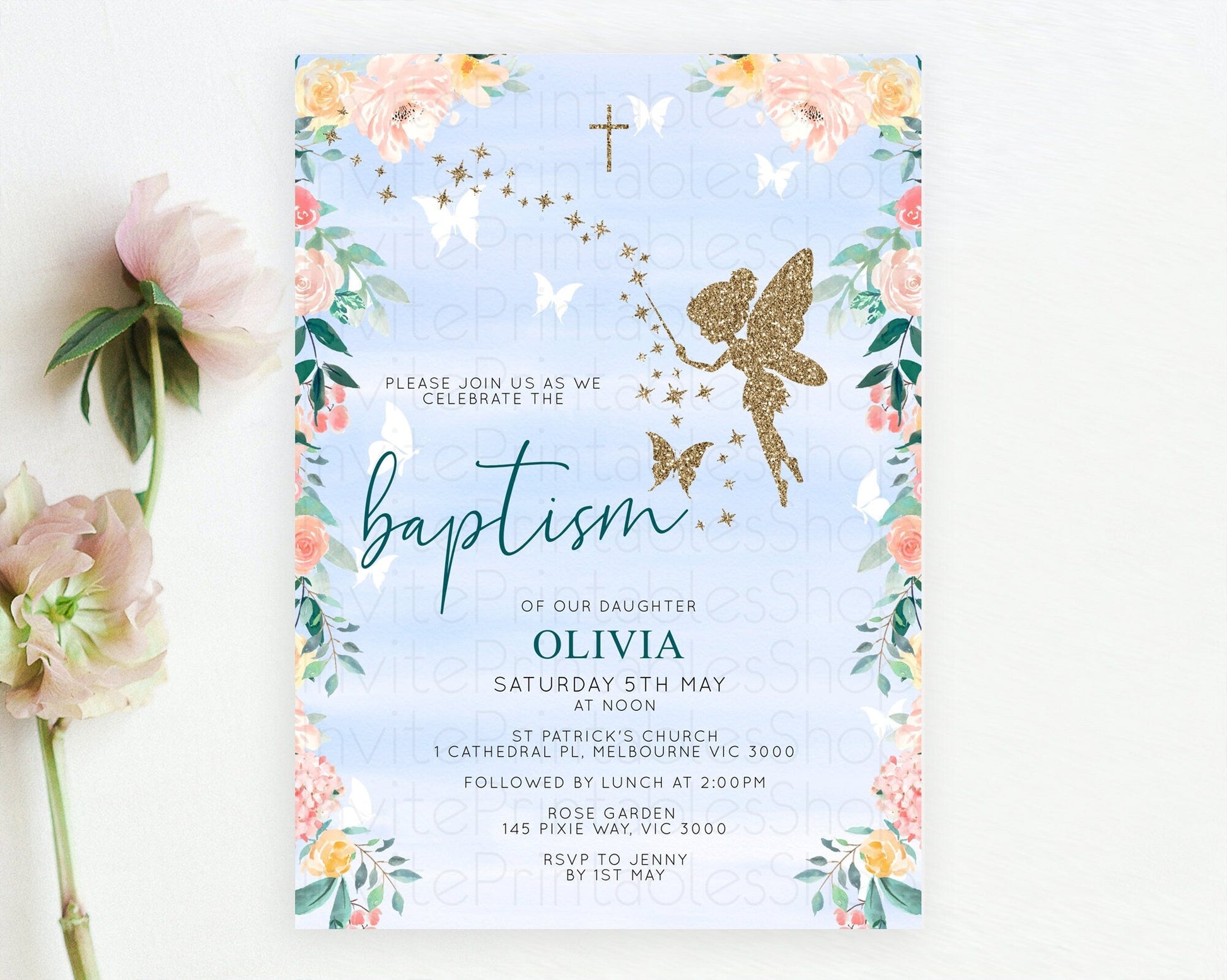 Fairy Baptism Invitation Fairy Baptism 1st Birthday Invitation Enchanted Secret Garden Christening Invite Pastel Floral Butterfly D10794