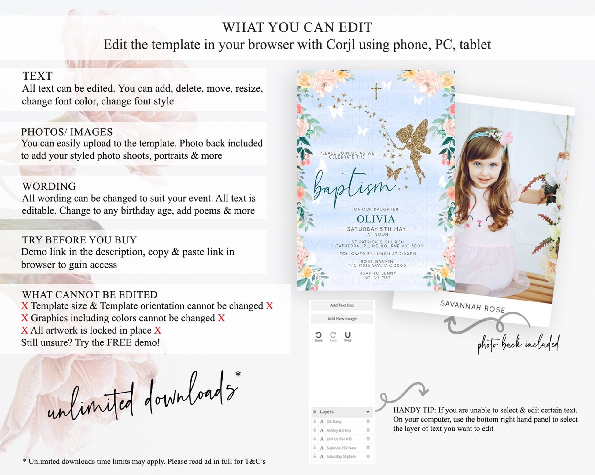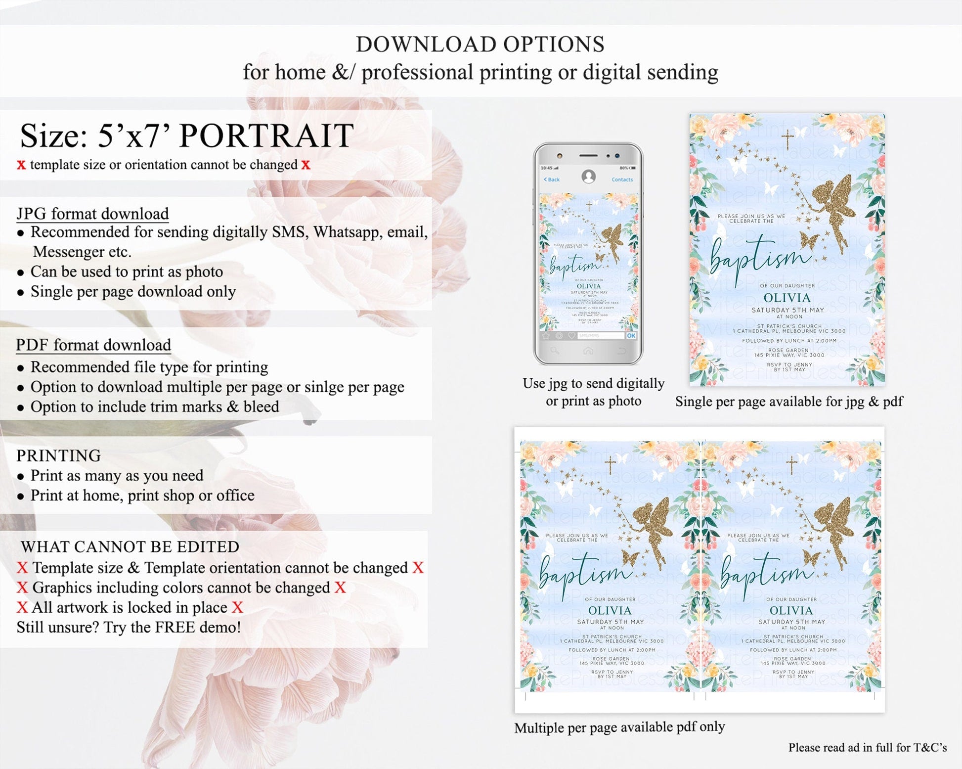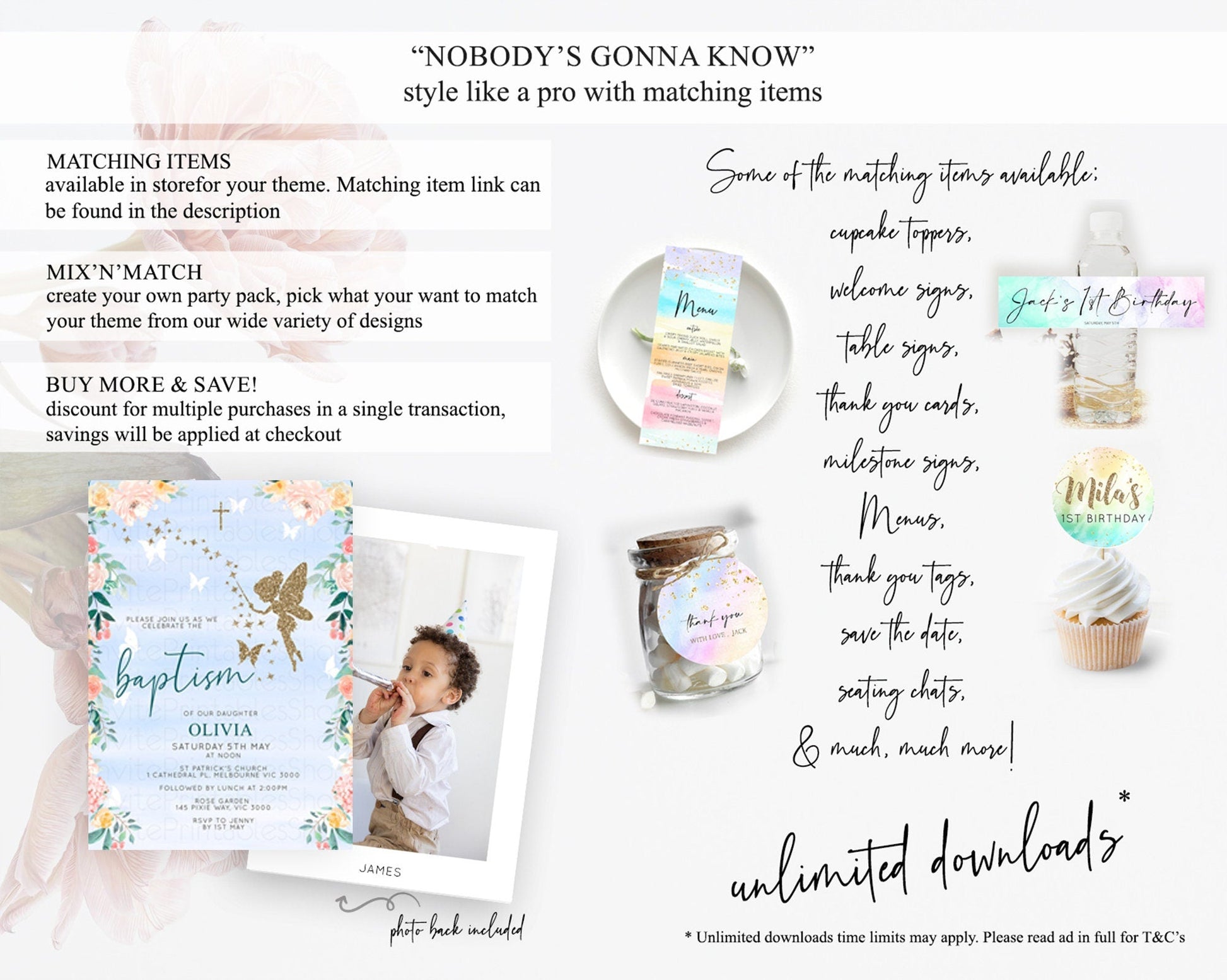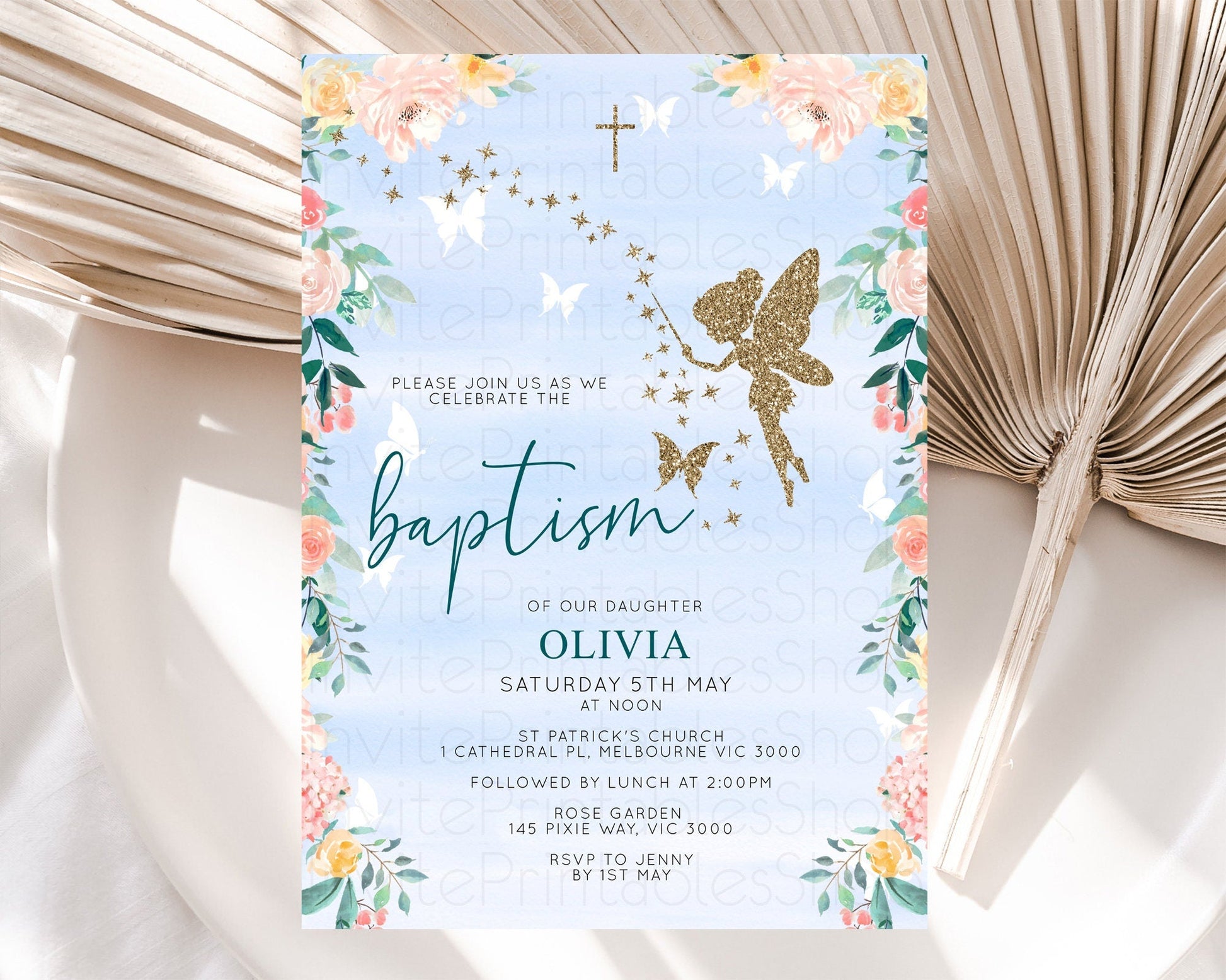 Fairy Baptism Invitation Fairy Baptism 1st Birthday Invitation Enchanted Secret Garden Christening Invite Pastel Floral Butterfly D10794