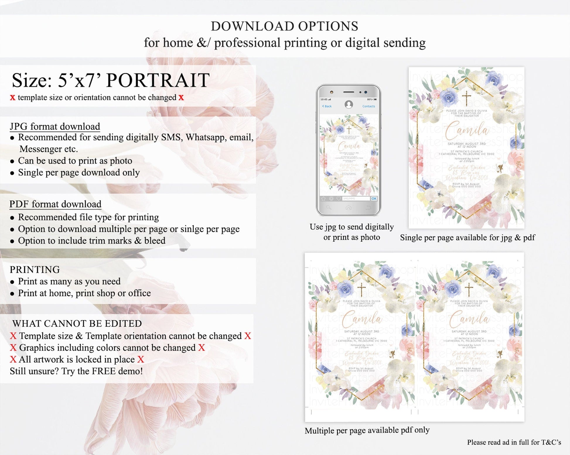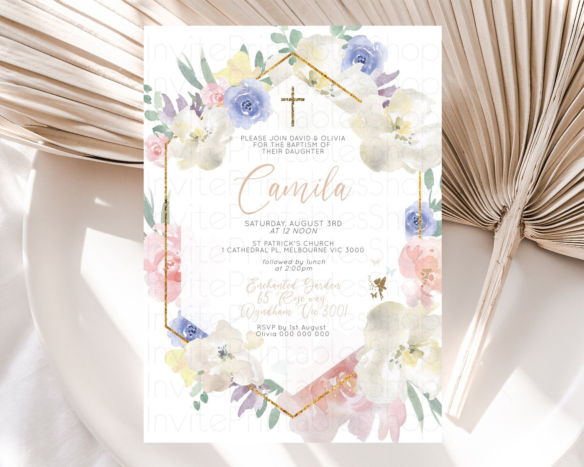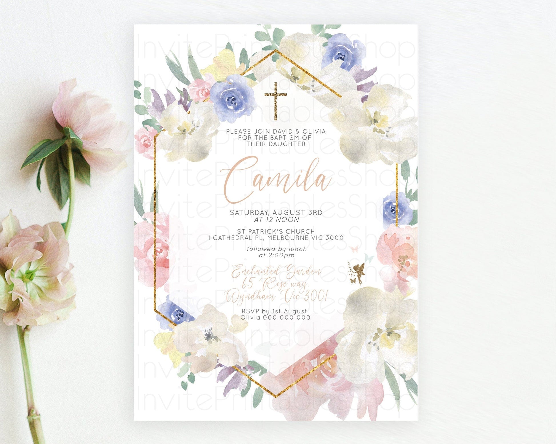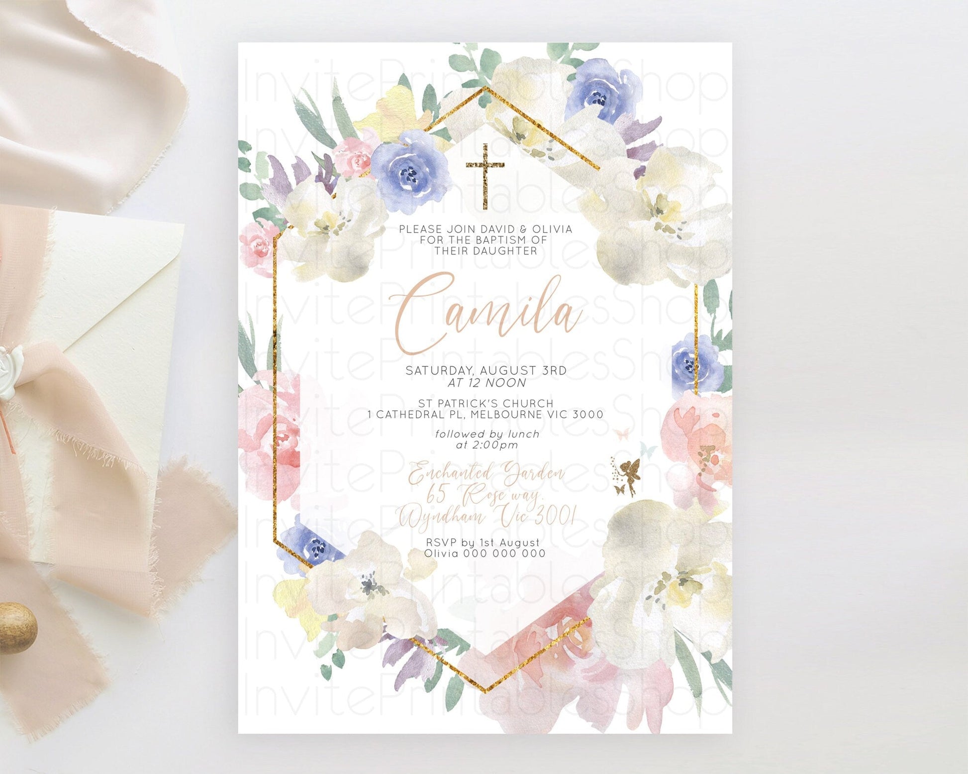Fairy Baptism Invitation Fairy Baptism 1st Birthday Invitation Enchanted Secret Garden Christening Invite Pastel Floral Butterfly D10829