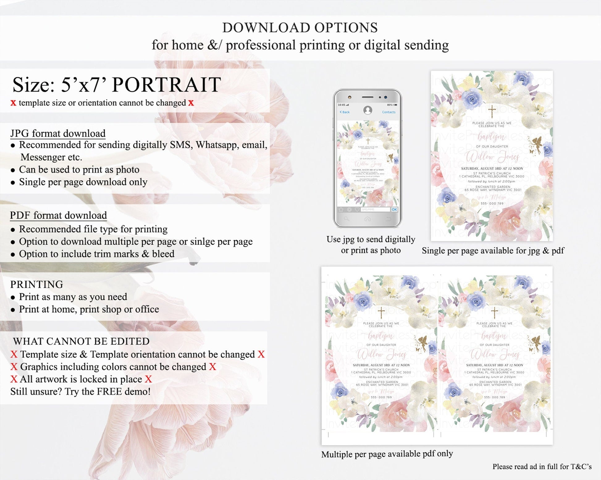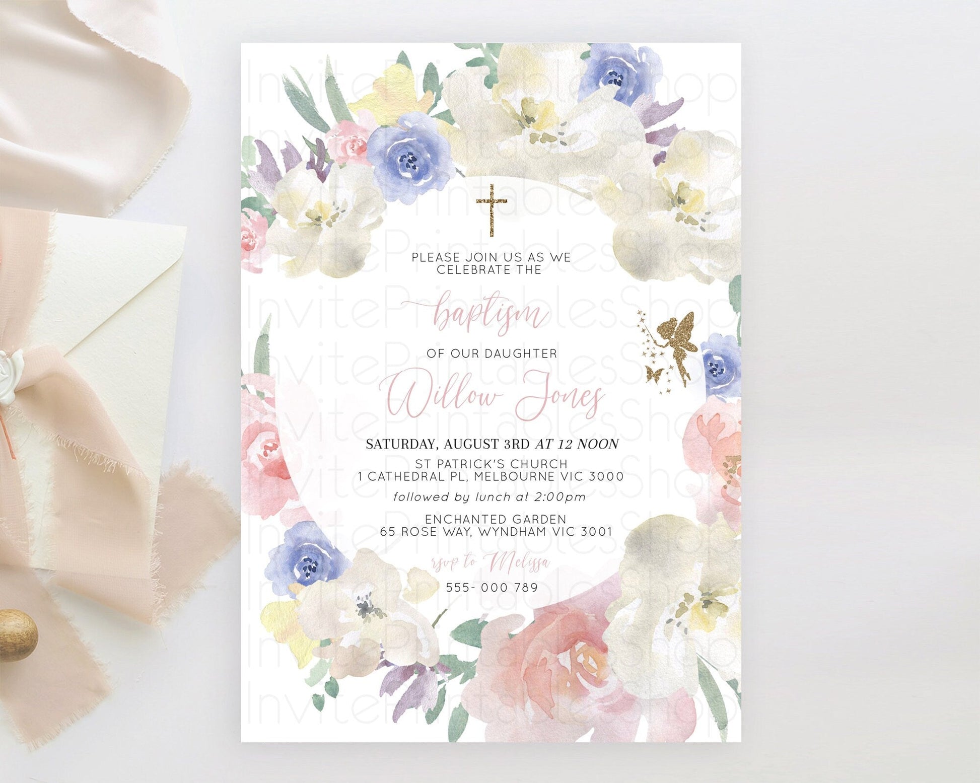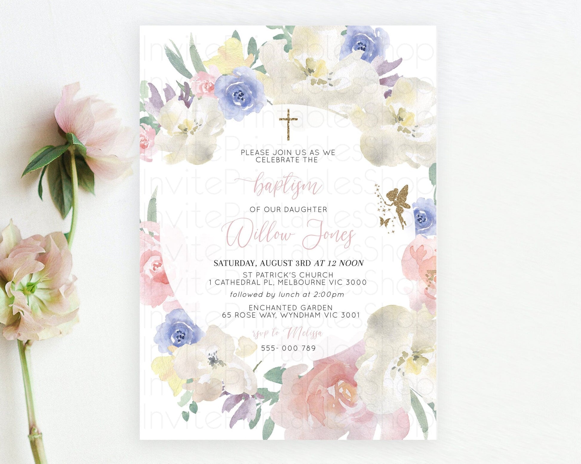 Fairy Baptism Invitation Fairy Baptism 1st Birthday Invitation Enchanted Secret Garden Christening Invite Pastel Floral Butterfly D10852