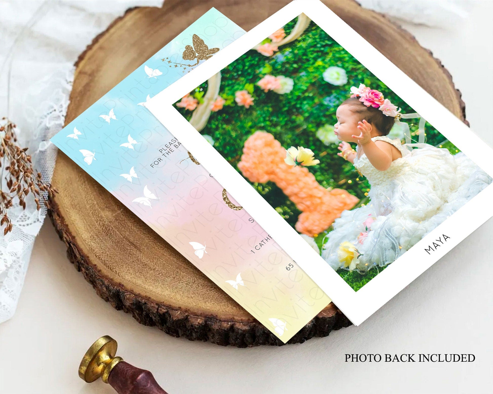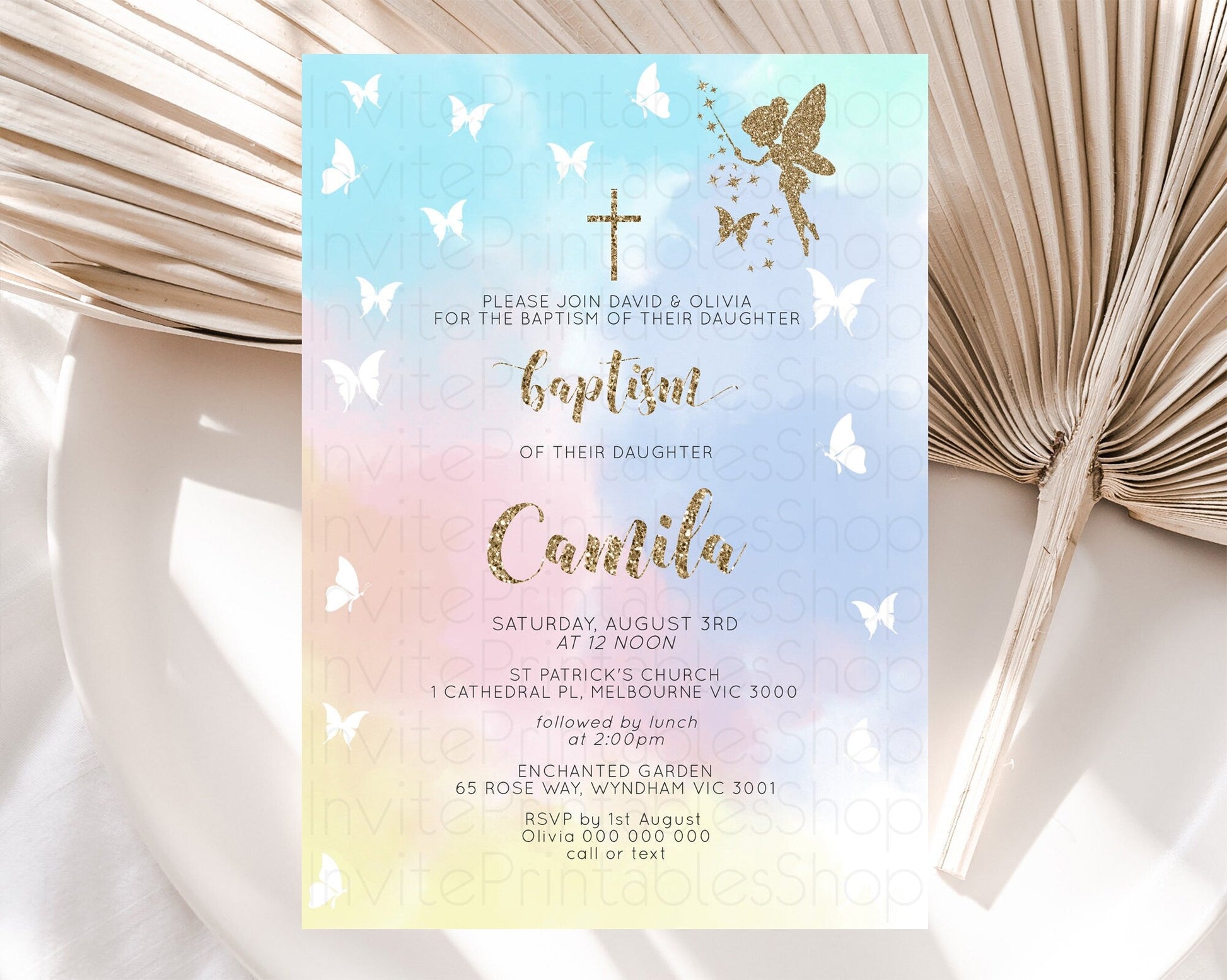 Fairy Baptism Invitation Fairy Baptism 1st Birthday Invitation Enchanted Secret Garden Christening Invite Pastel Floral Butterfly D10894