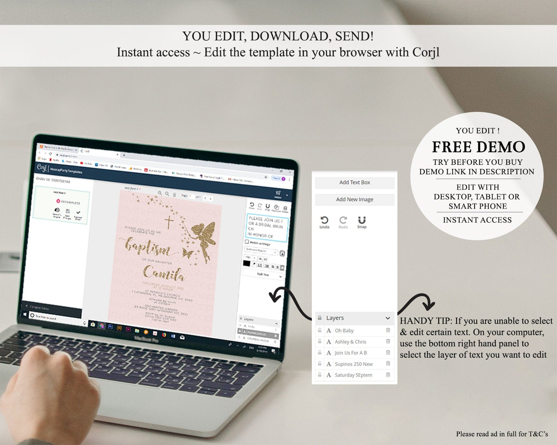 Fairy Baptism Invitation Fairy Baptism 1st Birthday Invitation Enchanted Secret Garden Christening Invite Pastel Floral Butterfly D10899