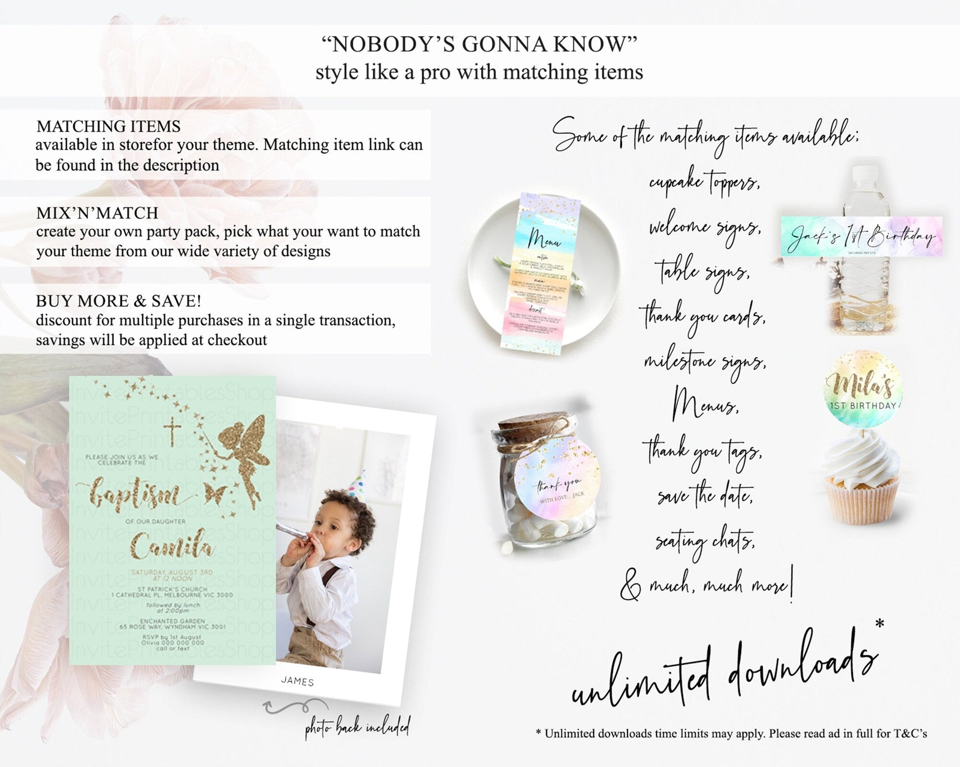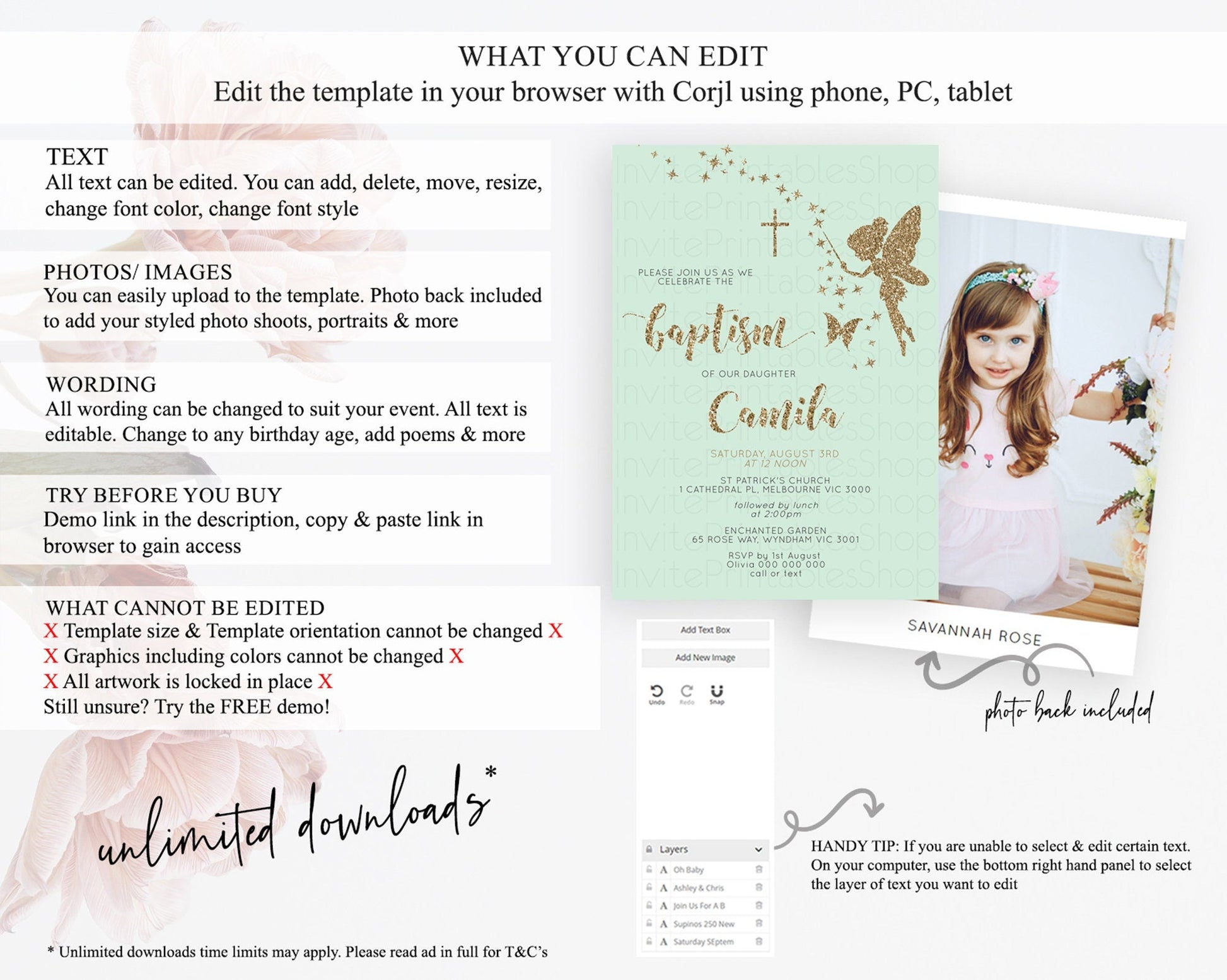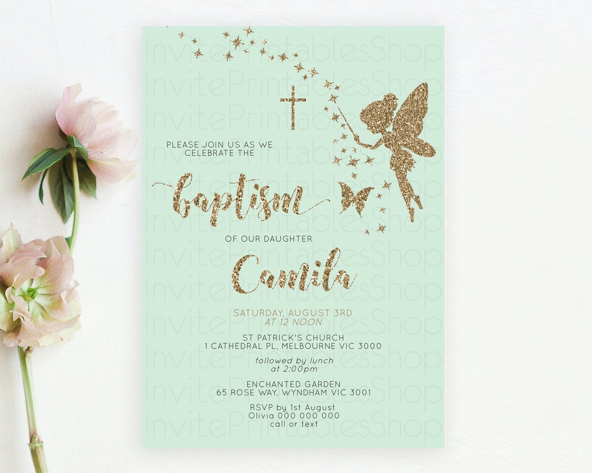 Fairy Baptism Invitation Fairy Baptism 1st Birthday Invitation Enchanted Secret Garden Christening Invite Pastel Floral Butterfly D10908