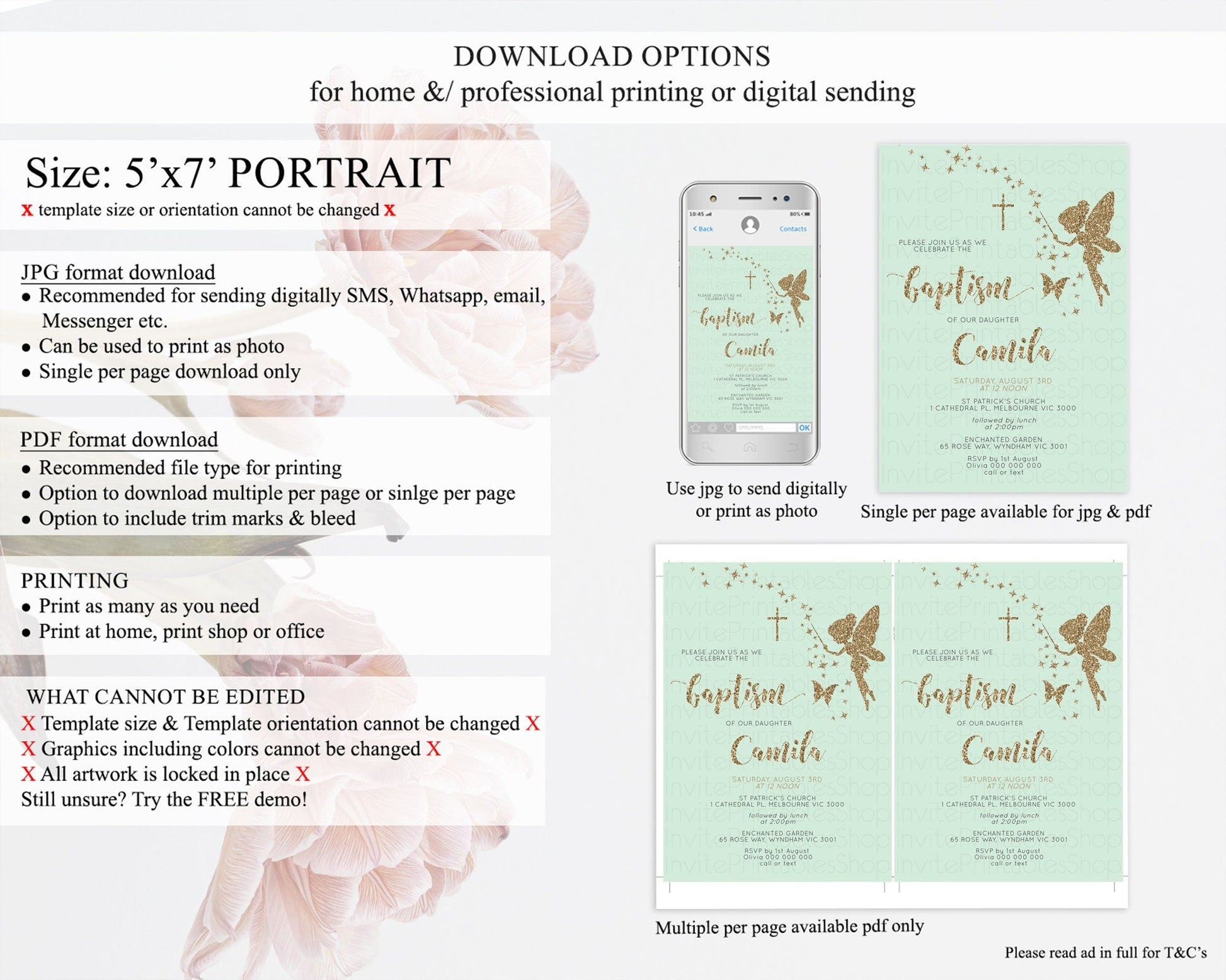 • Template size & orientation cannot be changed. Please use the demo link to confirm this product suits your needs.