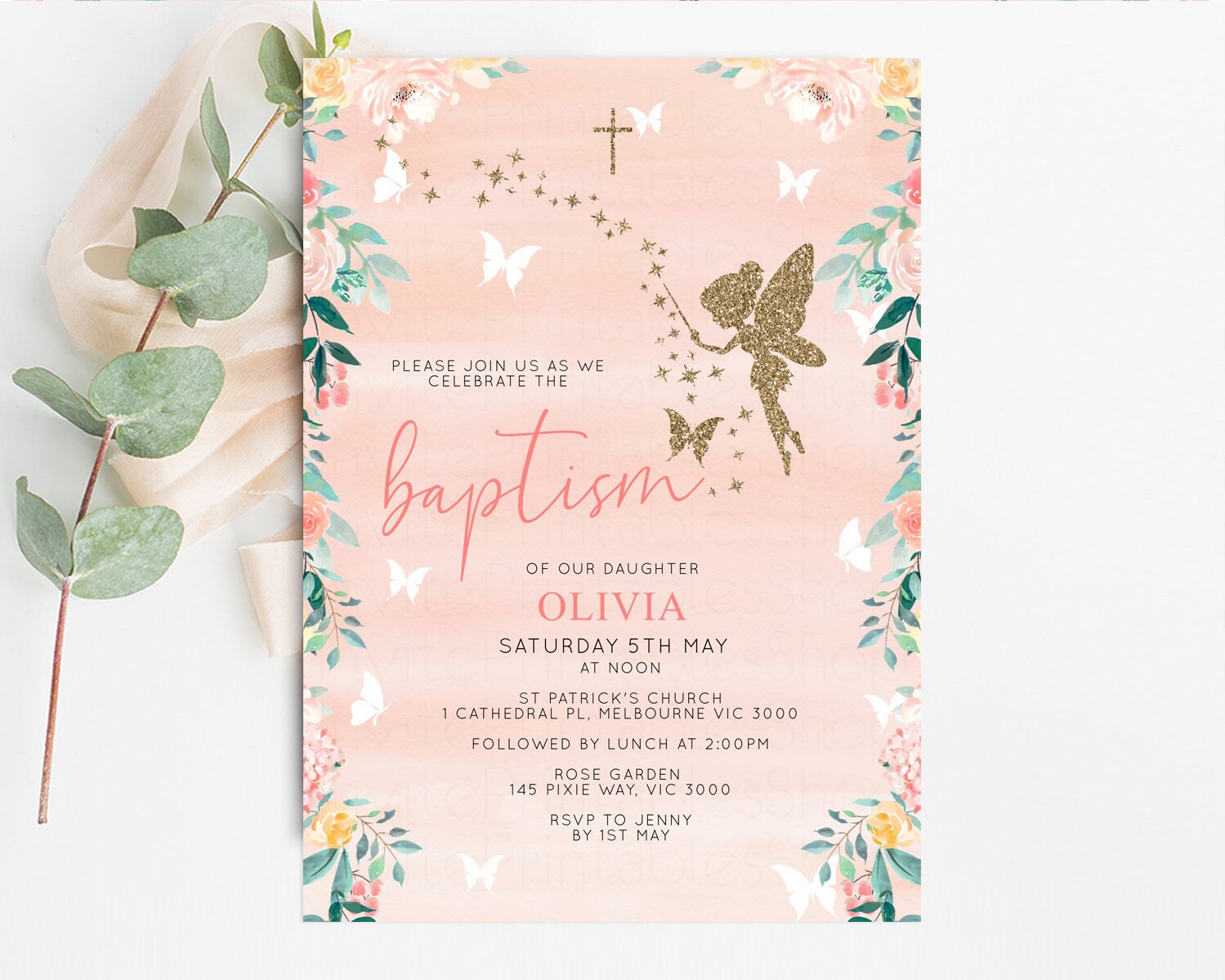 Fairy Baptism Invite Fairy Christening Invite Enchanted Forest Invite Secret Garden Invite Whimsical Floral Invite Botanical High Tea f238
