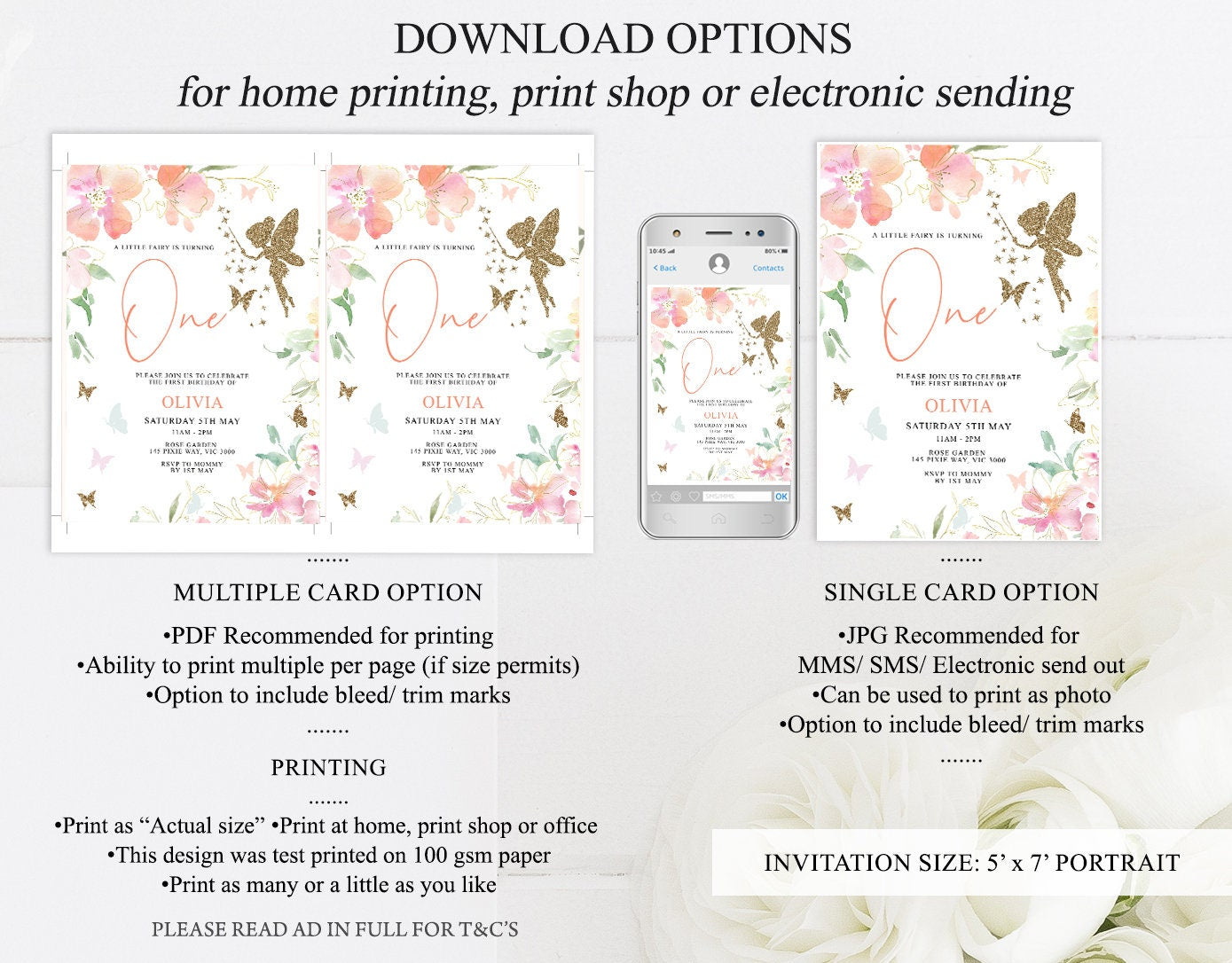 Fairy Birthday Invitation Enchanted Fairy Garden Invitation Enchanted Magical Pixie Floral Pastel Birthday Invitation Pink Gold Glitter 91