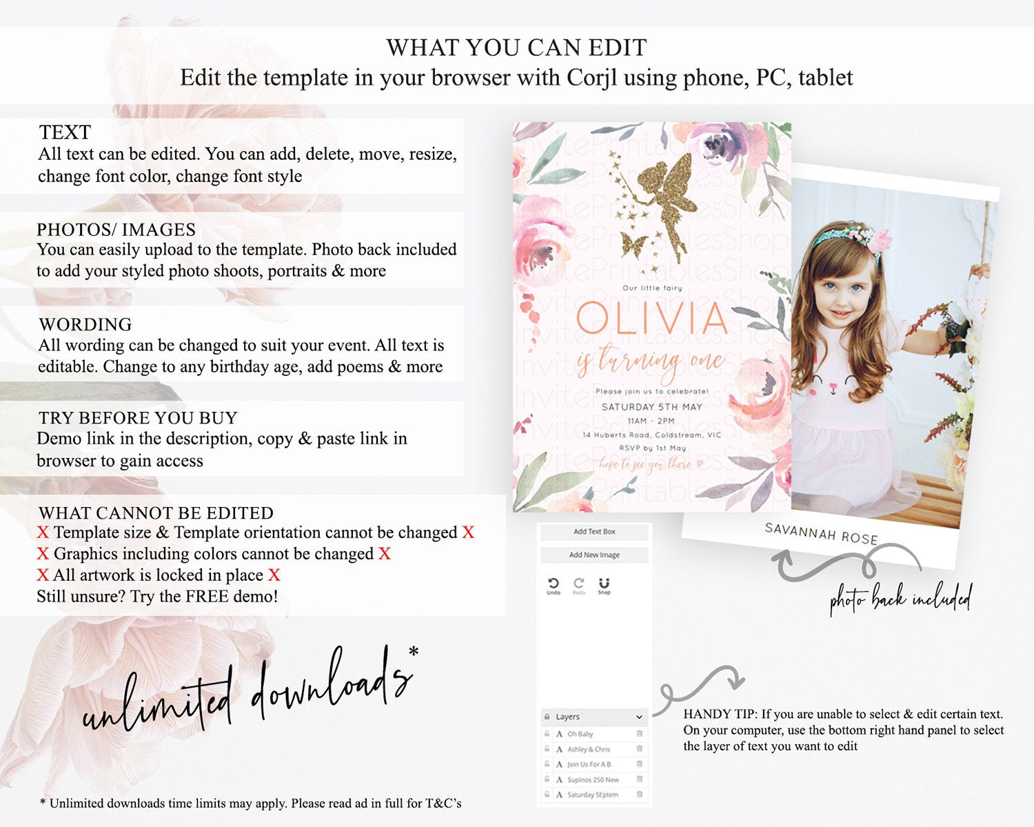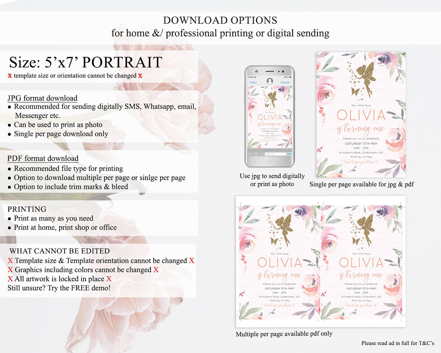 Fairy Birthday Invitation Fairy Invites Fairy Tea Party Fairy Garden Birthday Secret Garden Enchanted Garden Pastel Floral Butterfly D10197