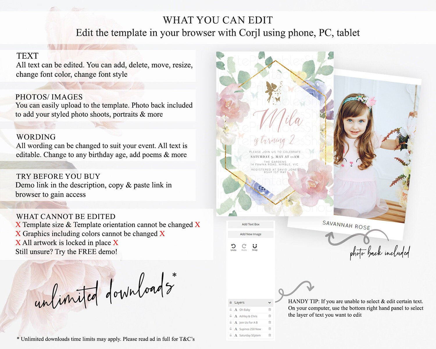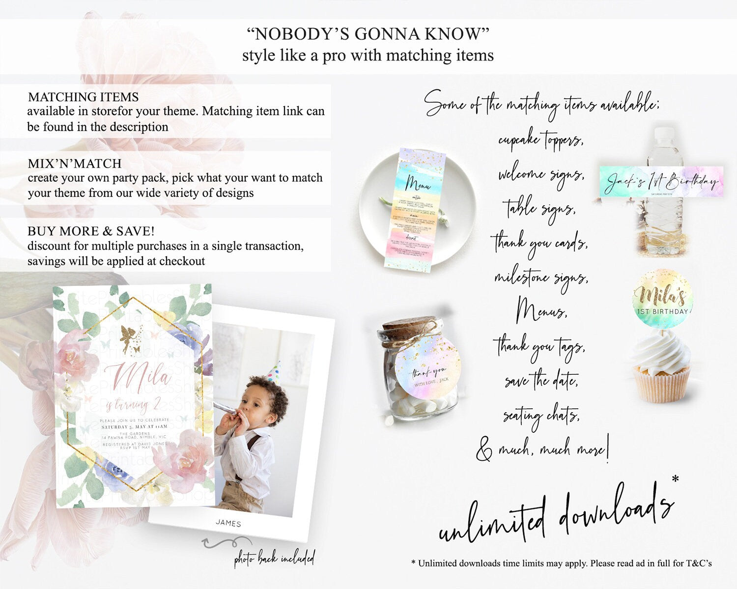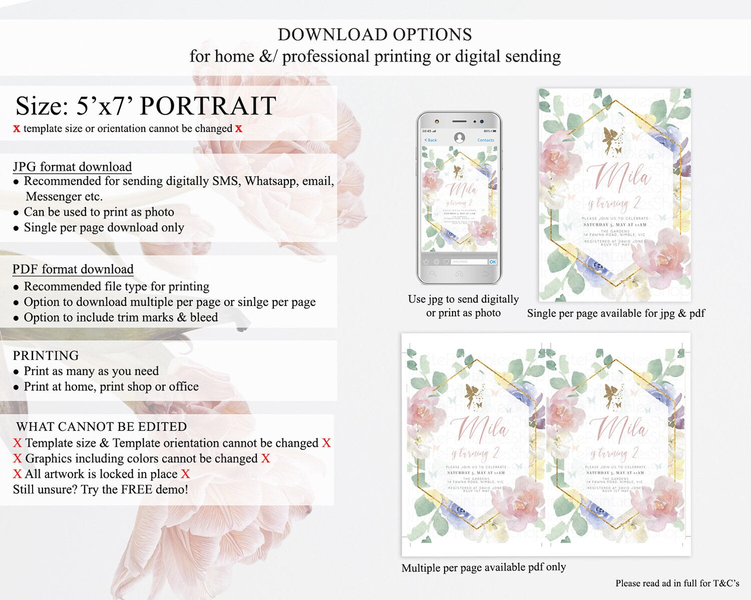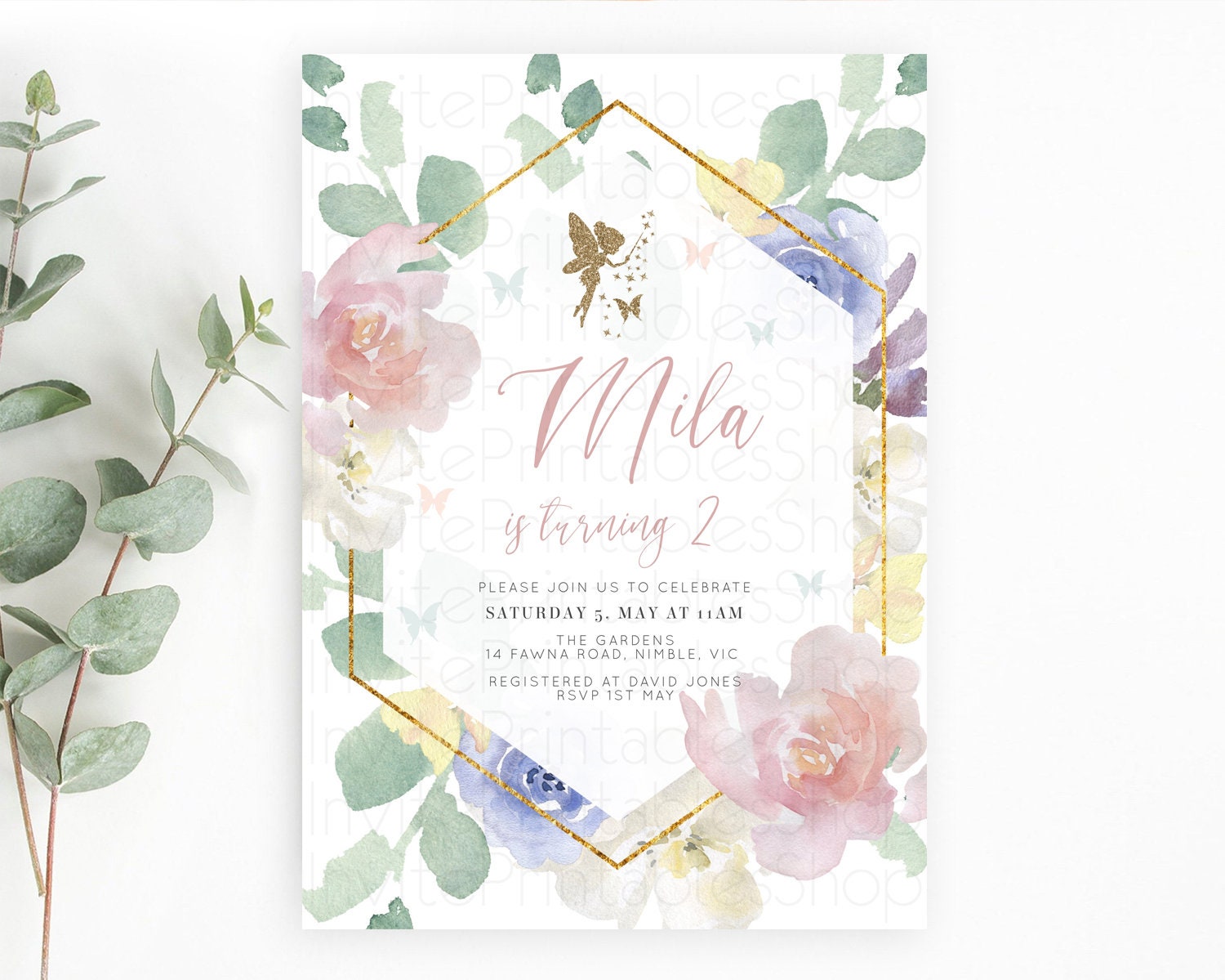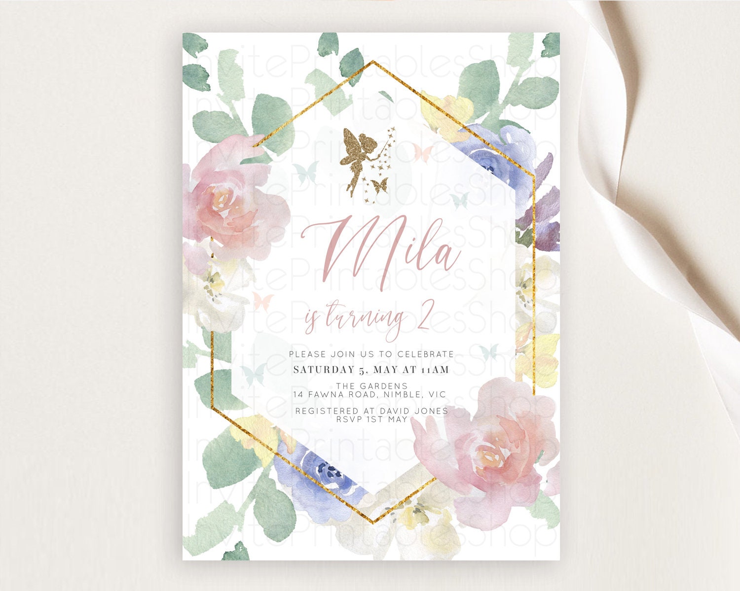 Fairy Birthday Invitation Fairy Invites Fairy Tea Party Fairy Garden Birthday Secret Garden Enchanted Garden Pastel Floral Butterfly D10294