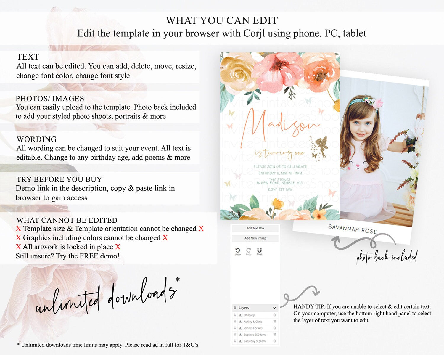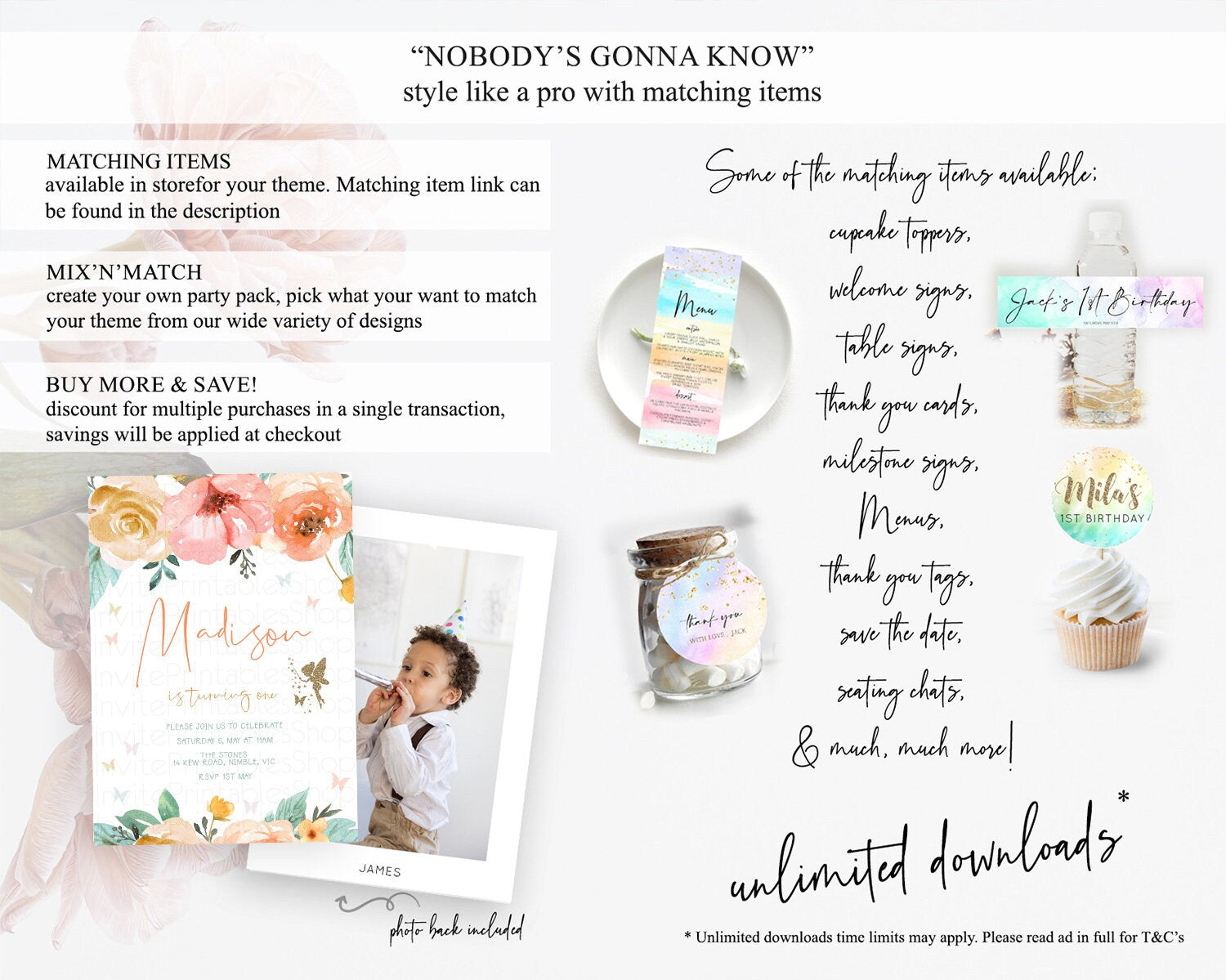 Fairy Birthday Invitation Fairy Invites Fairy Tea Party Fairy Garden Birthday Secret Garden Enchanted Garden Pastel Floral Butterfly D10346