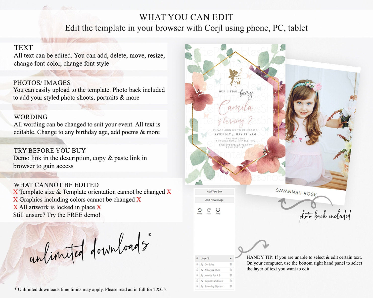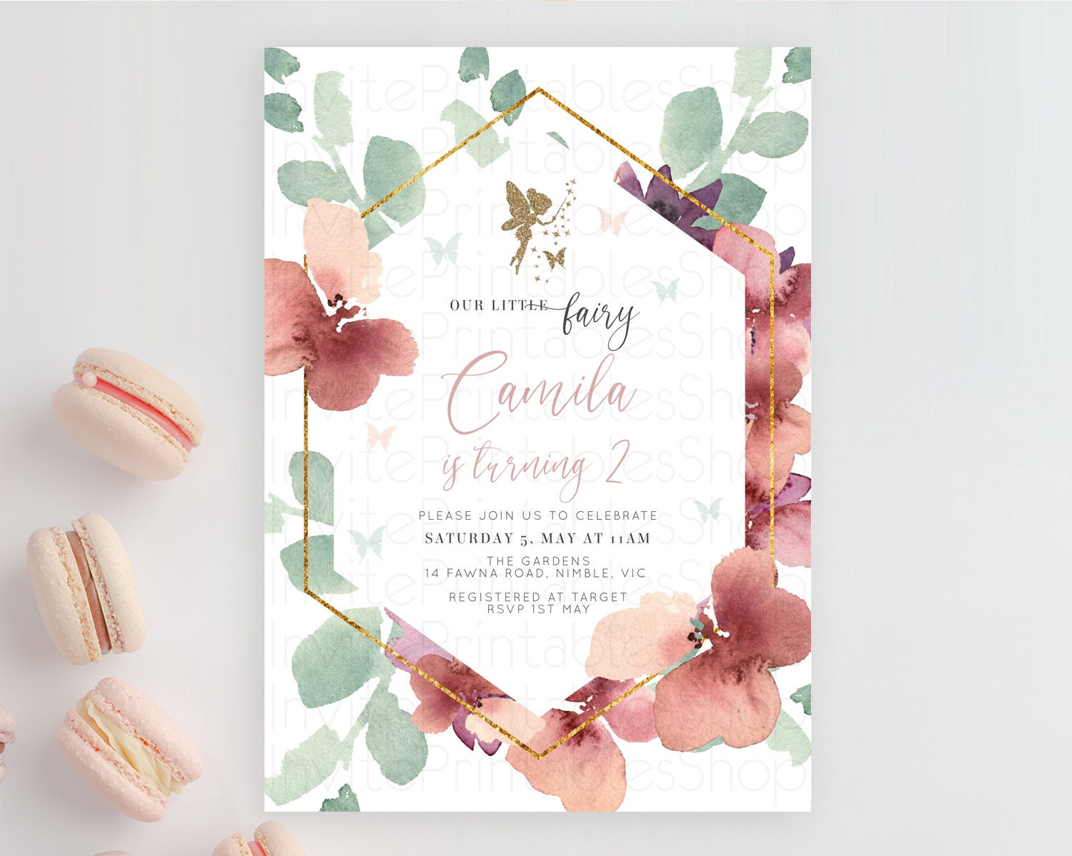 Fairy Birthday Invitation Fairy Invites Fairy Tea Party Fairy Garden Birthday Secret Garden Enchanted Garden Pastel Floral Butterfly D10460