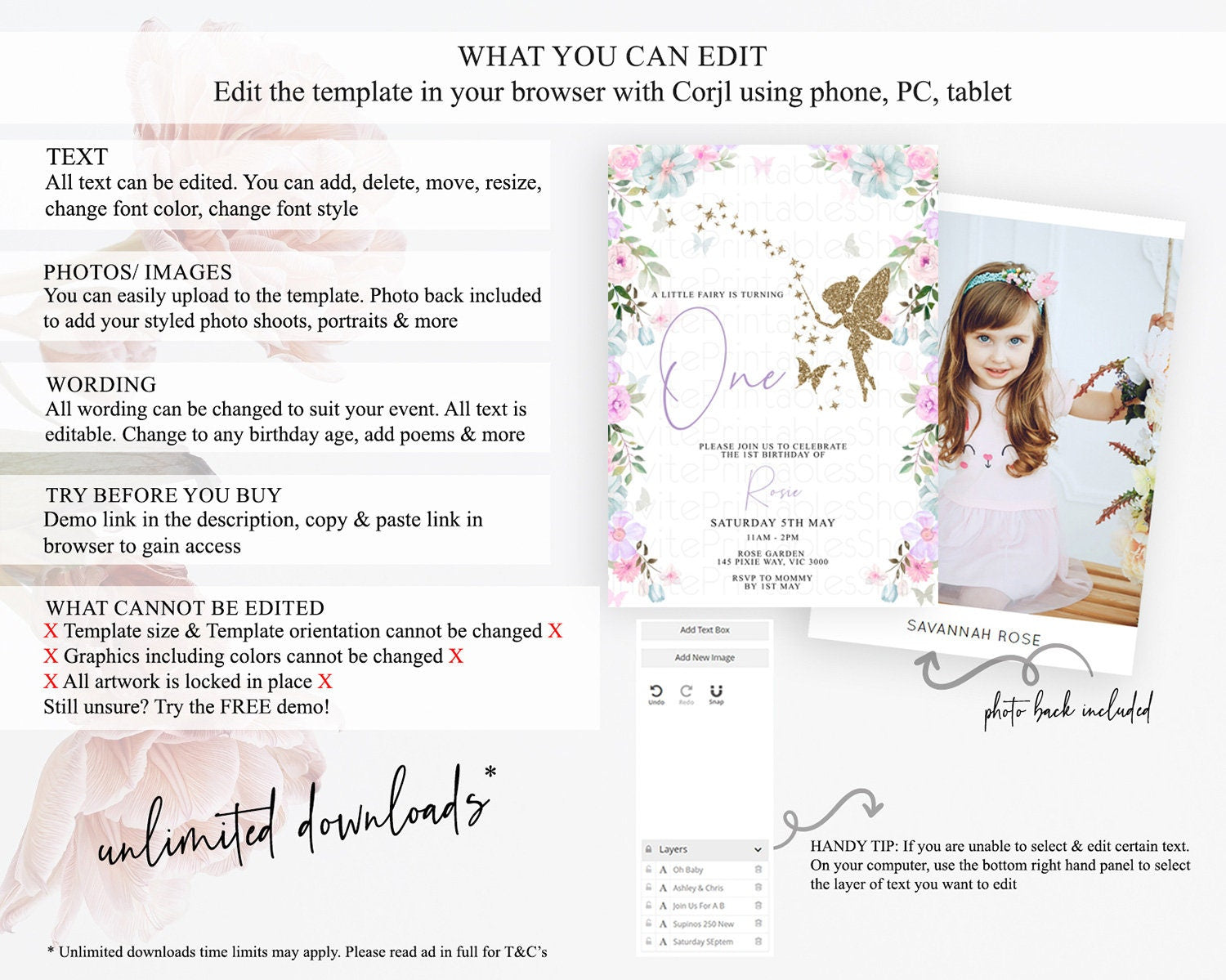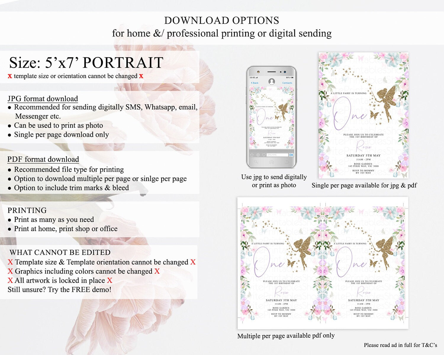 Fairy Birthday Invitation Fairy Invites Fairy Tea Party Fairy Garden Birthday Secret Garden Enchanted Garden Pastel Floral Butterfly D10475