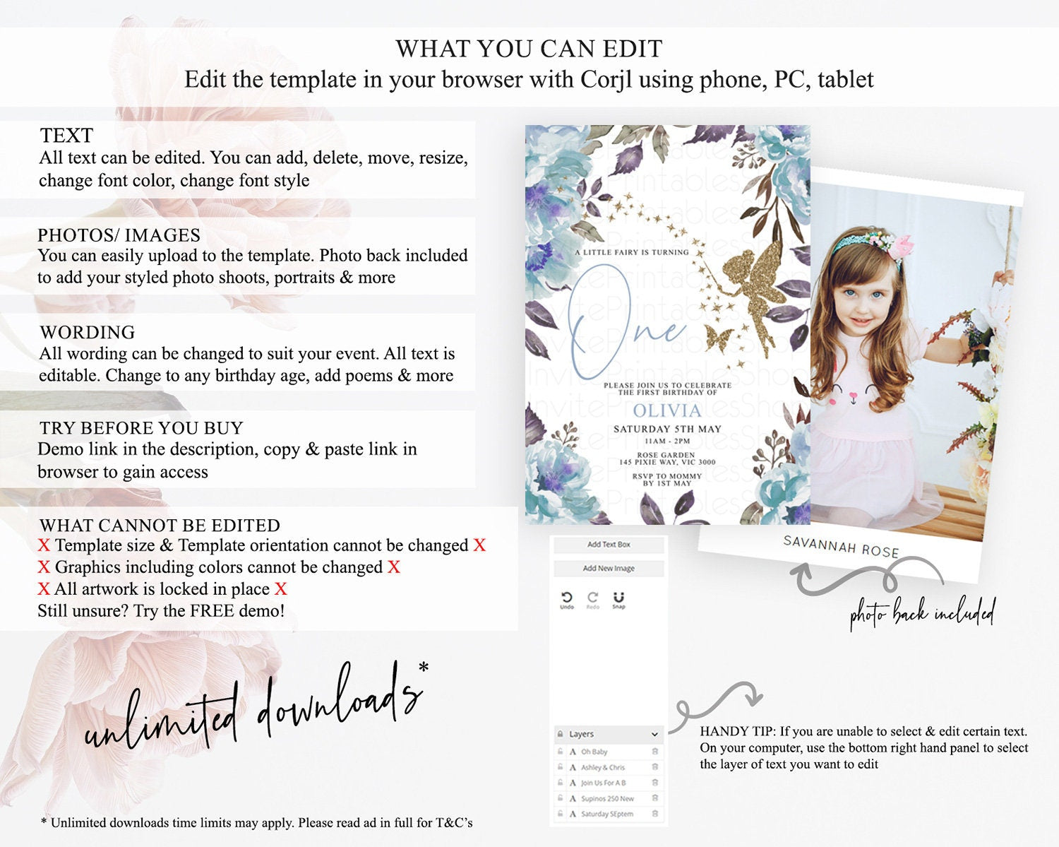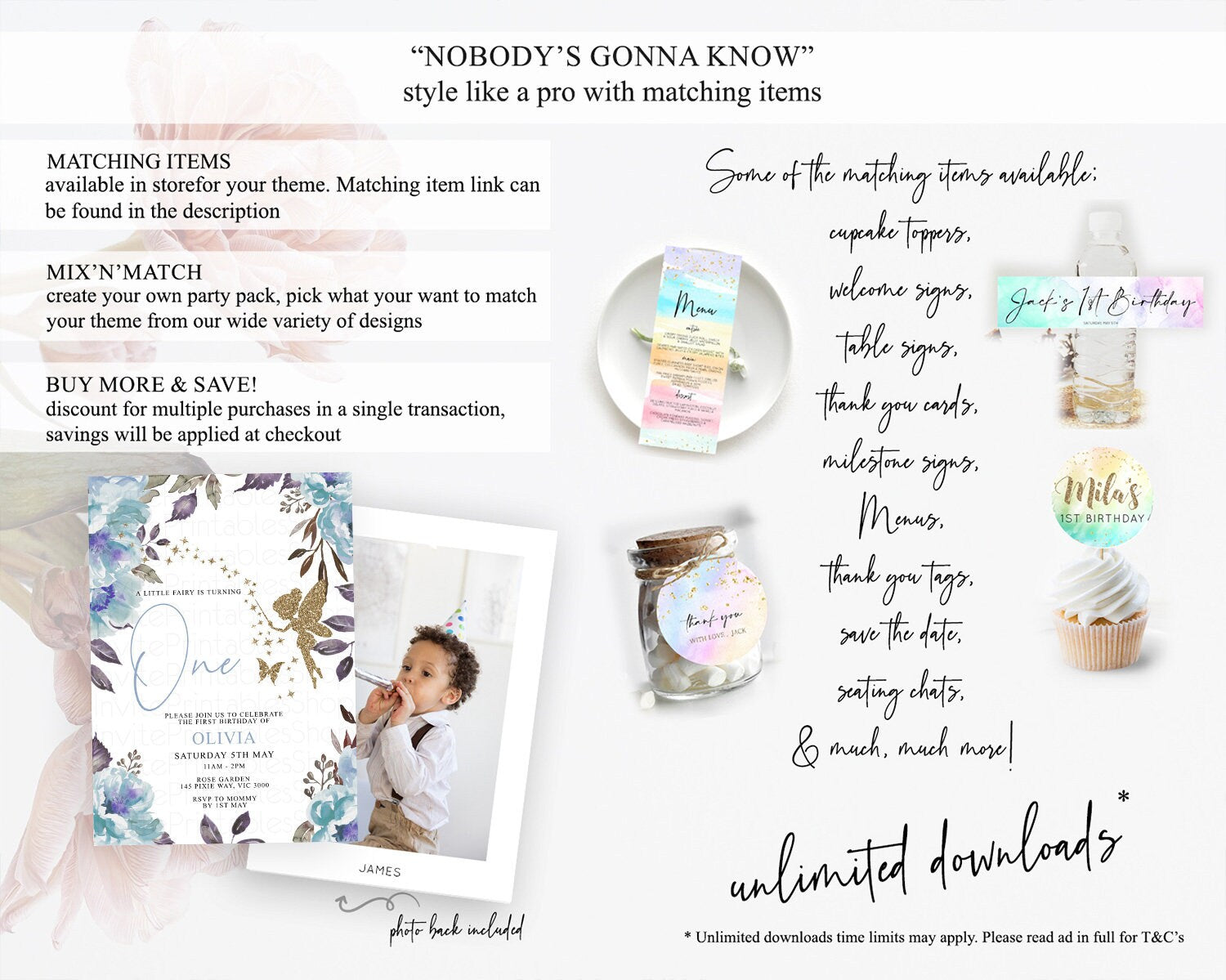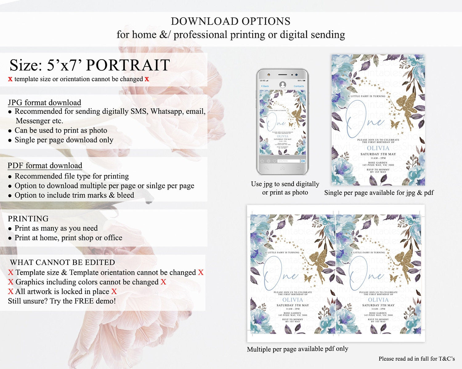 Fairy Birthday Invitation Fairy Invites Fairy Tea Party Fairy Garden Birthday Secret Garden Enchanted Garden Pastel Floral Butterfly D10728