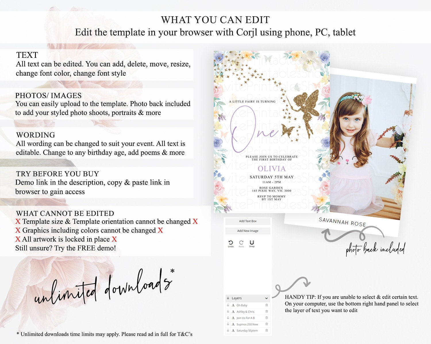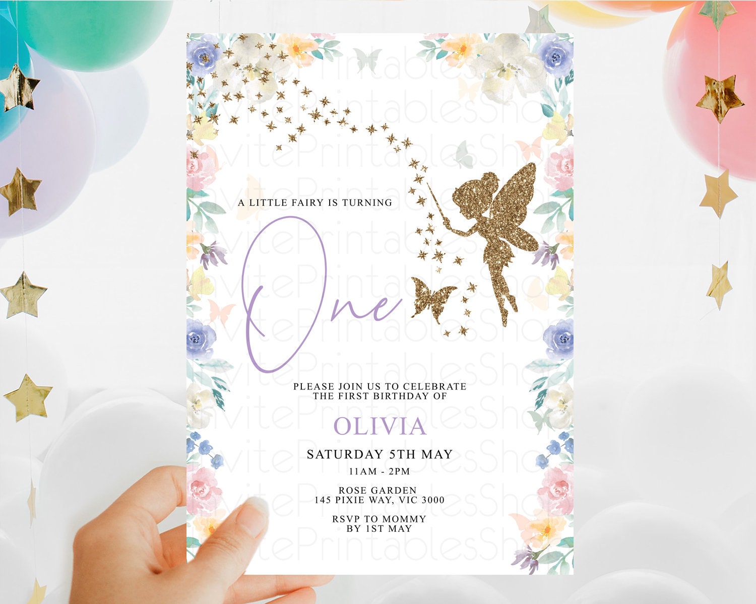 Fairy Birthday Invitation Fairy Invites Fairy Tea Party Fairy Garden Birthday Secret Garden Enchanted Garden Pastel Floral Butterfly D10761