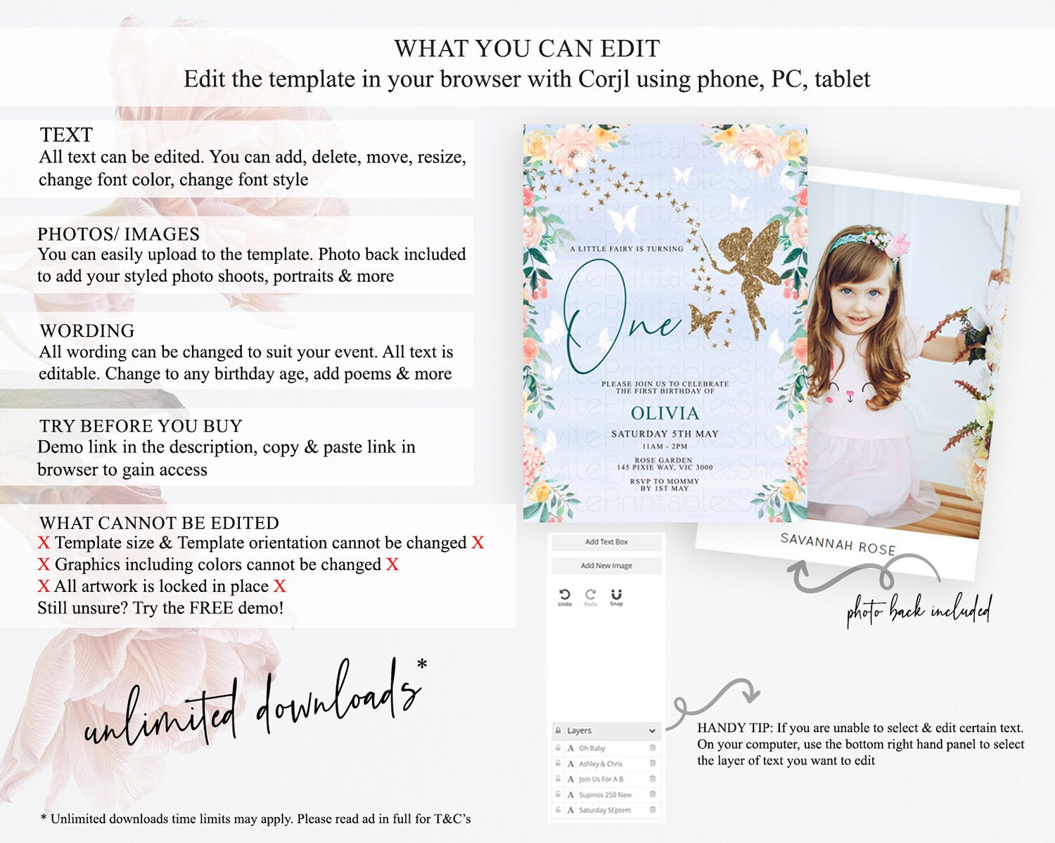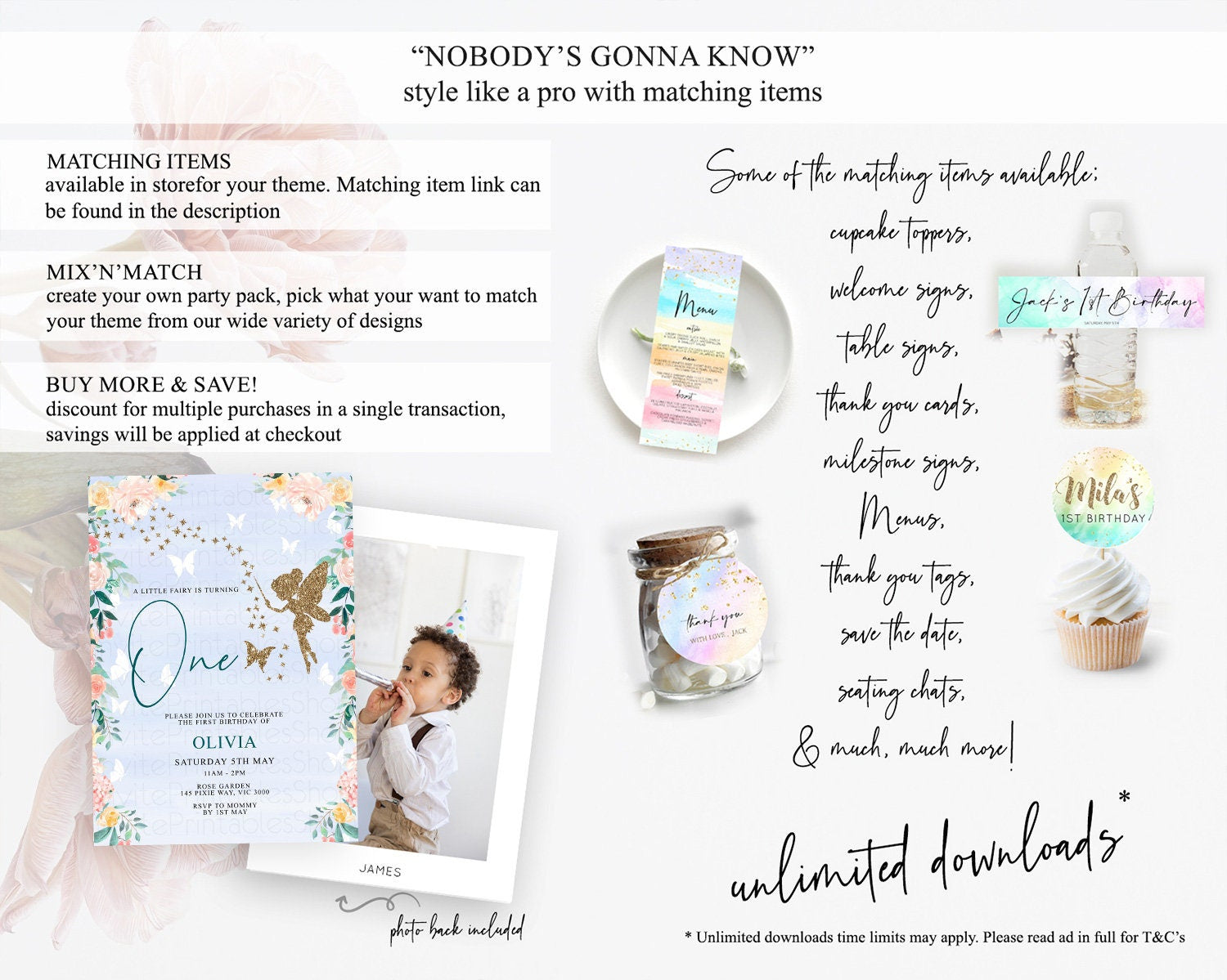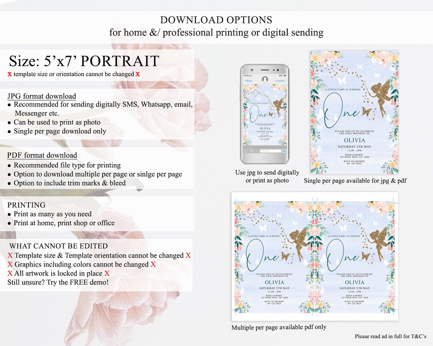 Fairy Birthday Invitation Fairy Invites Fairy Tea Party Fairy Garden Birthday Secret Garden Enchanted Garden Pastel Floral Butterfly D10794
