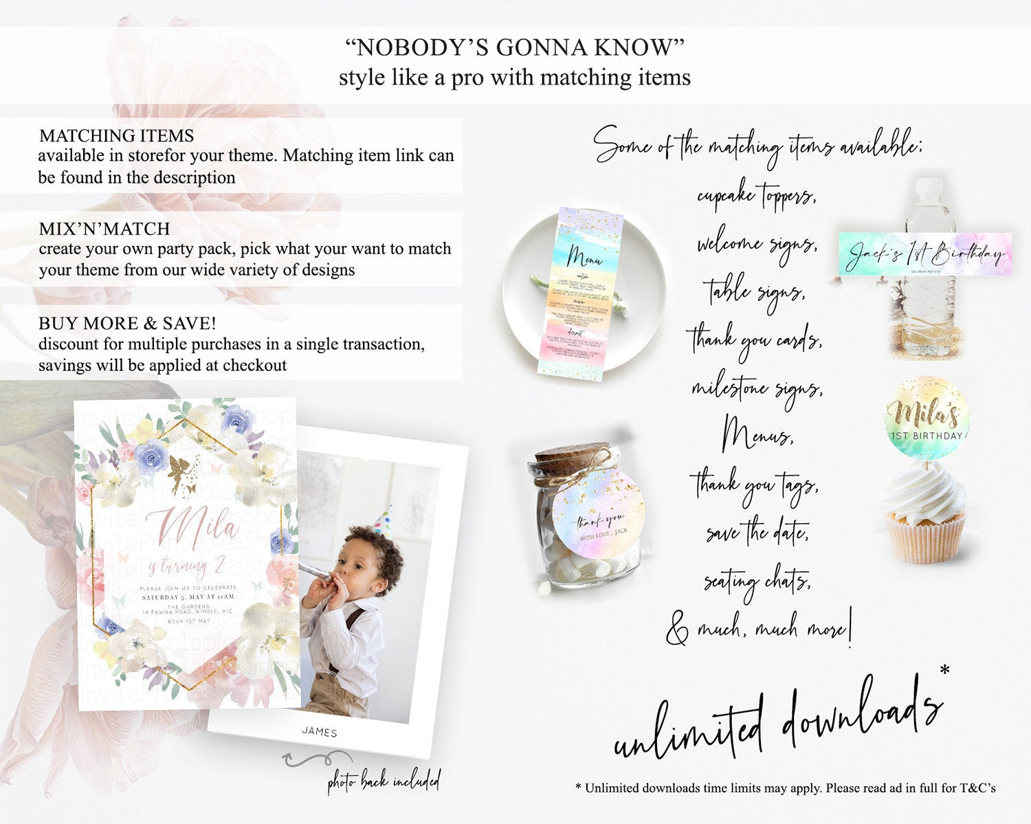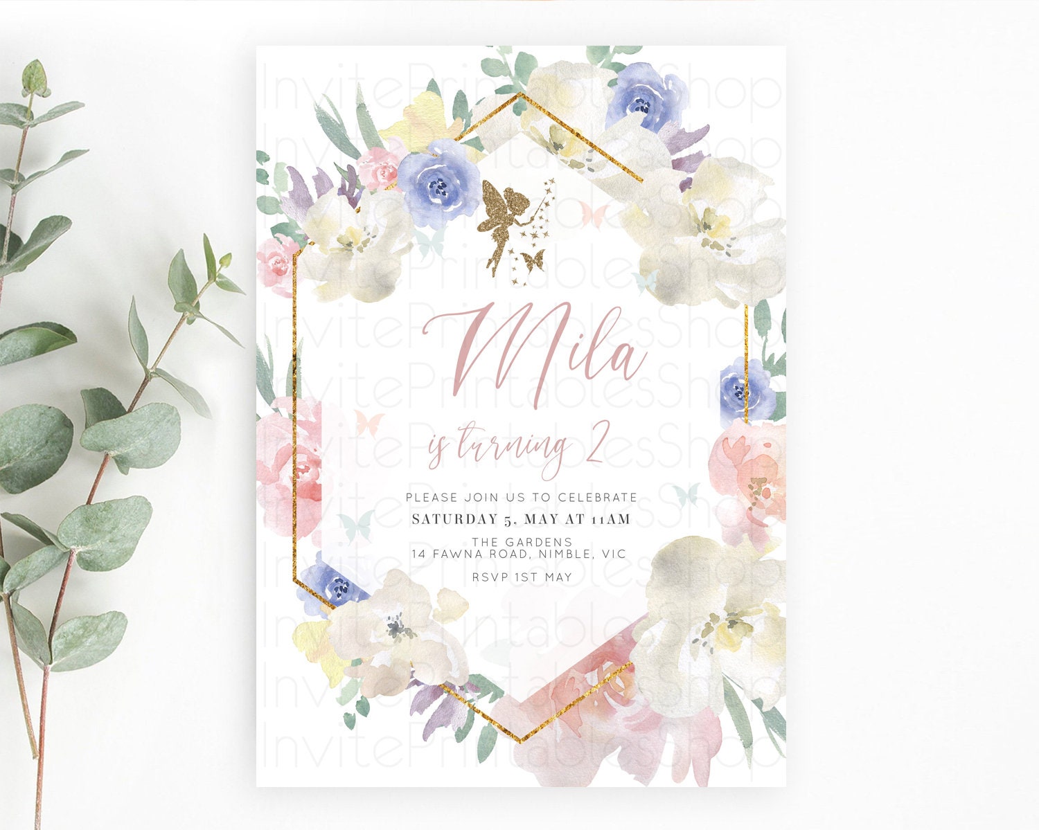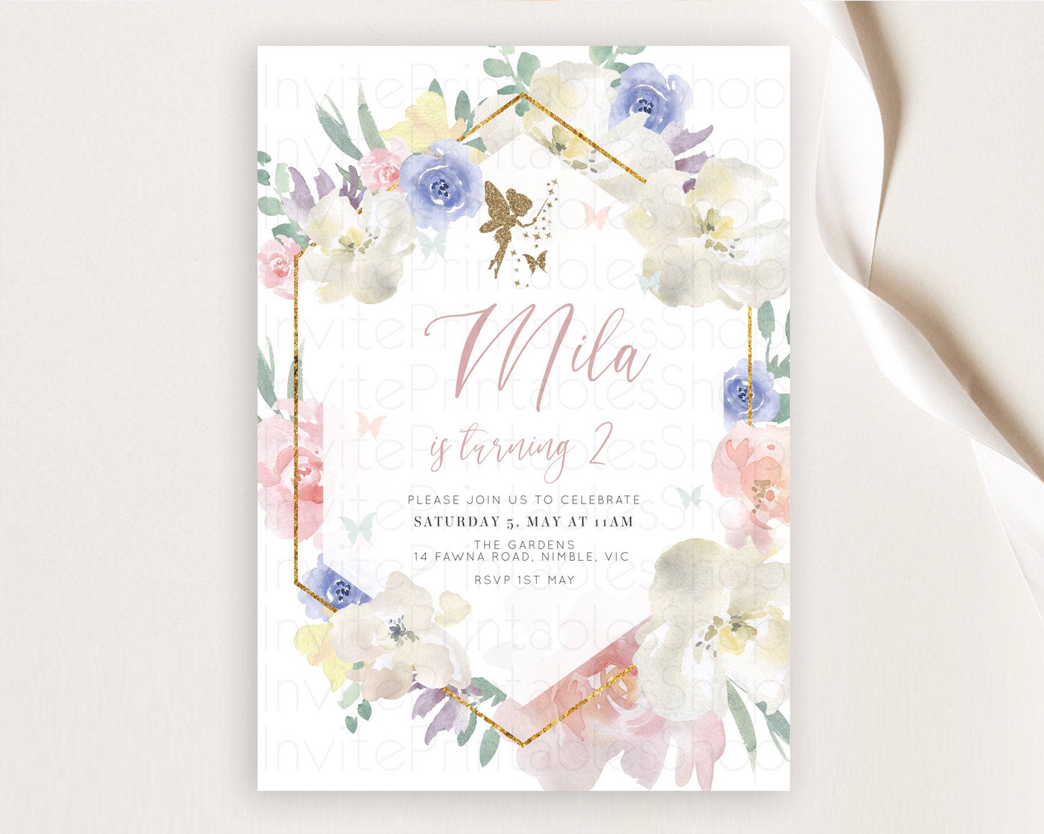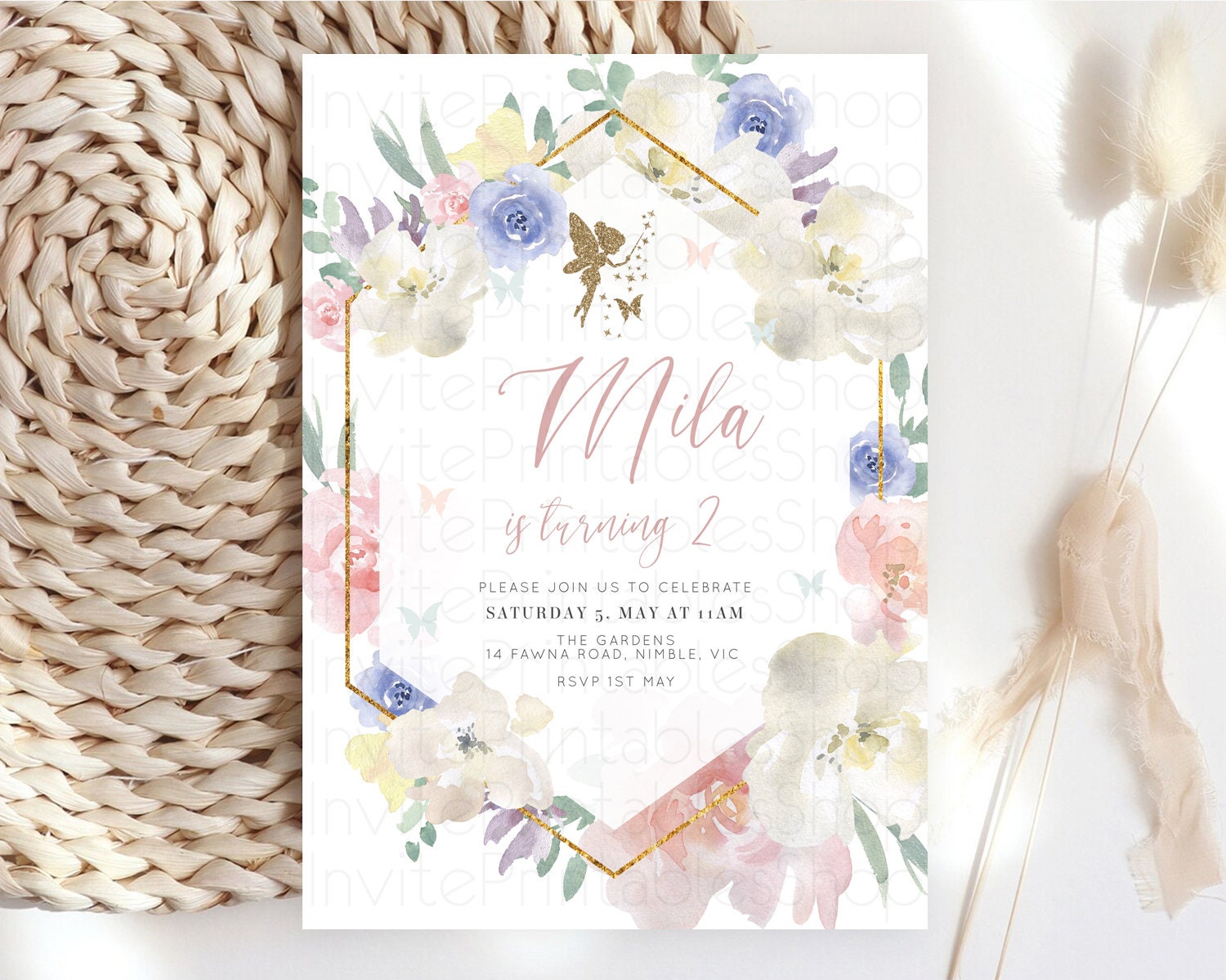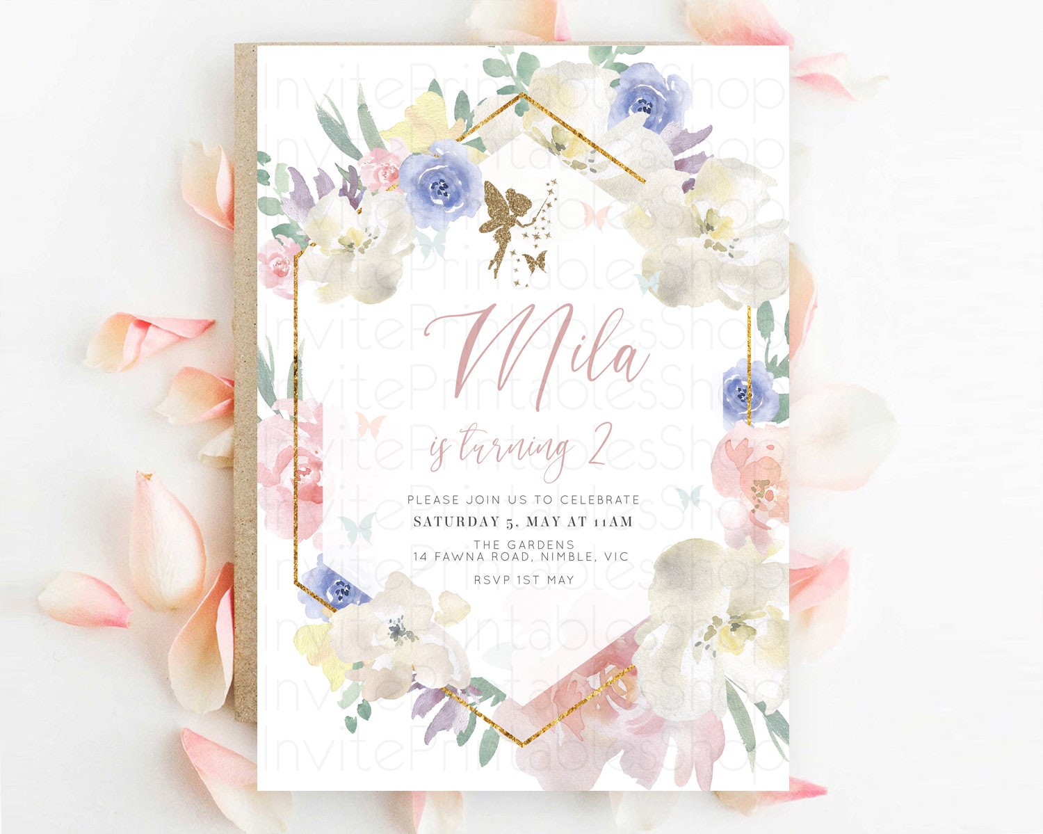 Fairy Birthday Invitation Fairy Invites Fairy Tea Party Fairy Garden Birthday Secret Garden Enchanted Garden Pastel Floral Butterfly D10829