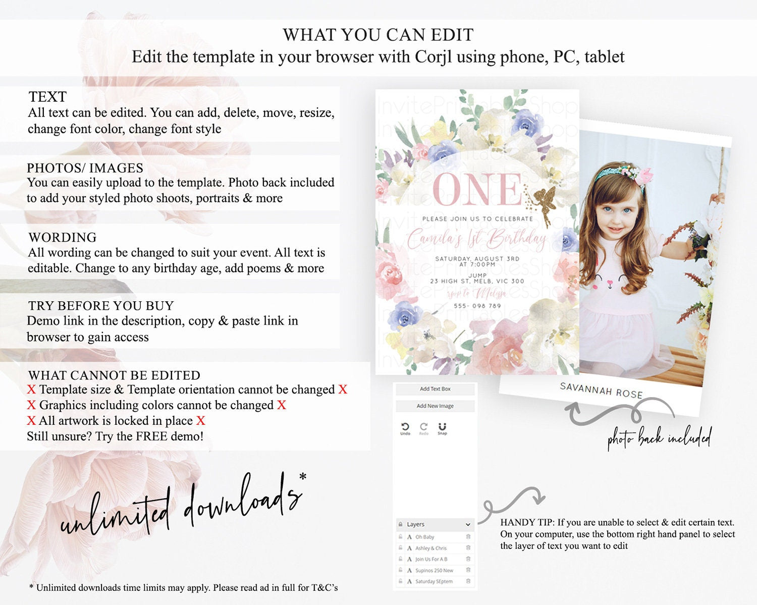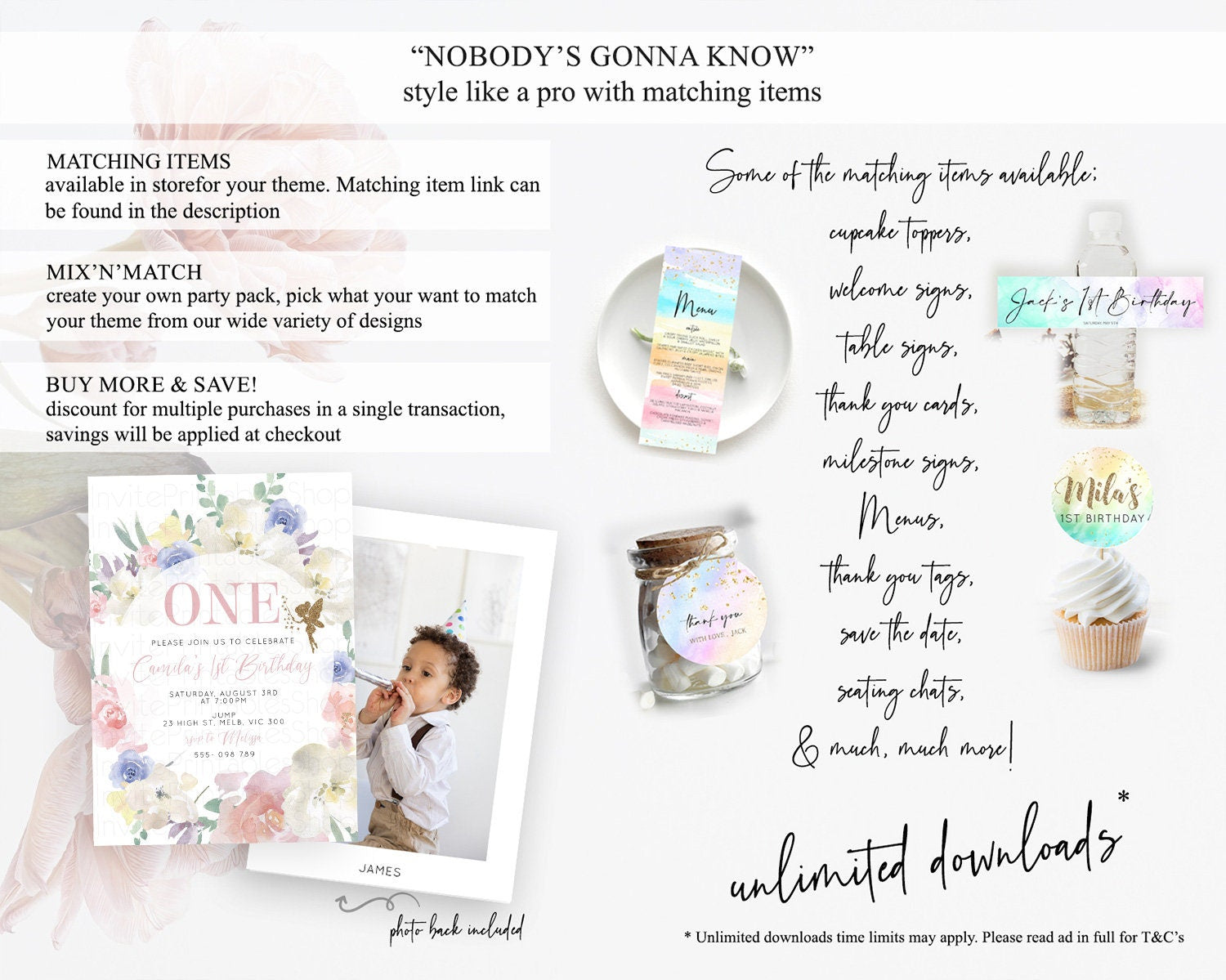 Fairy Birthday Invitation Fairy Invites Fairy Tea Party Fairy Garden Birthday Secret Garden Enchanted Garden Pastel Floral Butterfly D10852