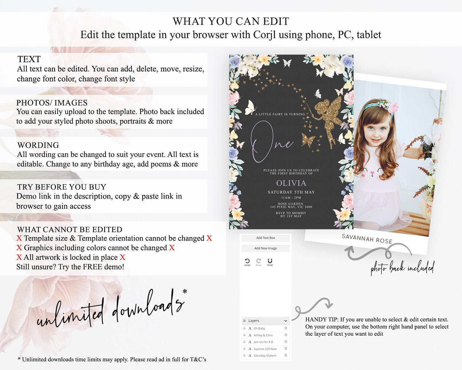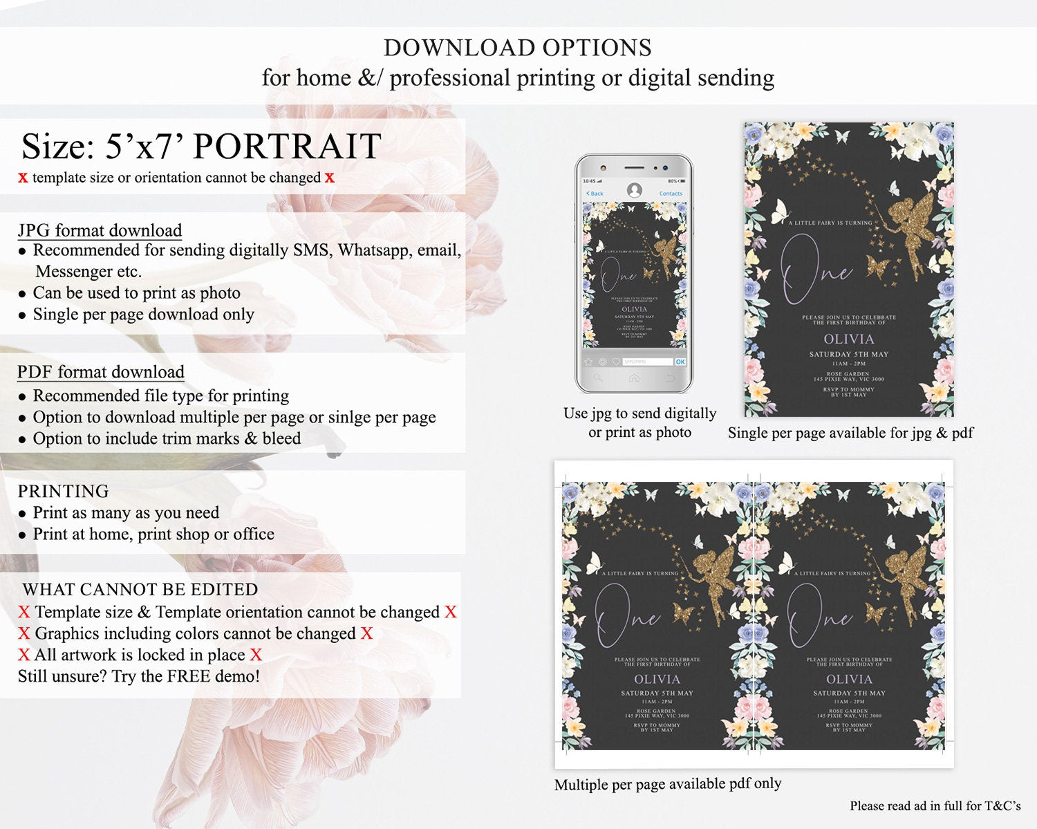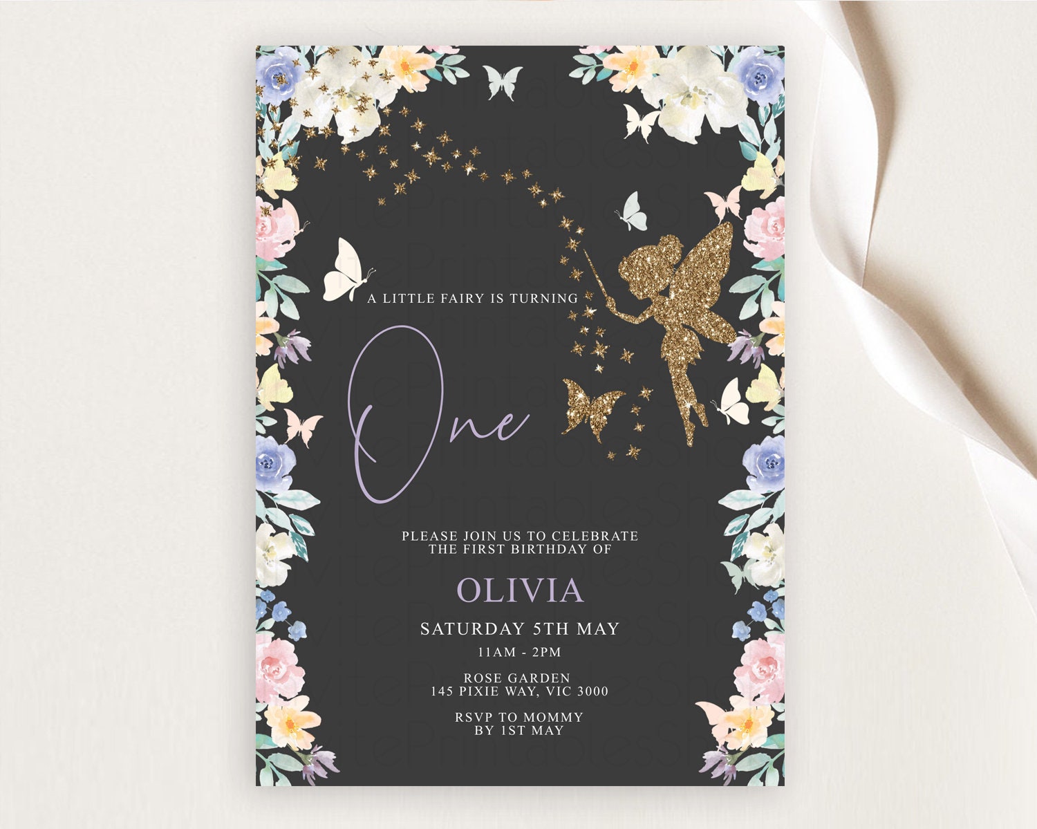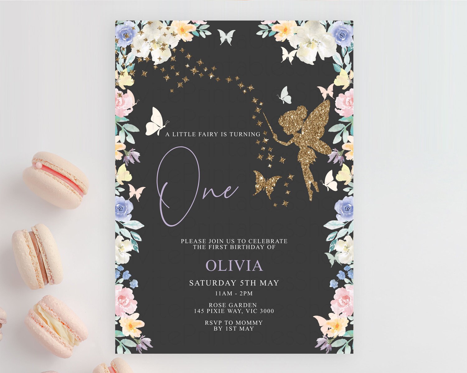 Fairy Birthday Invitation Fairy Invites Fairy Tea Party Fairy Garden Birthday Secret Garden Enchanted Garden Pastel Floral Butterfly D10881