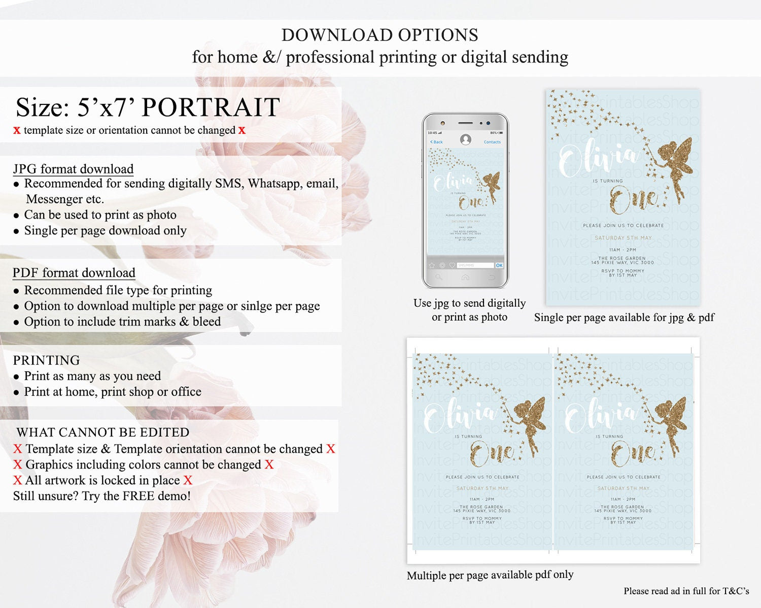 Fairy Birthday Invitation Fairy Invites Fairy Tea Party Fairy Garden Birthday Secret Garden Enchanted Garden Pastel Floral Butterfly D10907