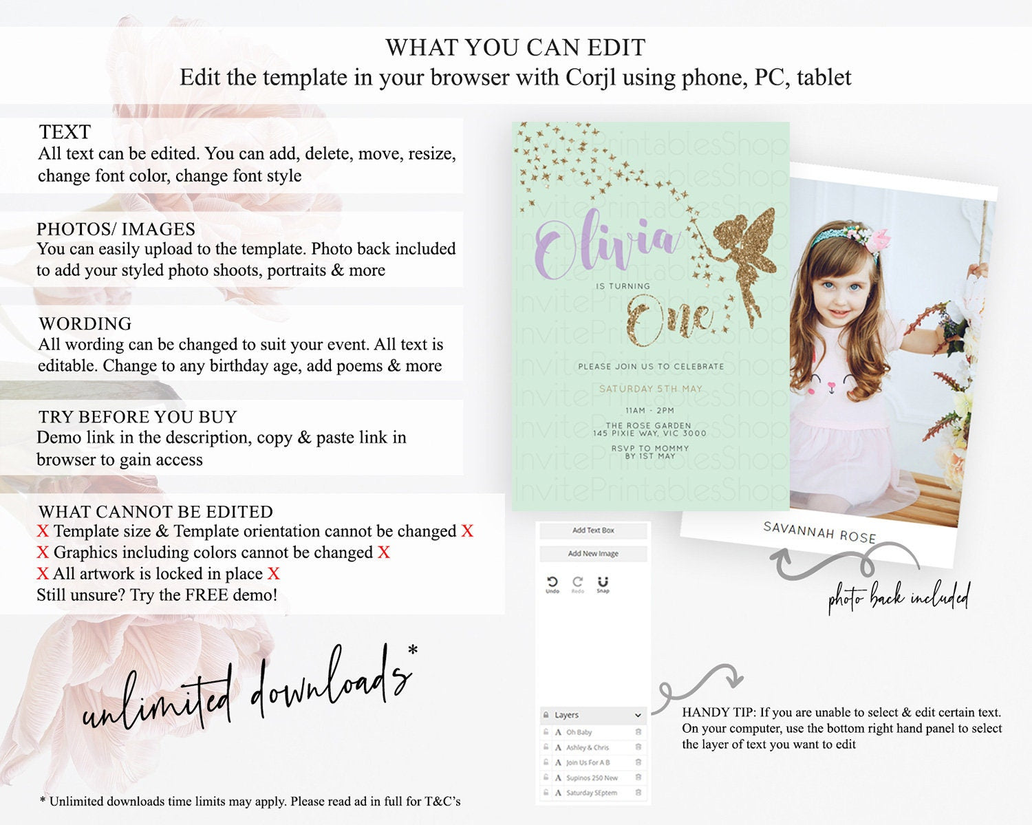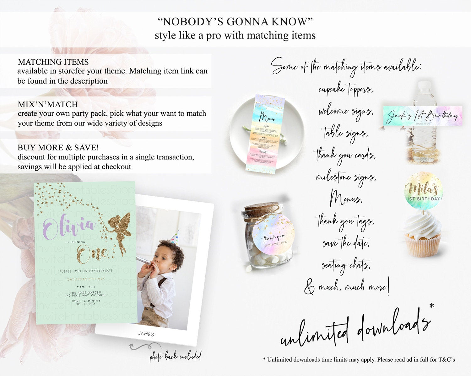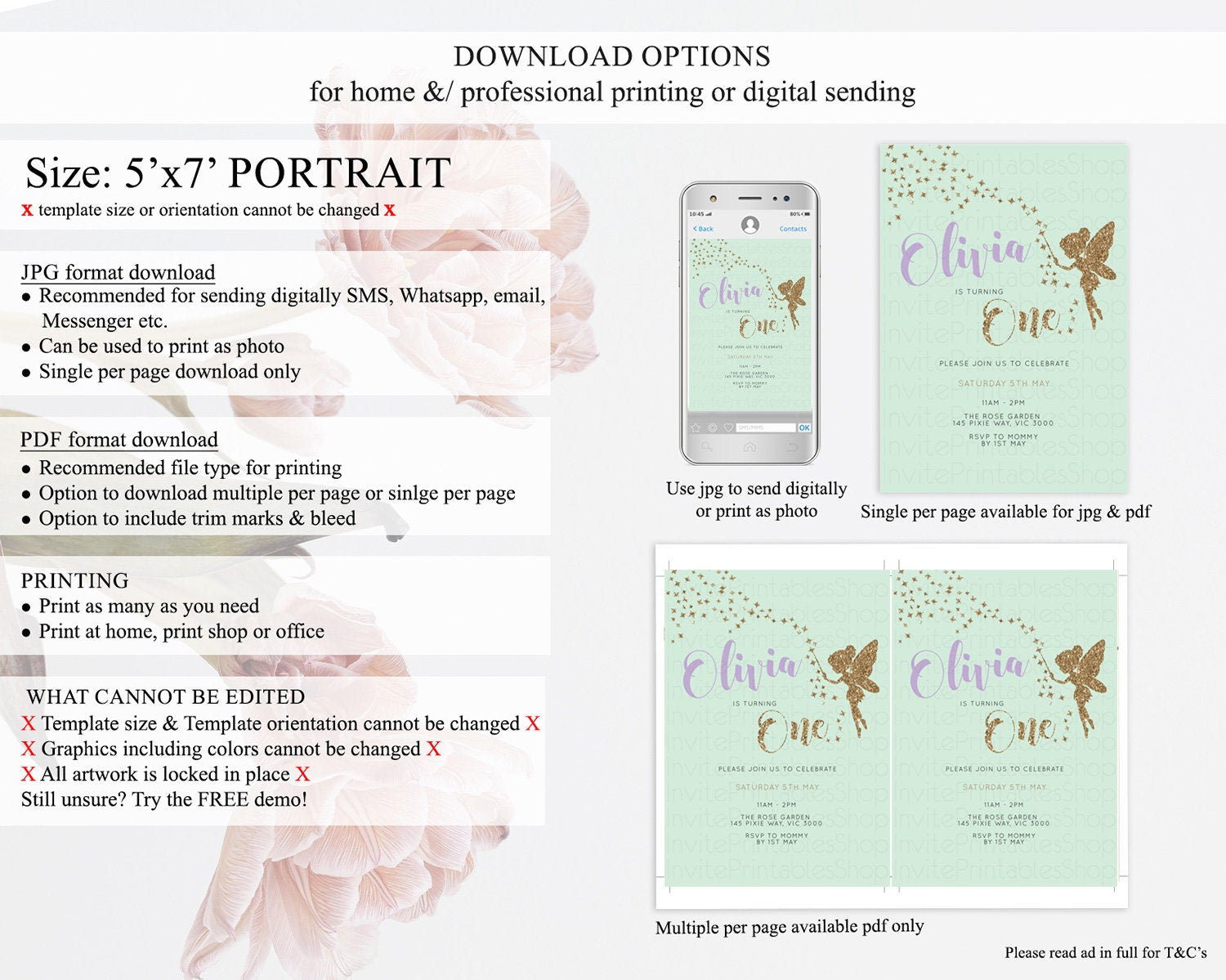 Fairy Birthday Invitation Fairy Invites Fairy Tea Party Fairy Garden Birthday Secret Garden Enchanted Garden Pastel Floral Butterfly D10908