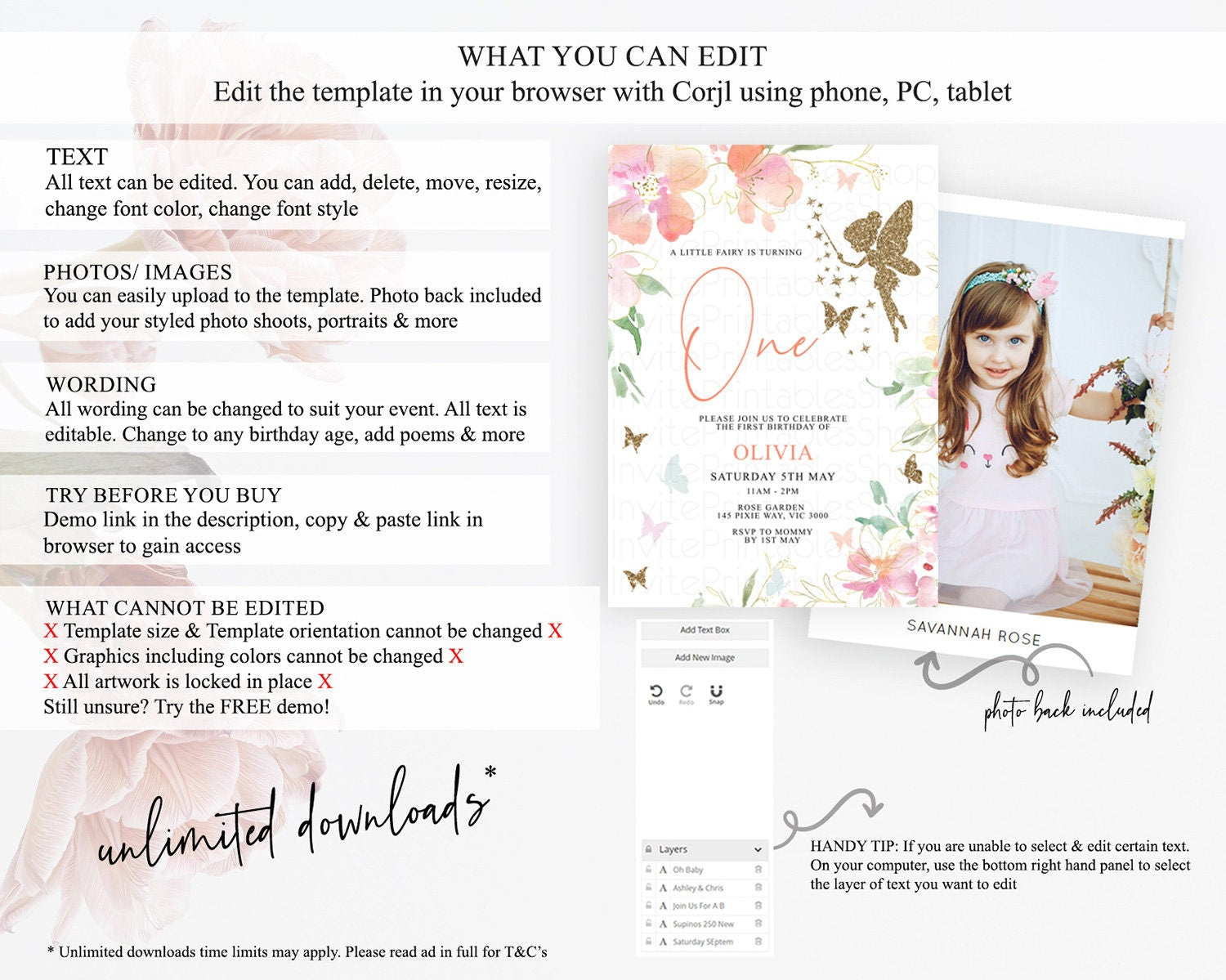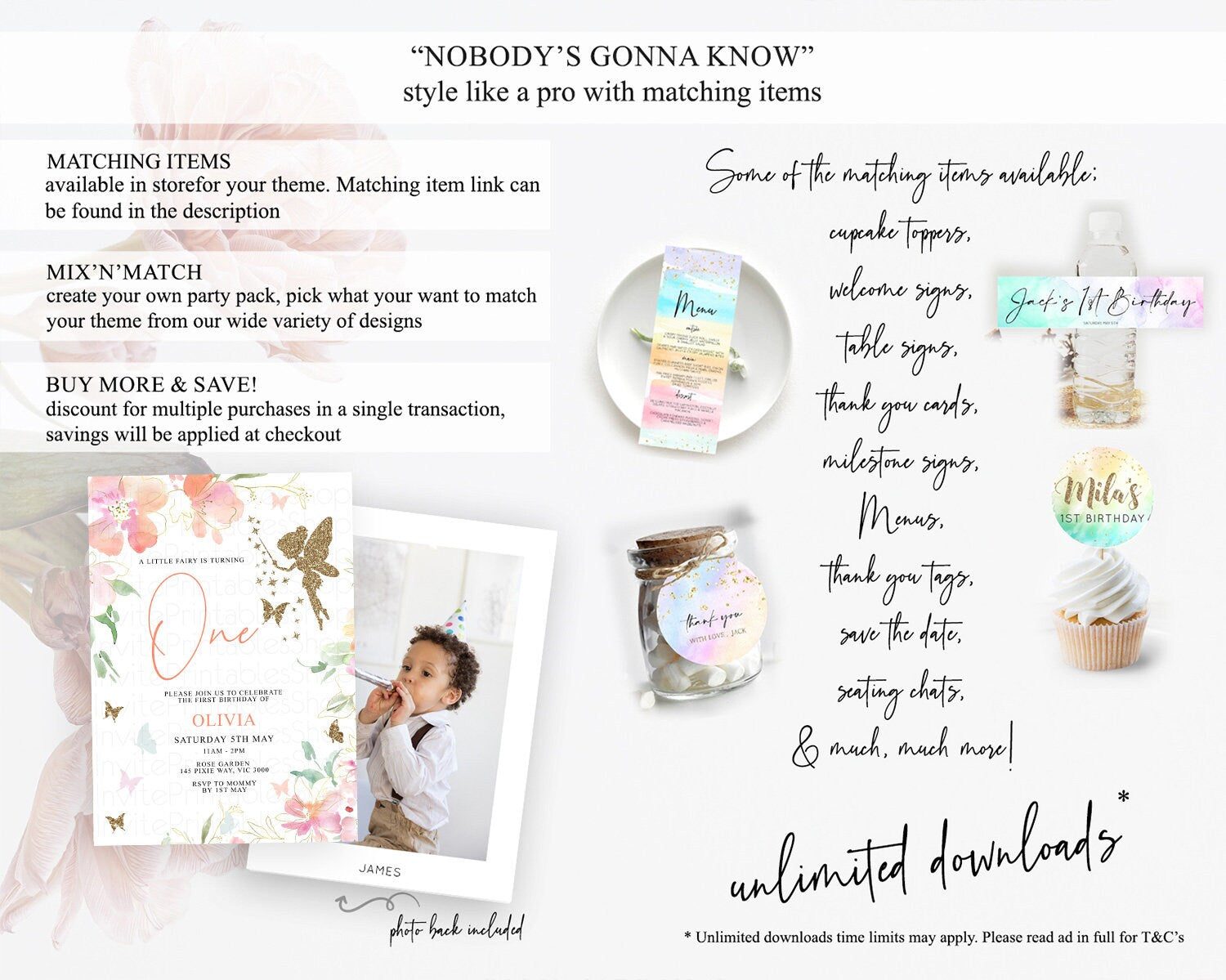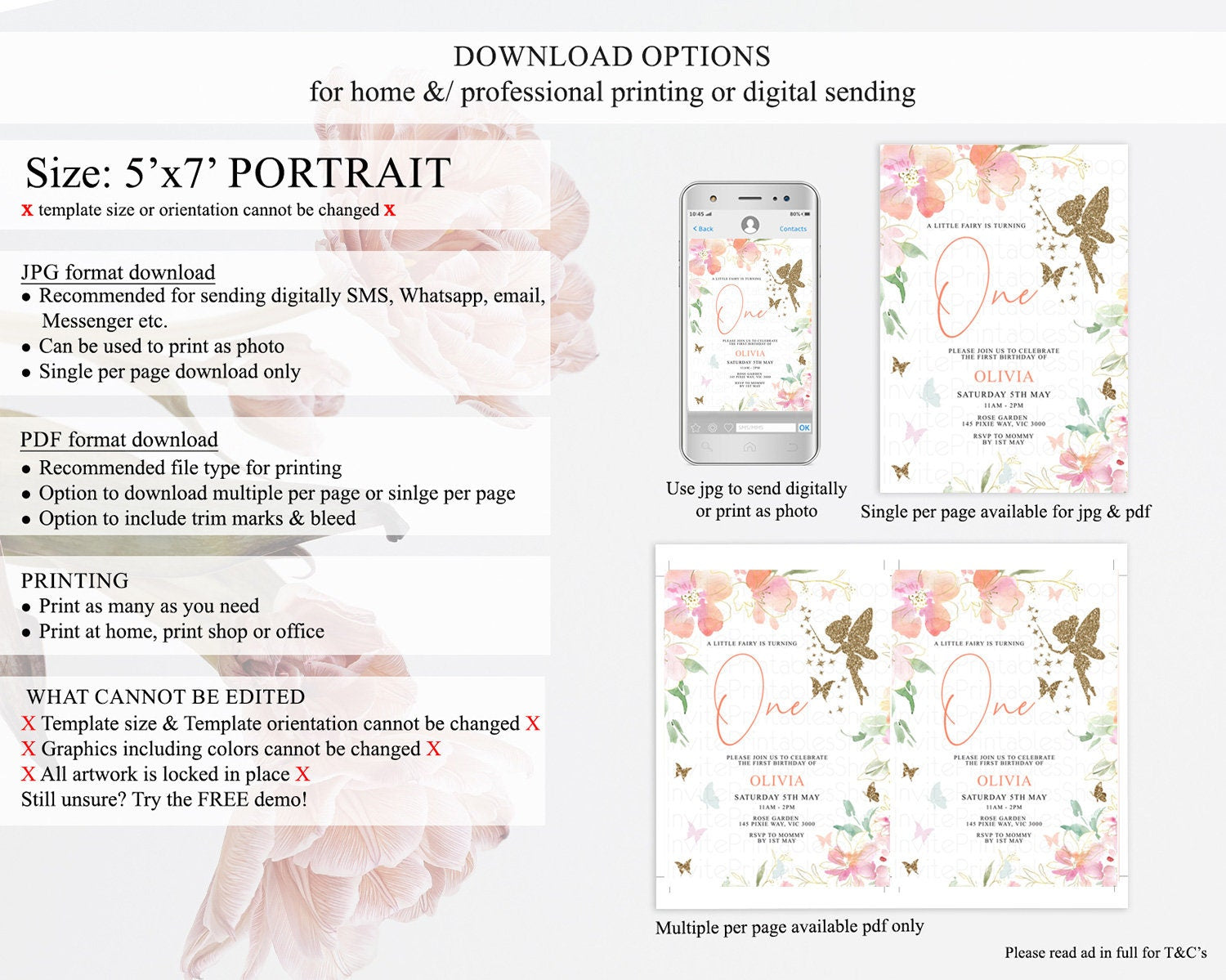 Fairy Birthday Invitation Fairy Invites Fairy Tea Party Fairy Garden Birthday Secret Garden Enchanted Garden Pastel Floral Butterfly D10934