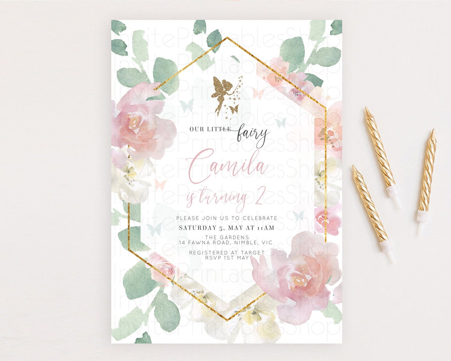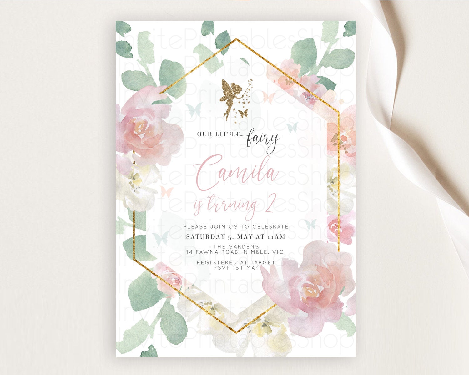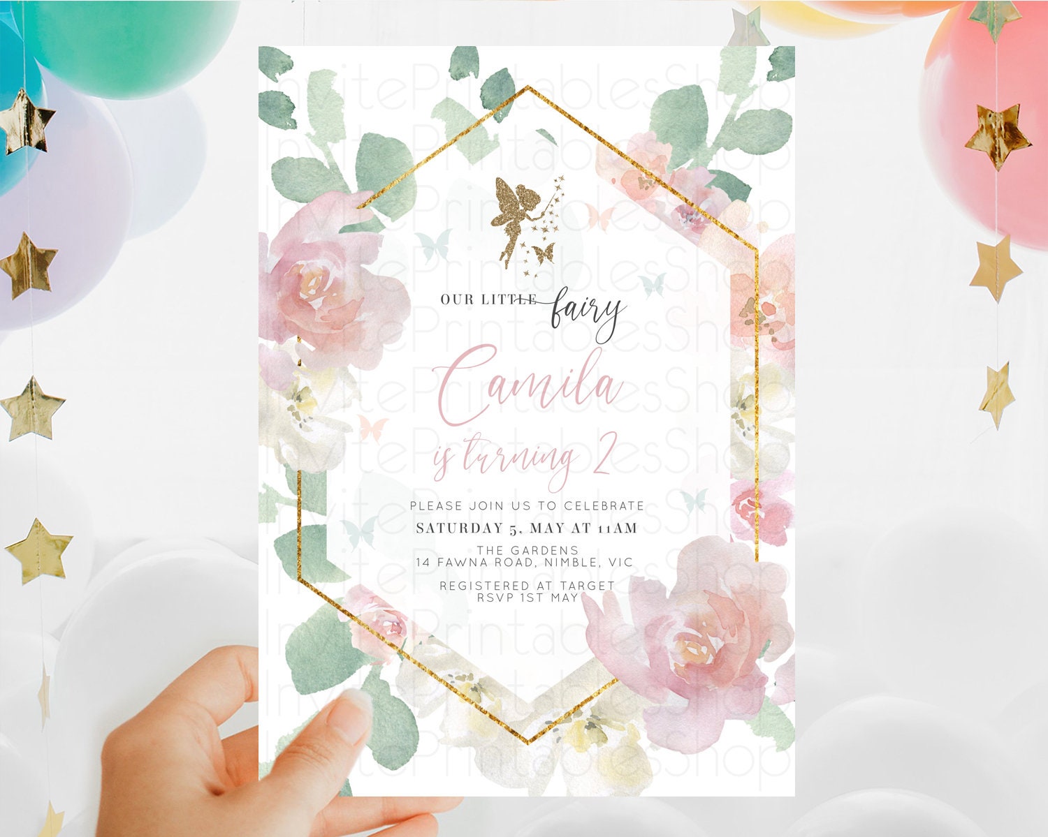 Fairy Birthday Invitation Fairy Invites Fairy Tea Party Fairy Garden Birthday Secret Garden Enchanted Garden Pastel Floral Butterfly D10965
