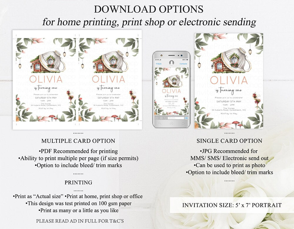 Fairy Birthday Invitation, Floral Garden Fairy Invite, Garden Tea Party, Whimsical Pixie Magic, Forest Flowers, Fairy Cottage Custom 289