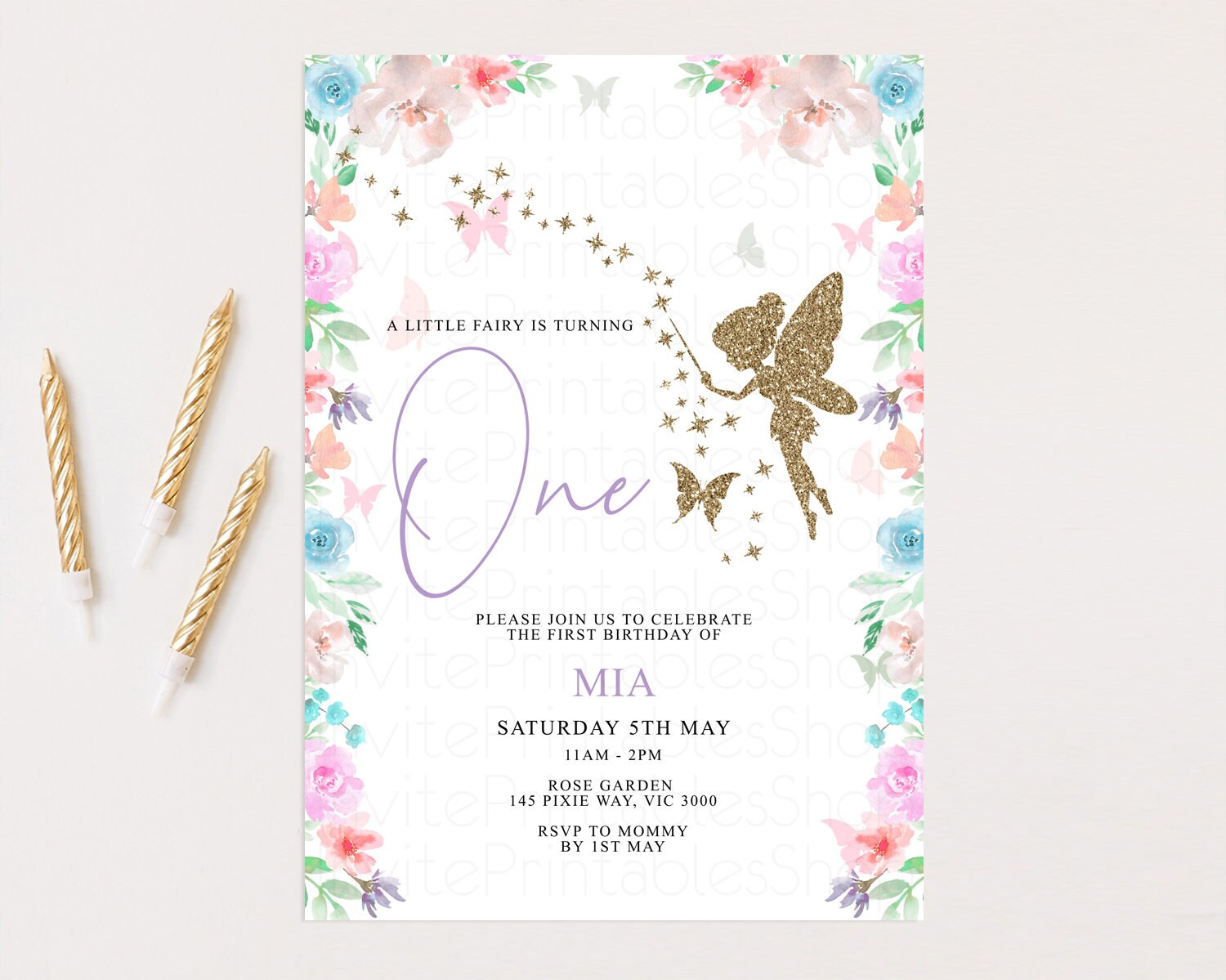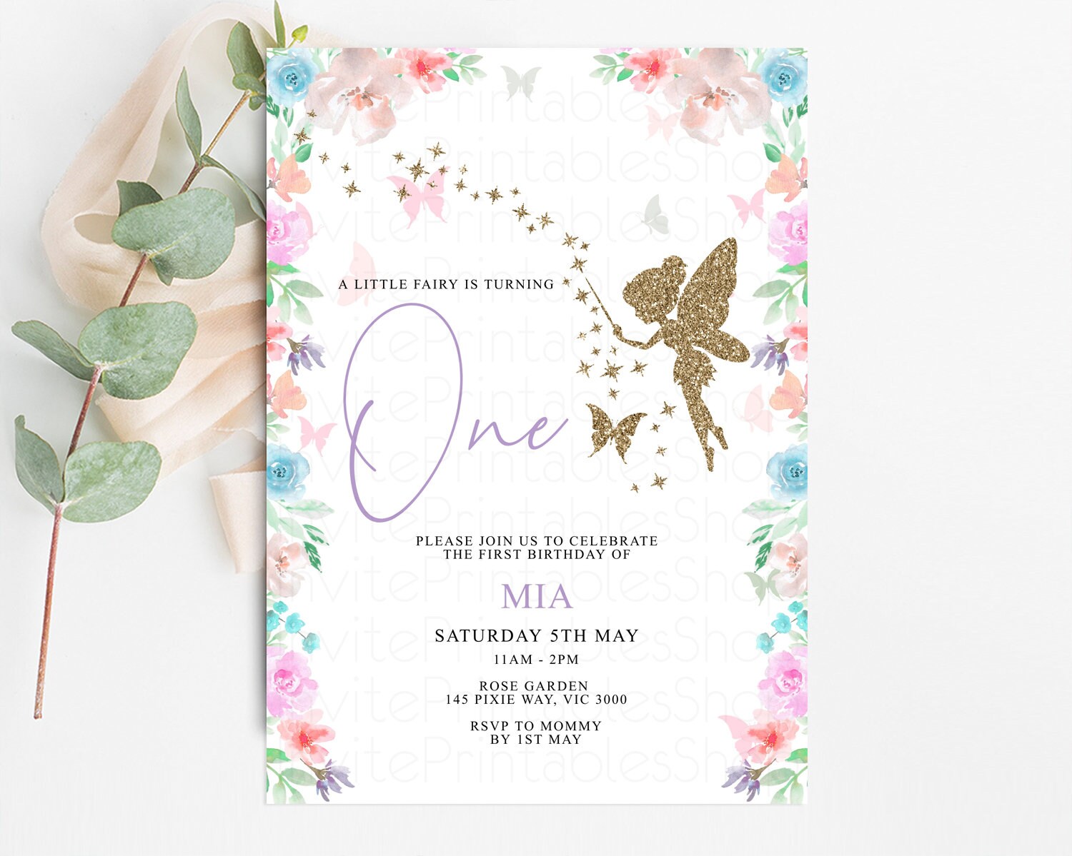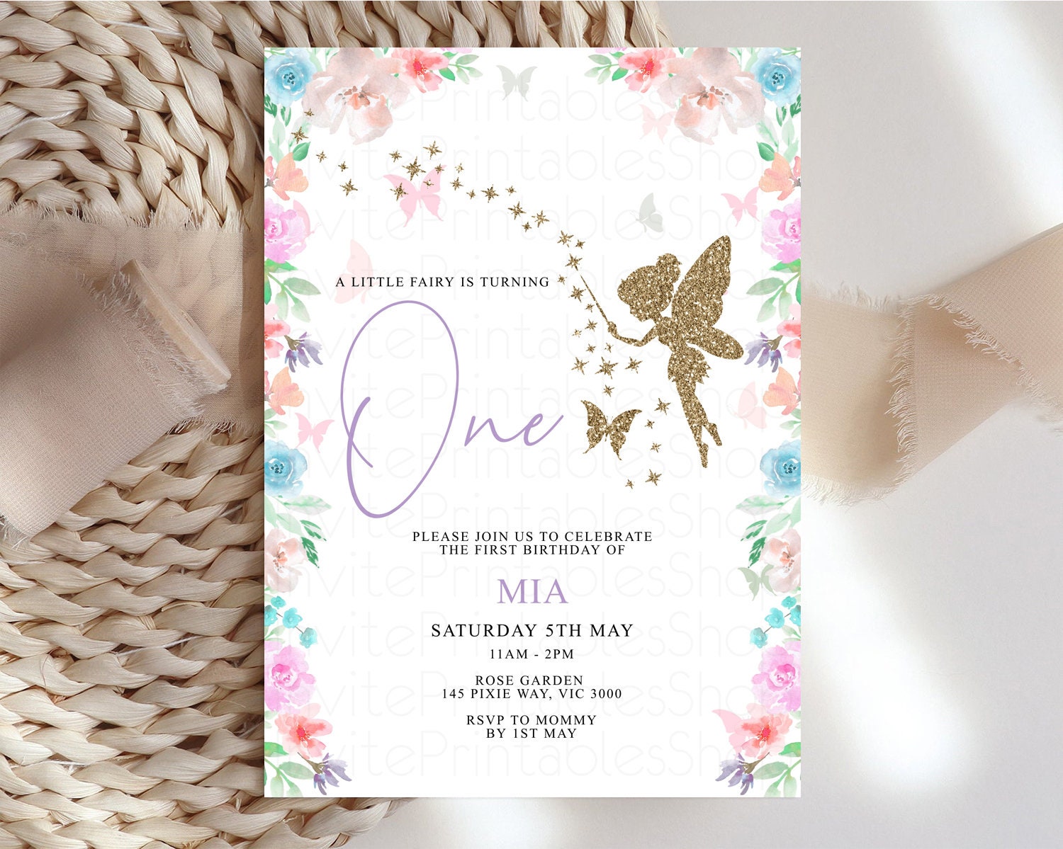 Fairy Birthday Invitation Glitter Fairy Invite Enchanted Garden Fairy Invite Pastel Floral Invite Butterfly Garden Invite 1st 2nd P113