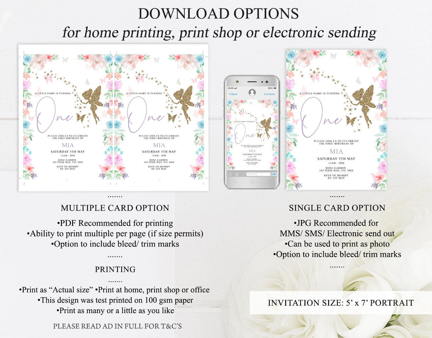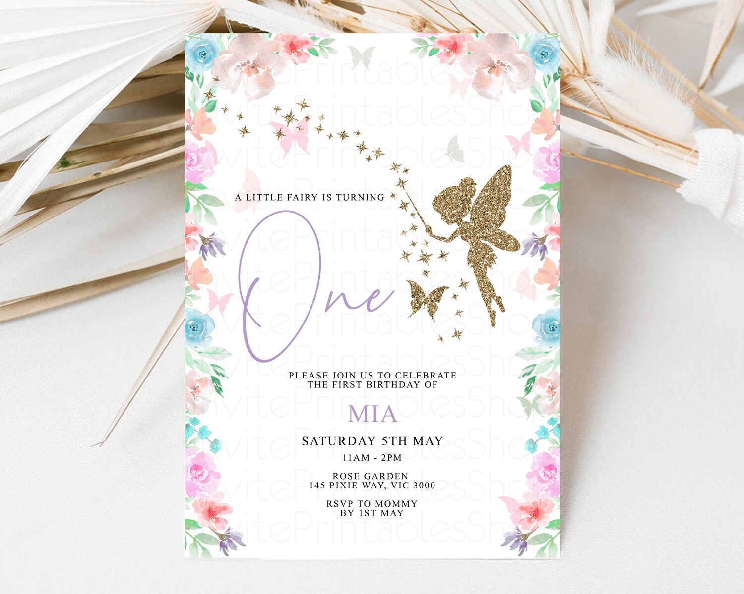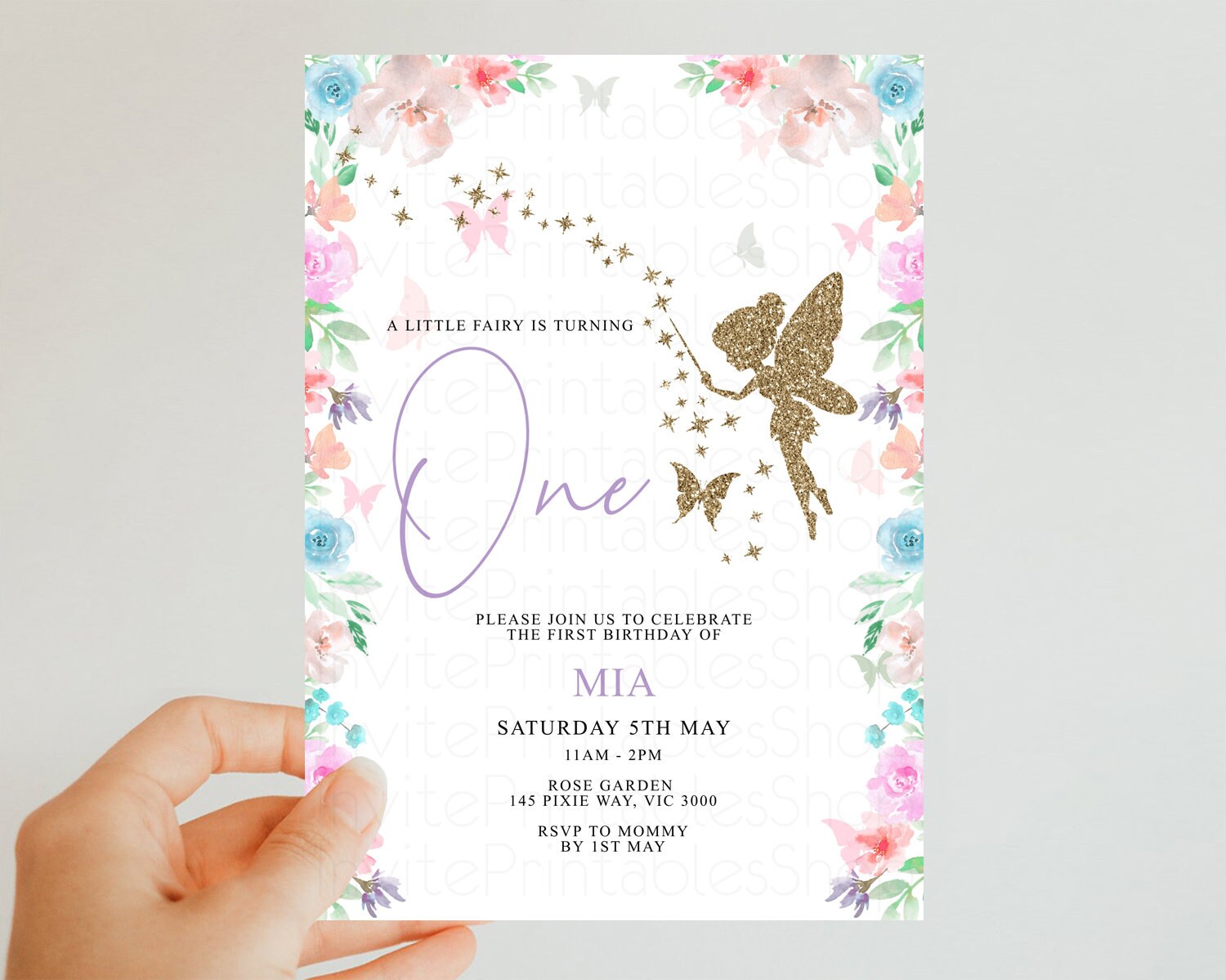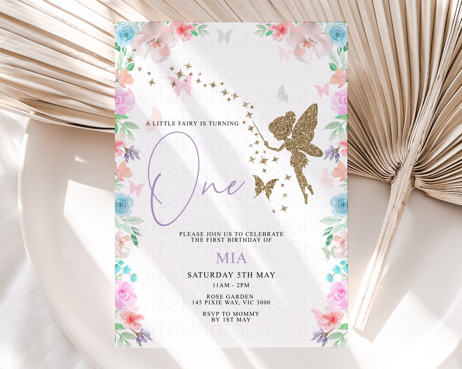 Fairy Birthday Invitation Glitter Fairy Invite Enchanted Garden Fairy Invite Pastel Floral Invite Butterfly Garden Invite 1st 2nd P113