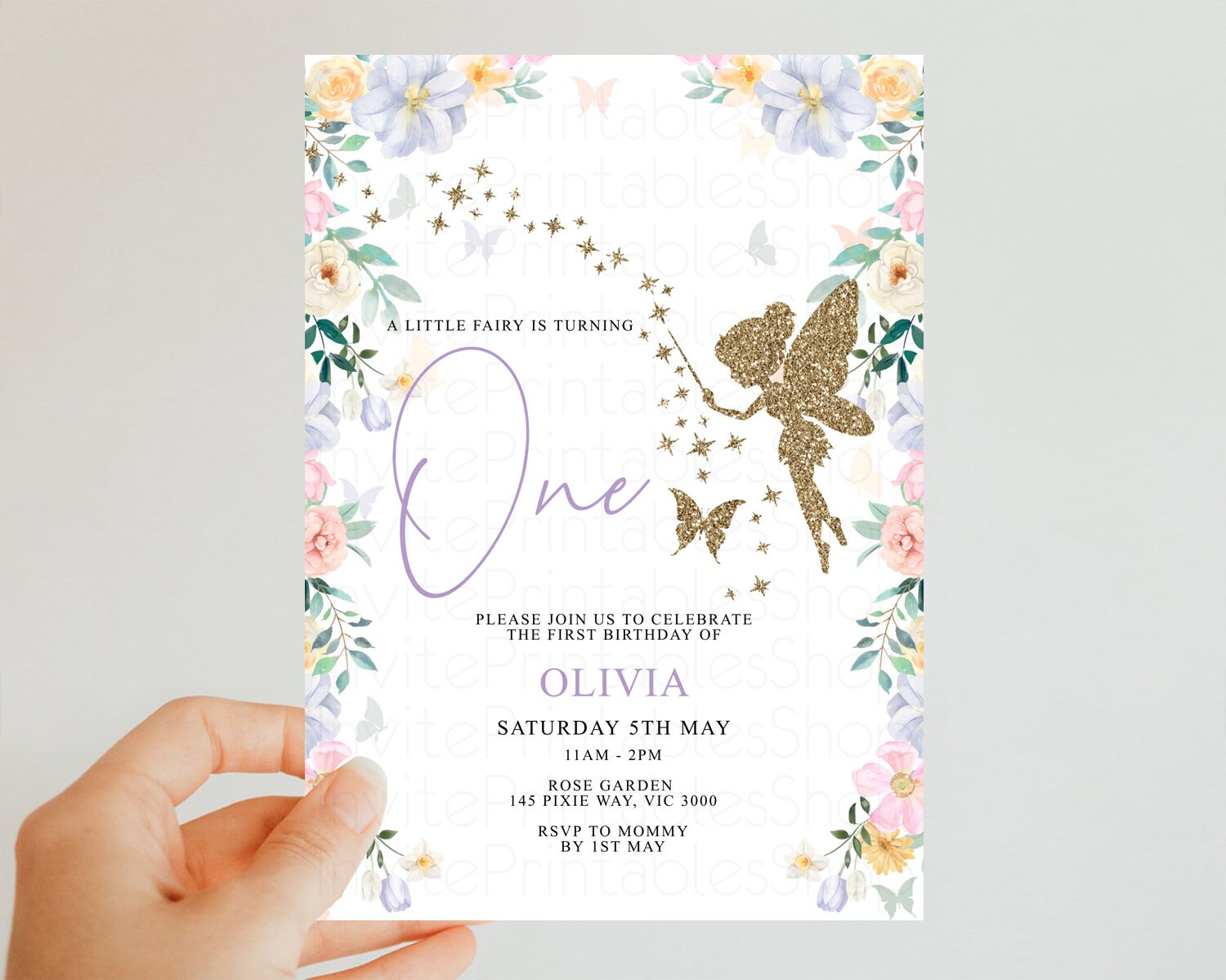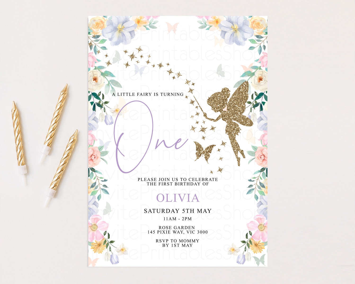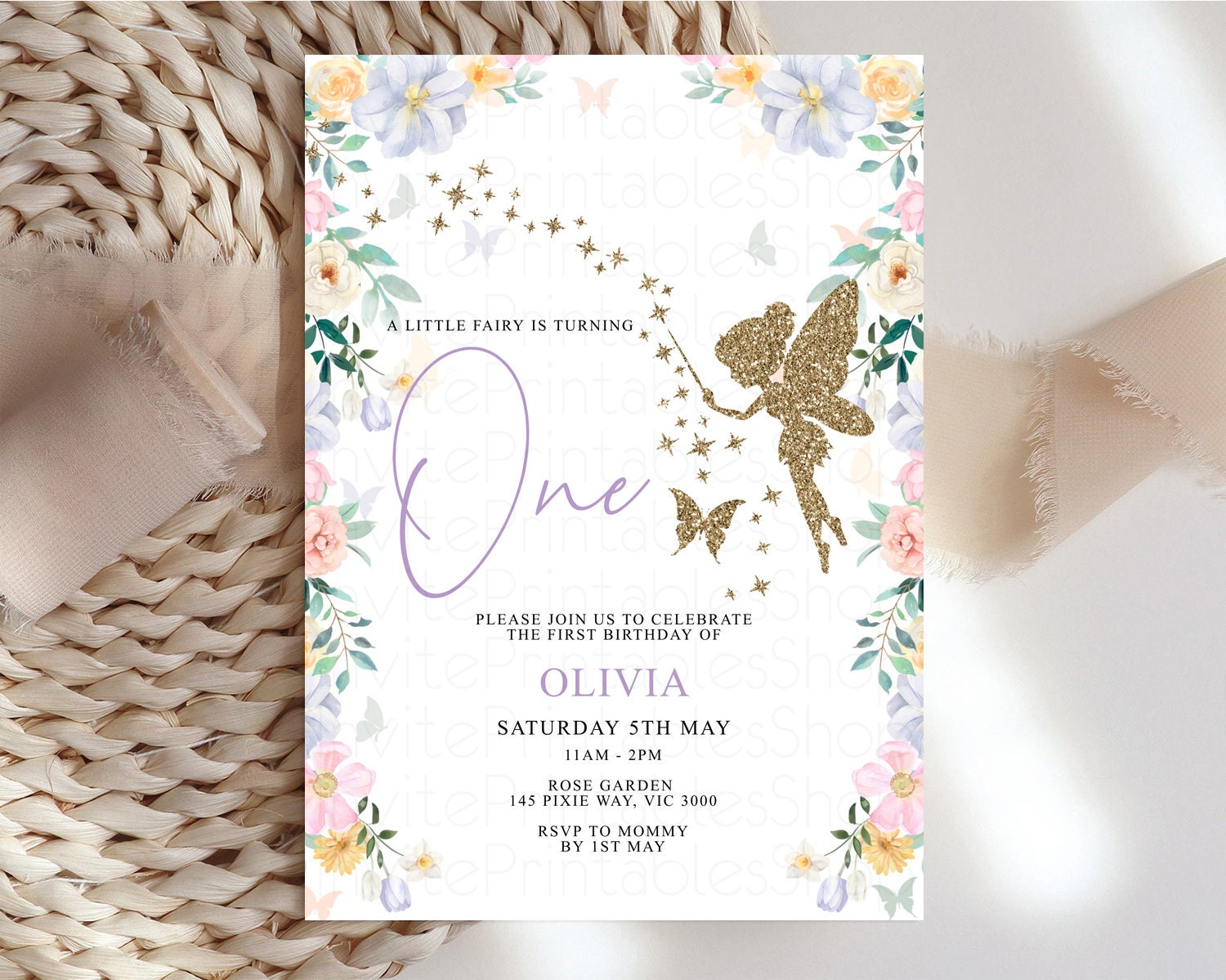 Fairy Birthday Invitation Glitter Fairy Invite Enchanted Garden Tinkerbell Invite Pastel Floral Invite Butterfly Garden Invite 1st 2nd F513