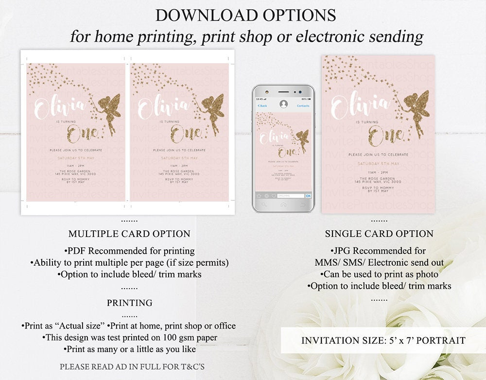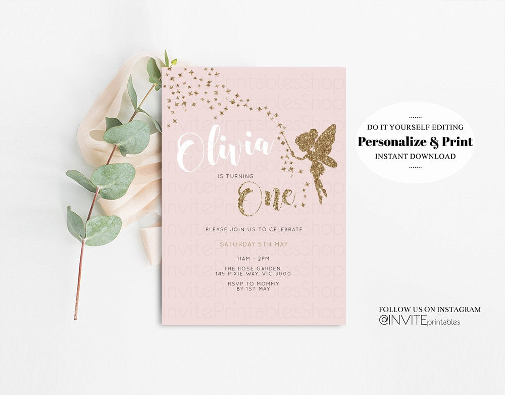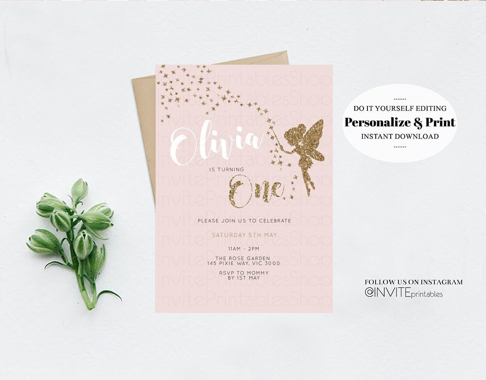 Fairy Birthday Invitation Gold Glitter Invitation Tinker Bell Invites Fairy Invite Gold Glitter Pink, Fairy TinkerBell Pastel Invitation