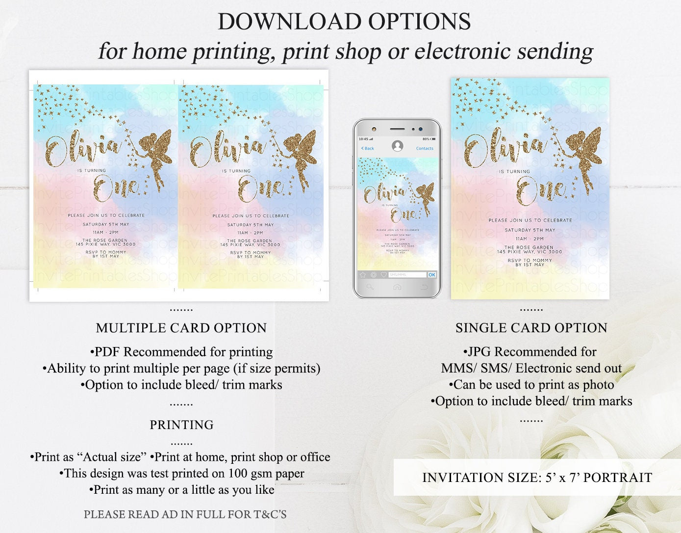 Fairy Birthday Invitation Pastel Rainbow Invitation Rainbow Birthday Invite Tinker Colorful Pastel Watercolor Glitter Sprinkles Ombre