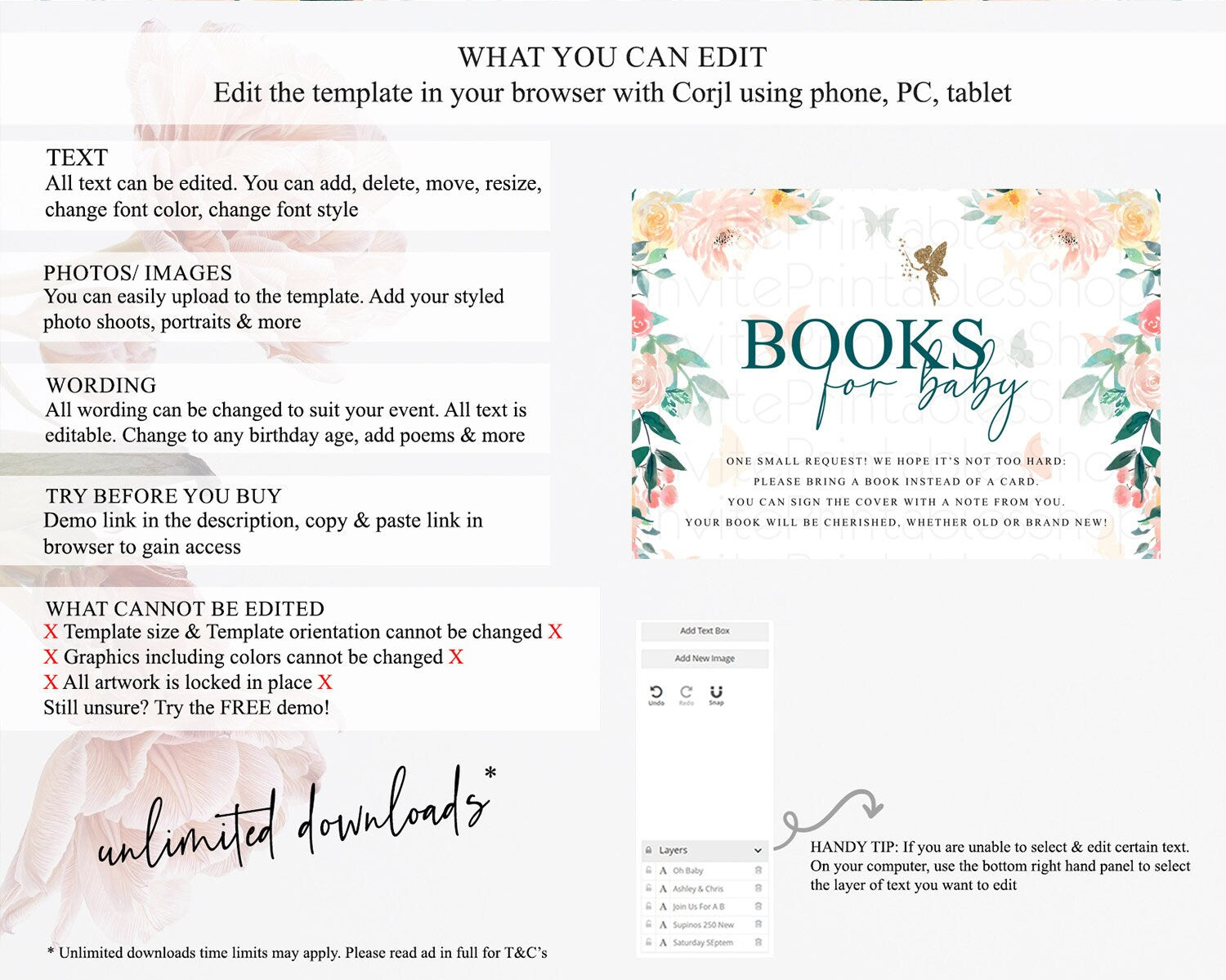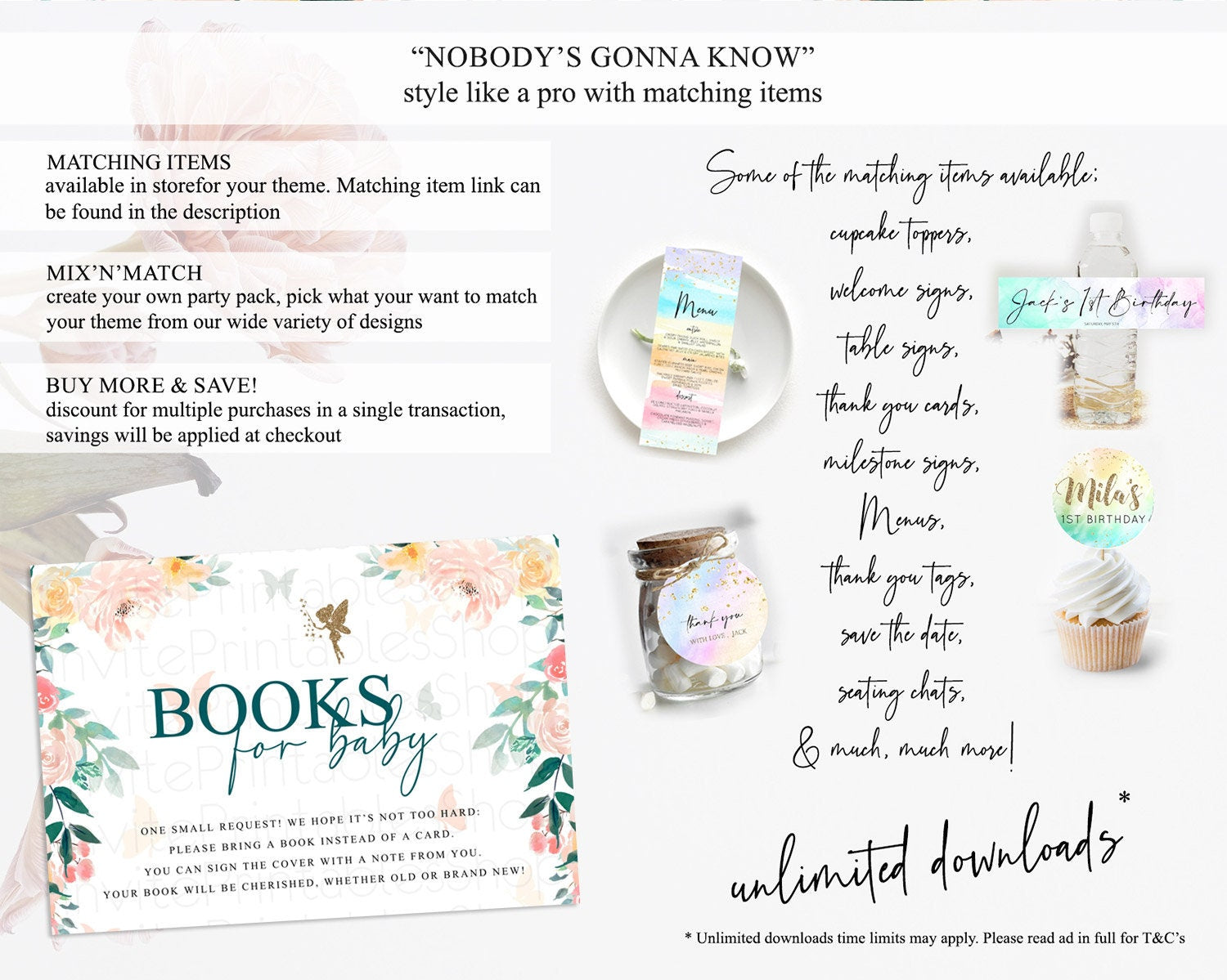 Fairy Books For Baby Card Fairy Book Insert Enchanted Garden Fairy Book Card Pastel Floral Butterfly Cards Secret Garden Book Poem D10239