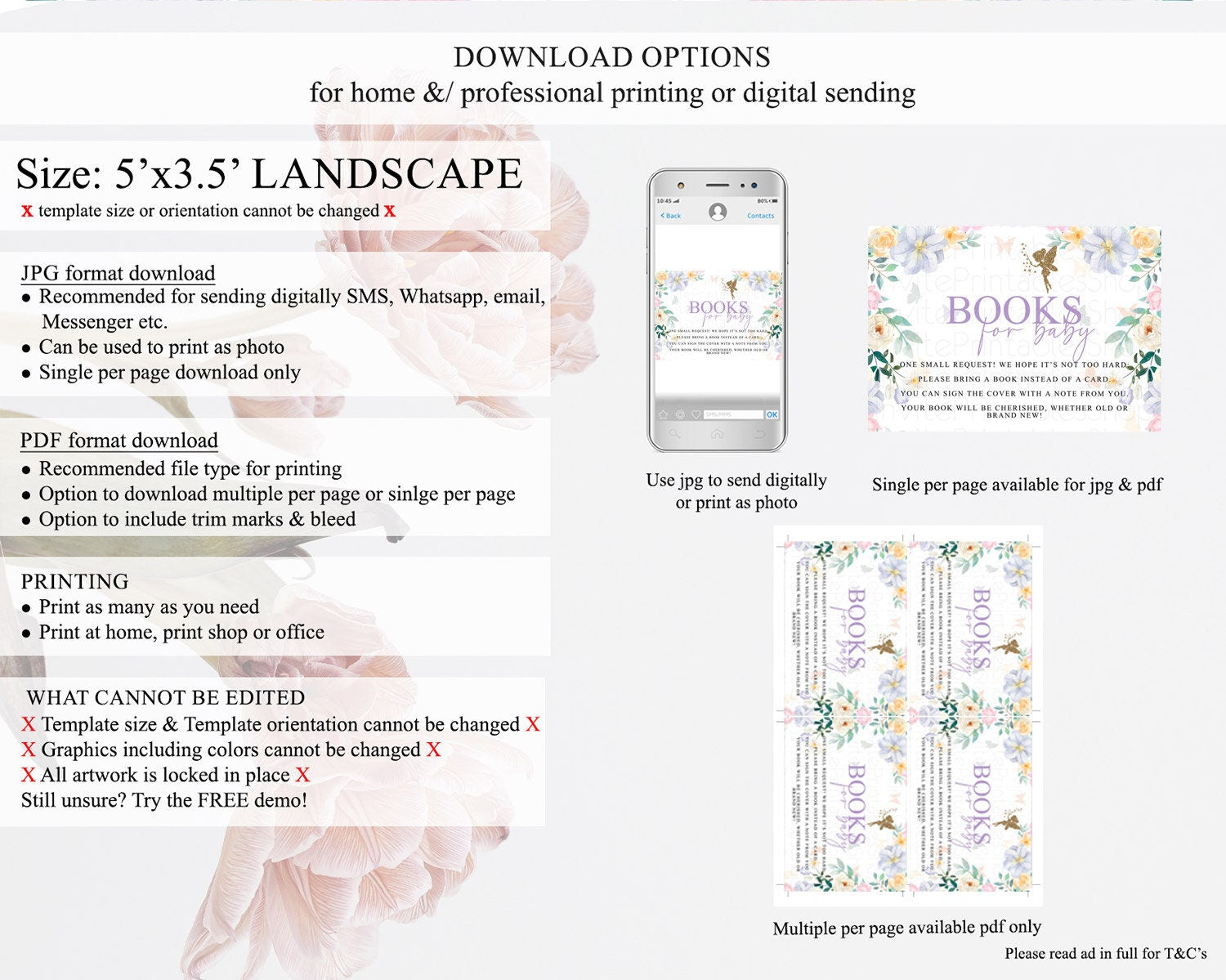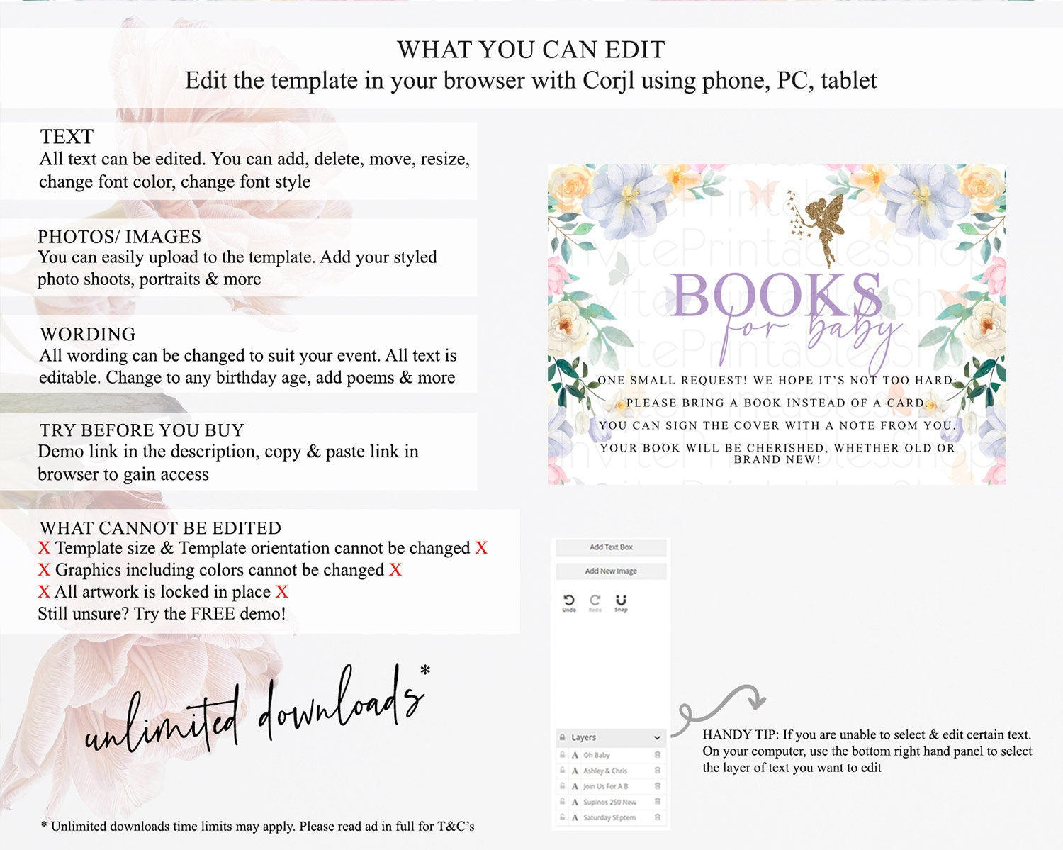 Fairy Books For Baby Card Fairy Book Insert Enchanted Garden Fairy Book Card Pastel Floral Butterfly Cards Secret Garden Book Poem D10474
