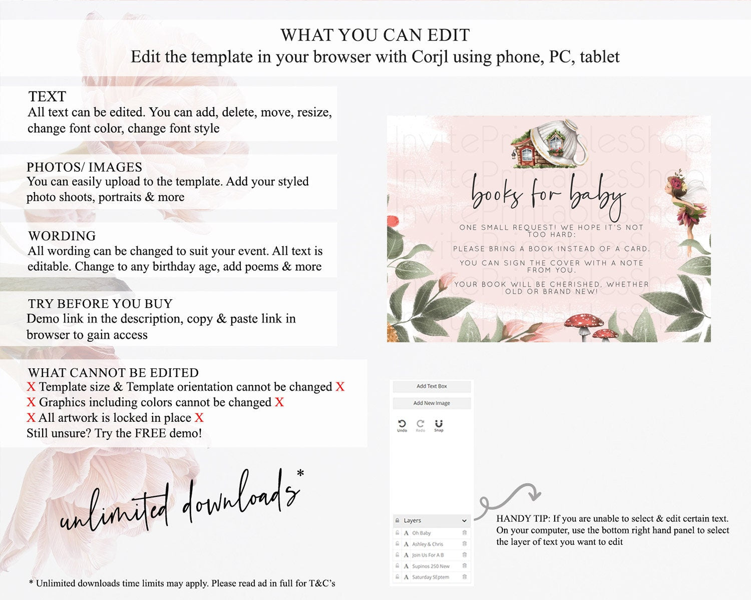 • After purchase, Corjl emails your editing link. Allow up to 15 minutes for delivery.