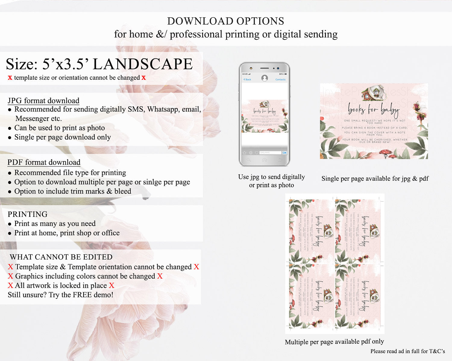 • Template size & orientation cannot be changed. Please use the demo link to confirm this product suits your needs.