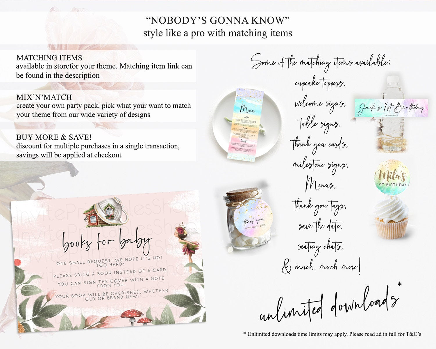 Fairy Books For Baby Card Fairy Book Insert Enchanted Garden Fairy Book Card Pastel Floral Butterfly Cards Secret Garden Book Poem D10563
