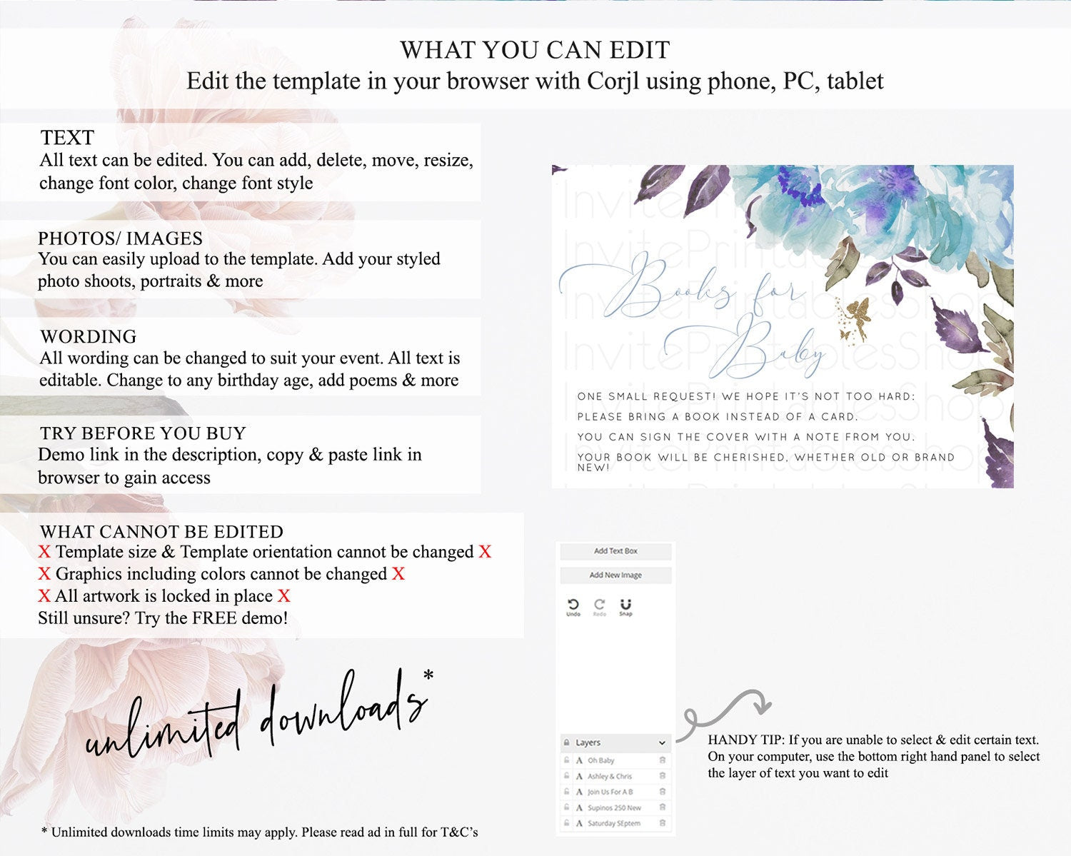 • After purchase, Corjl emails your editing link. Allow up to 15 minutes for delivery.