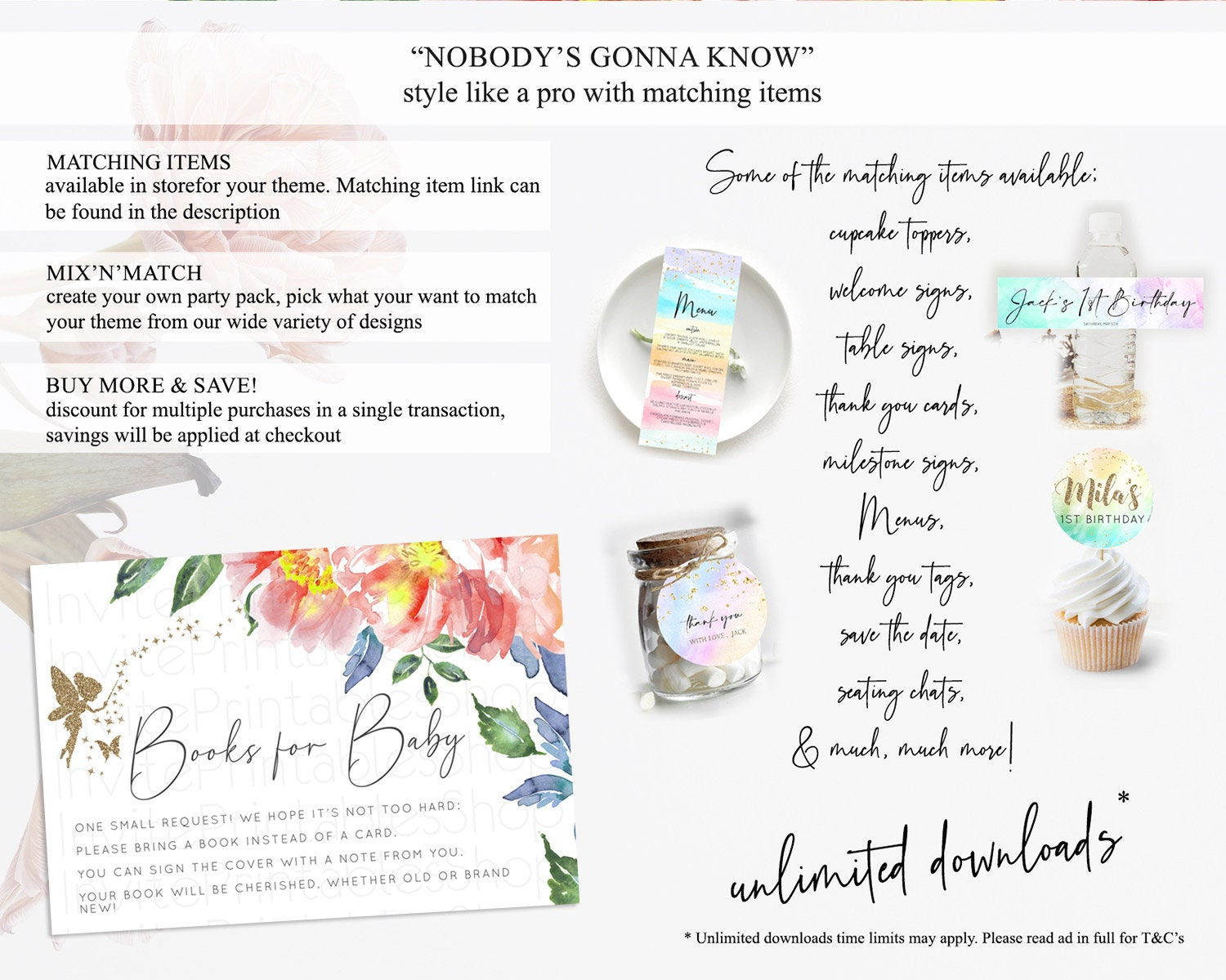 Fairy Books For Baby Card Fairy Book Insert Enchanted Garden Fairy Book Card Pastel Floral Butterfly Cards Secret Garden Book Poem D10752