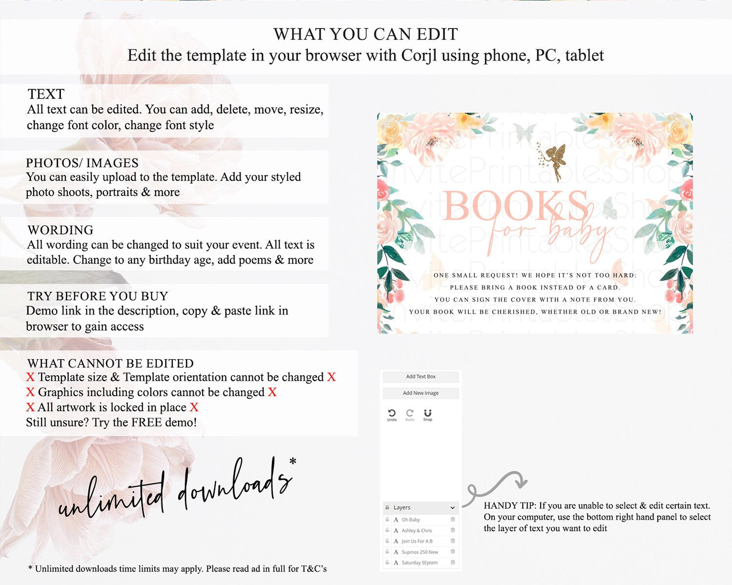 • After purchase, Corjl emails your editing link. Allow up to 15 minutes for delivery.