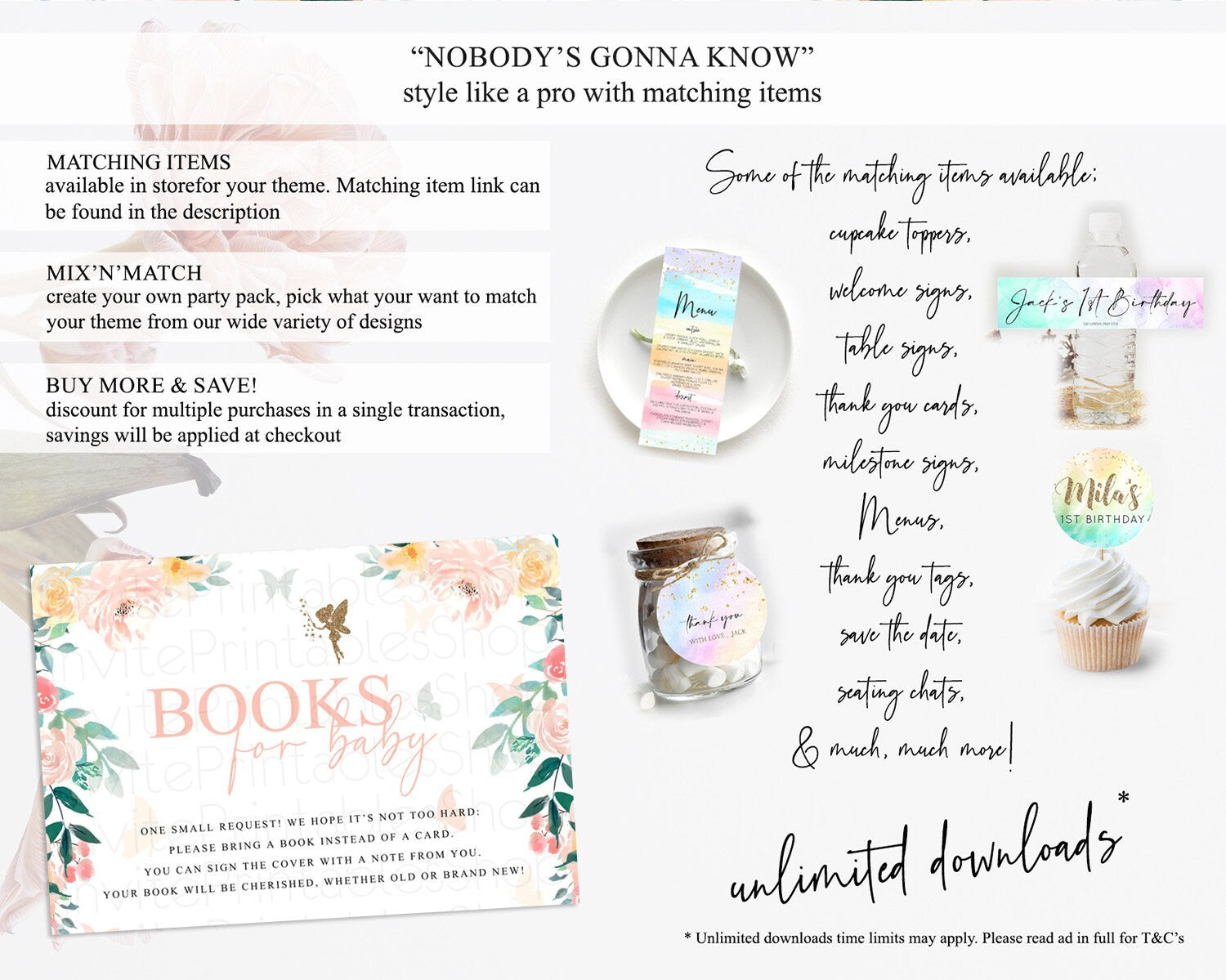 Fairy Books For Baby Card Fairy Book Insert Enchanted Garden Fairy Book Card Pastel Floral Butterfly Cards Secret Garden Book Poem D10789