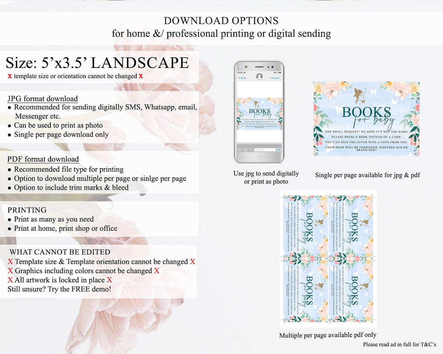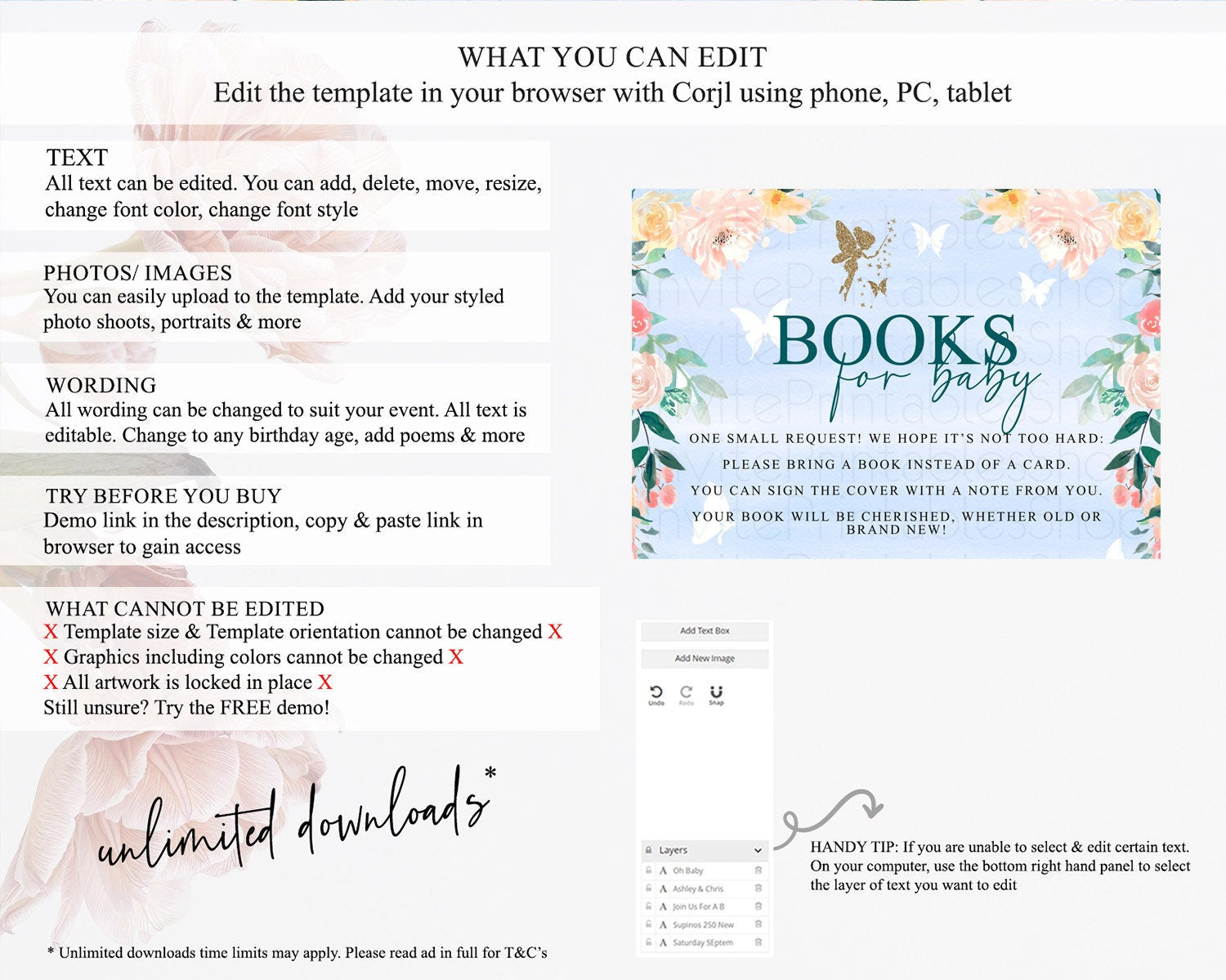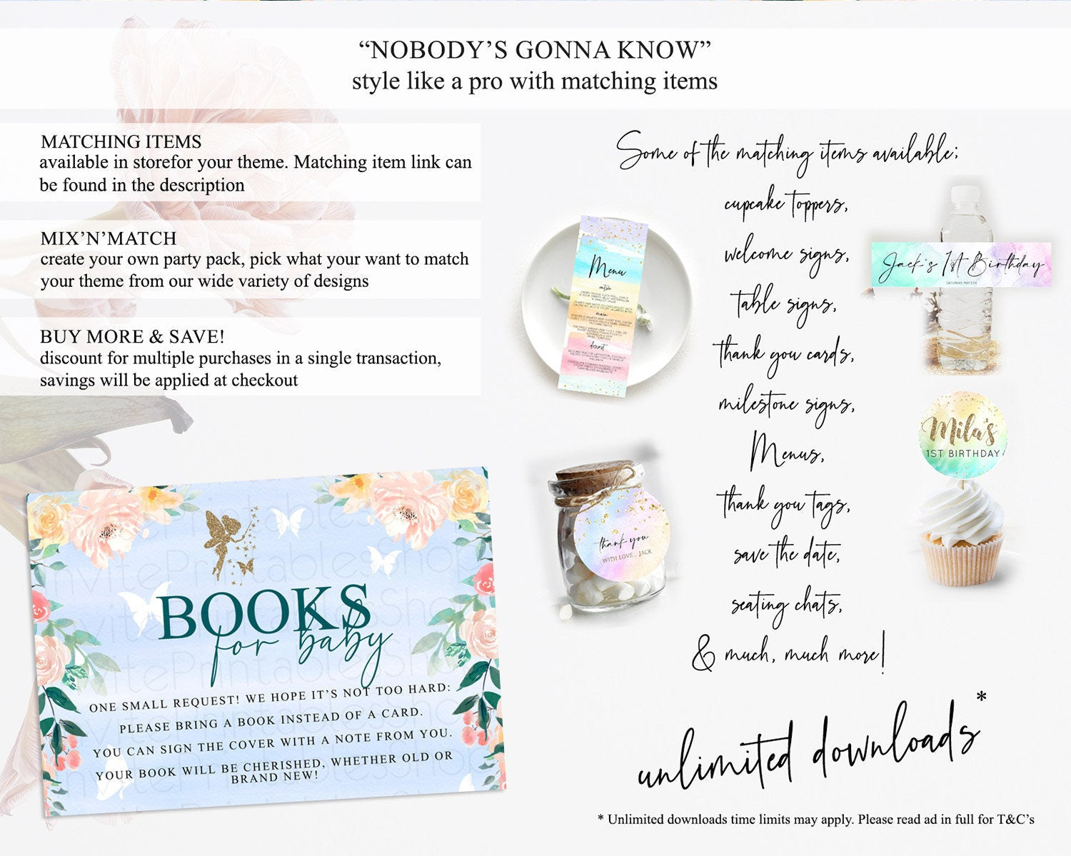 Fairy Books For Baby Card Fairy Book Insert Enchanted Garden Fairy Book Card Pastel Floral Butterfly Cards Secret Garden Book Poem D10794