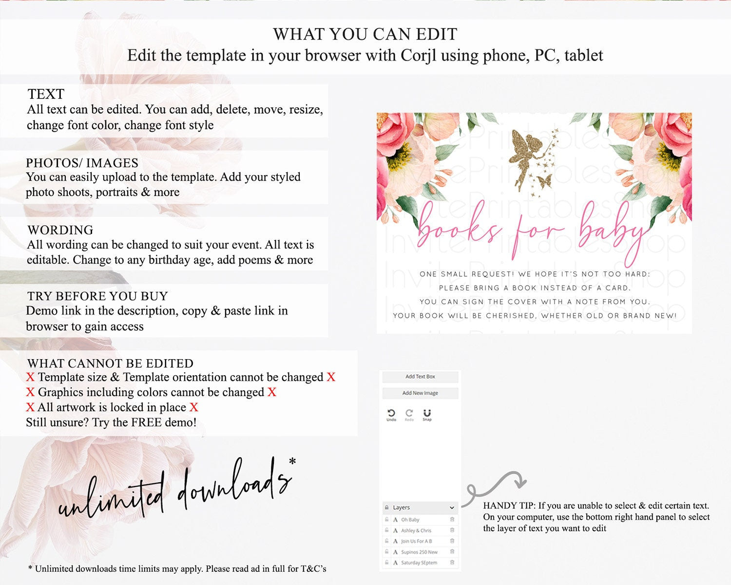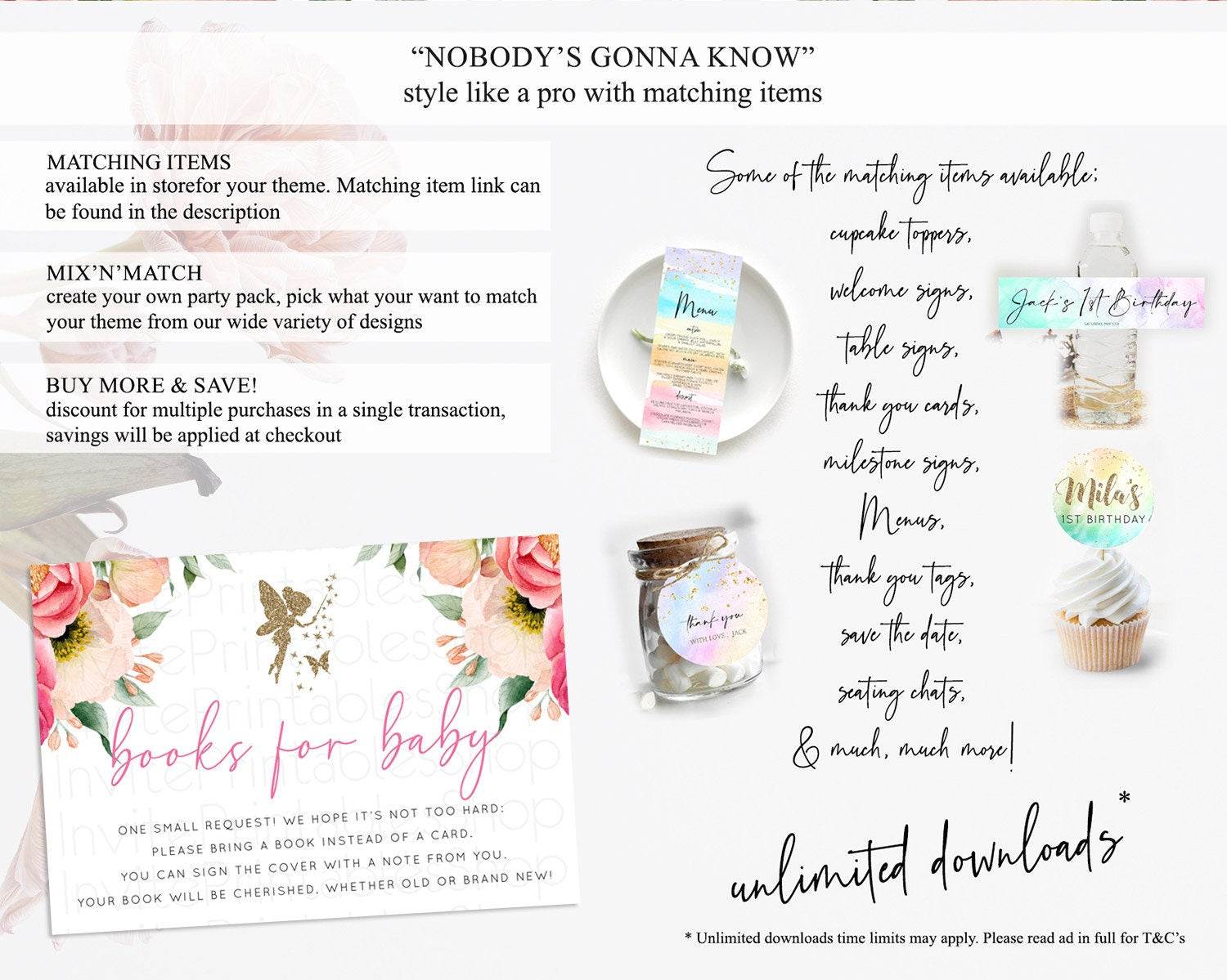 Fairy Books For Baby Card Fairy Book Insert Enchanted Garden Fairy Book Card Pastel Floral Butterfly Cards Secret Garden Book Poem D10883